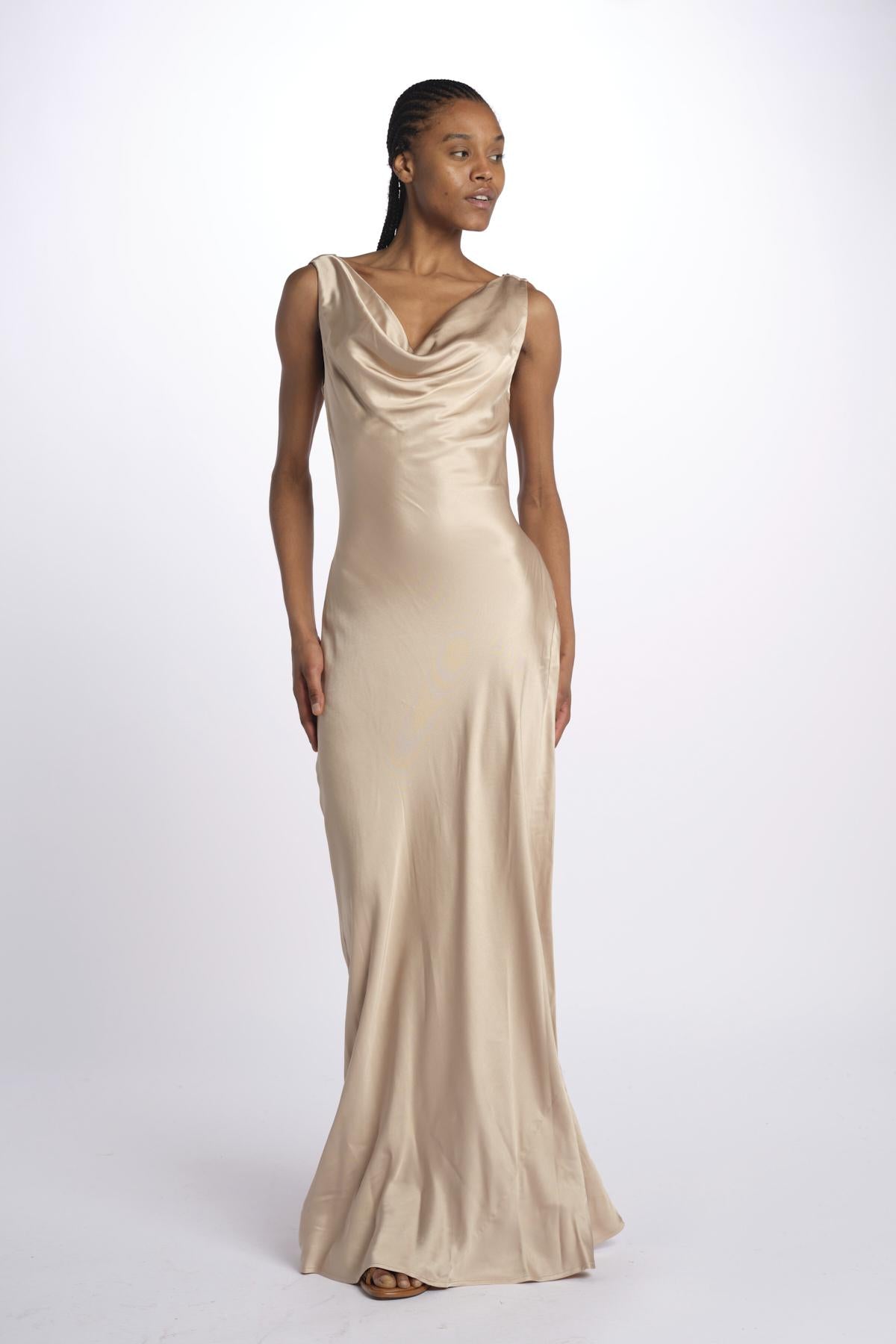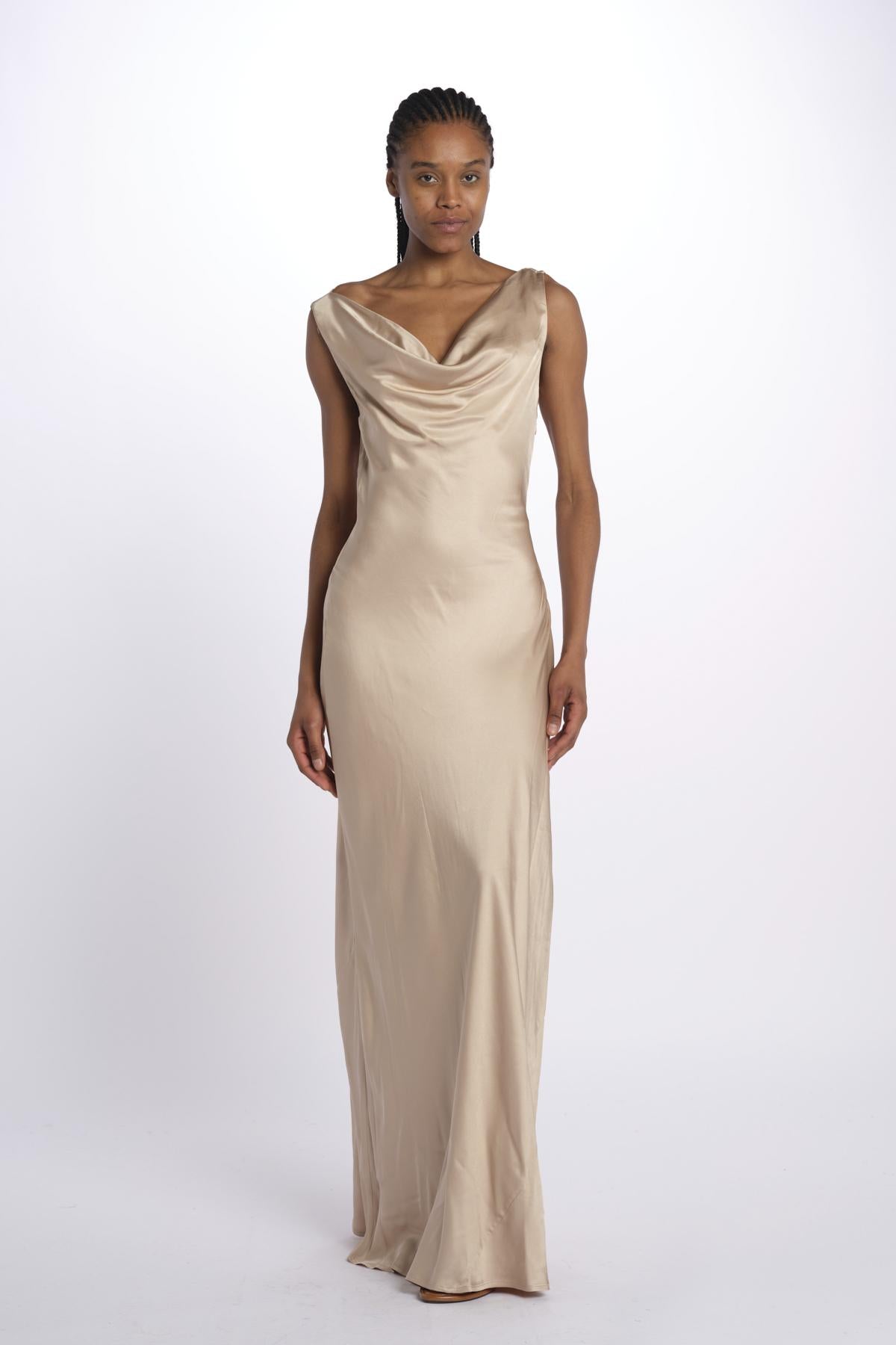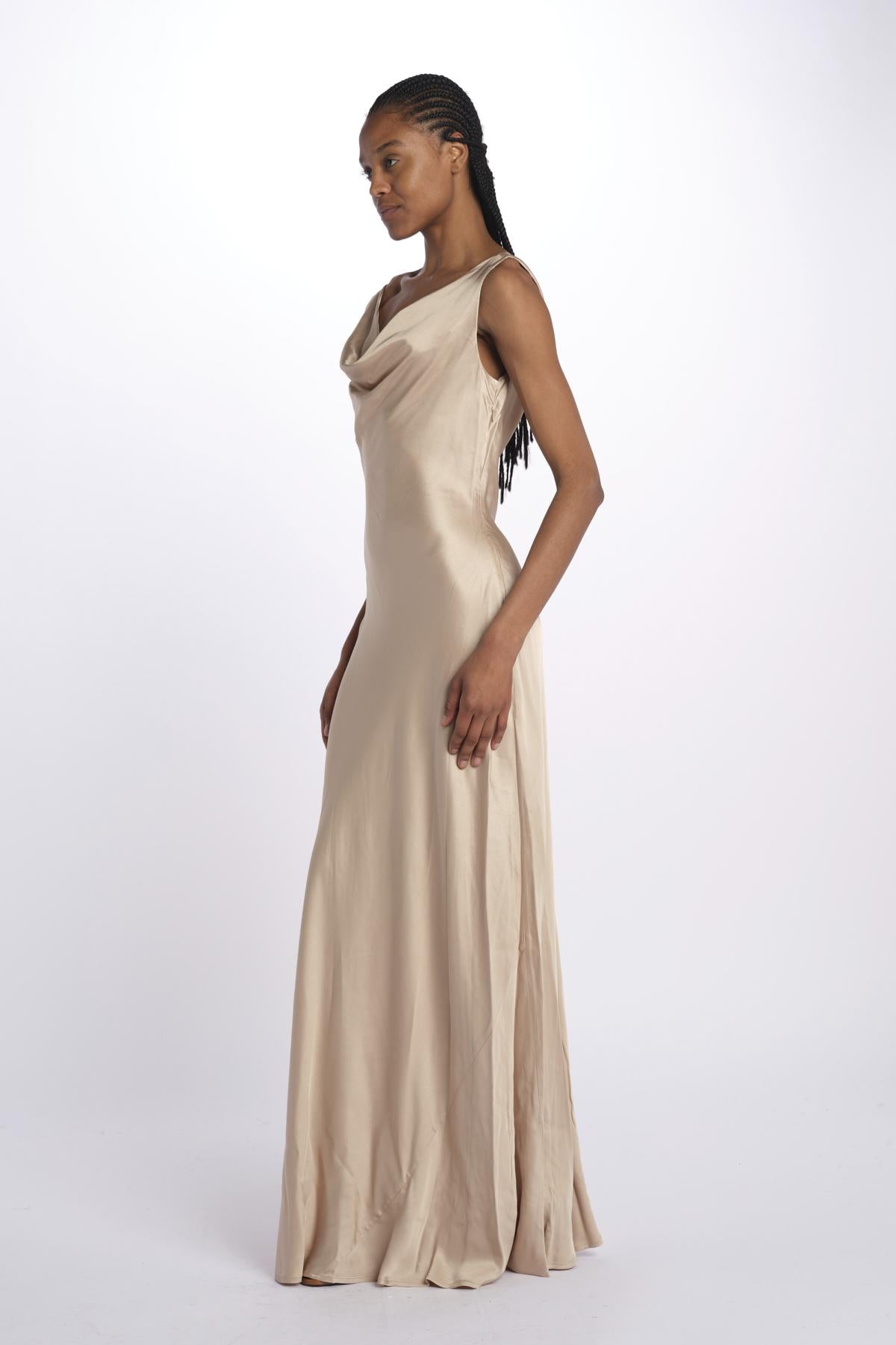 Abito LEHA lungo by malina. La modella è alta 174 cm e indossa una taglia 38. Composizione: 100% poliestere.