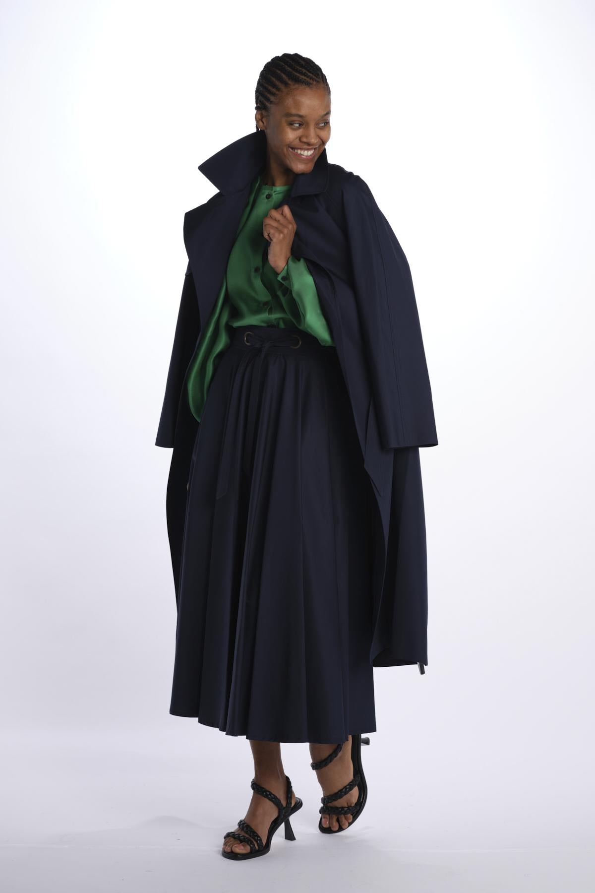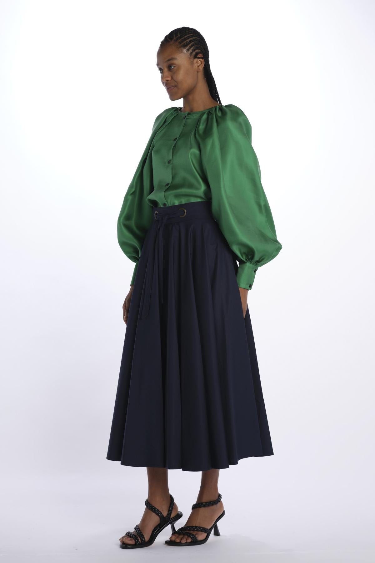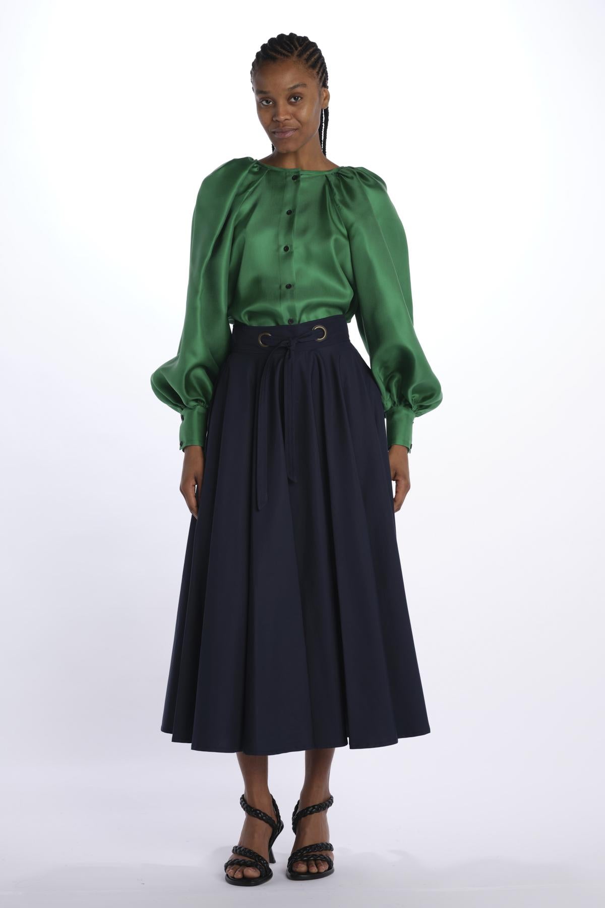 Gonna pieghe by martin grant. La modella è alta 174 cm e indossa una taglia 34 (IT 38). Composizione: 100% cotone.