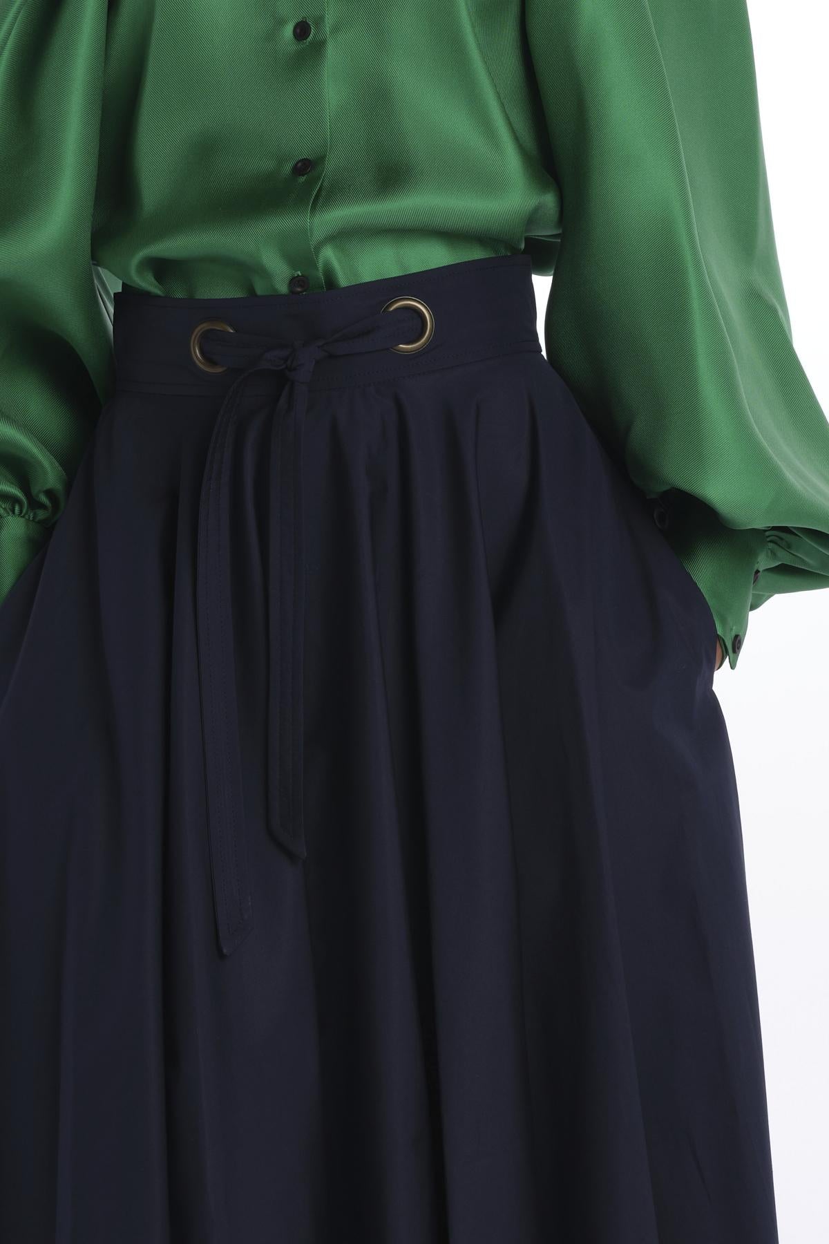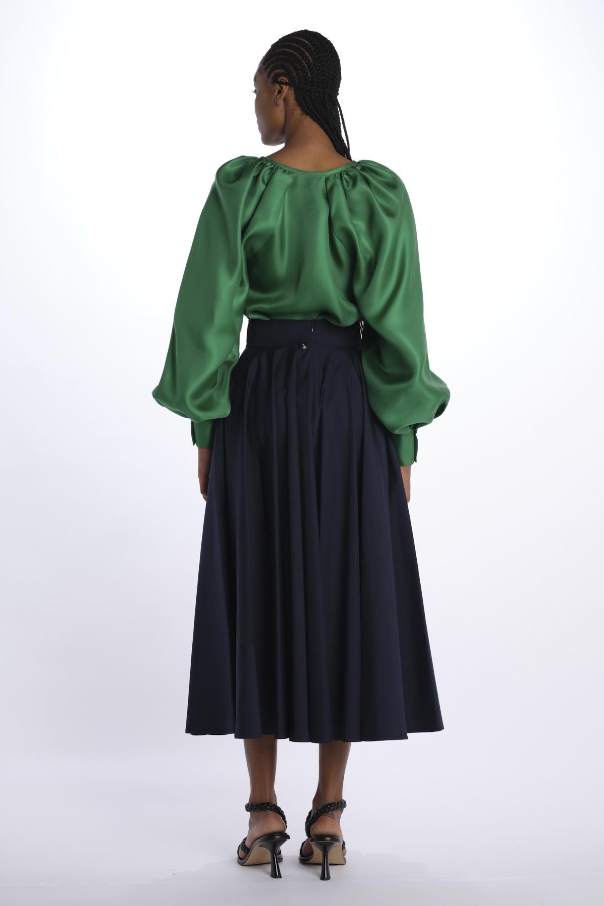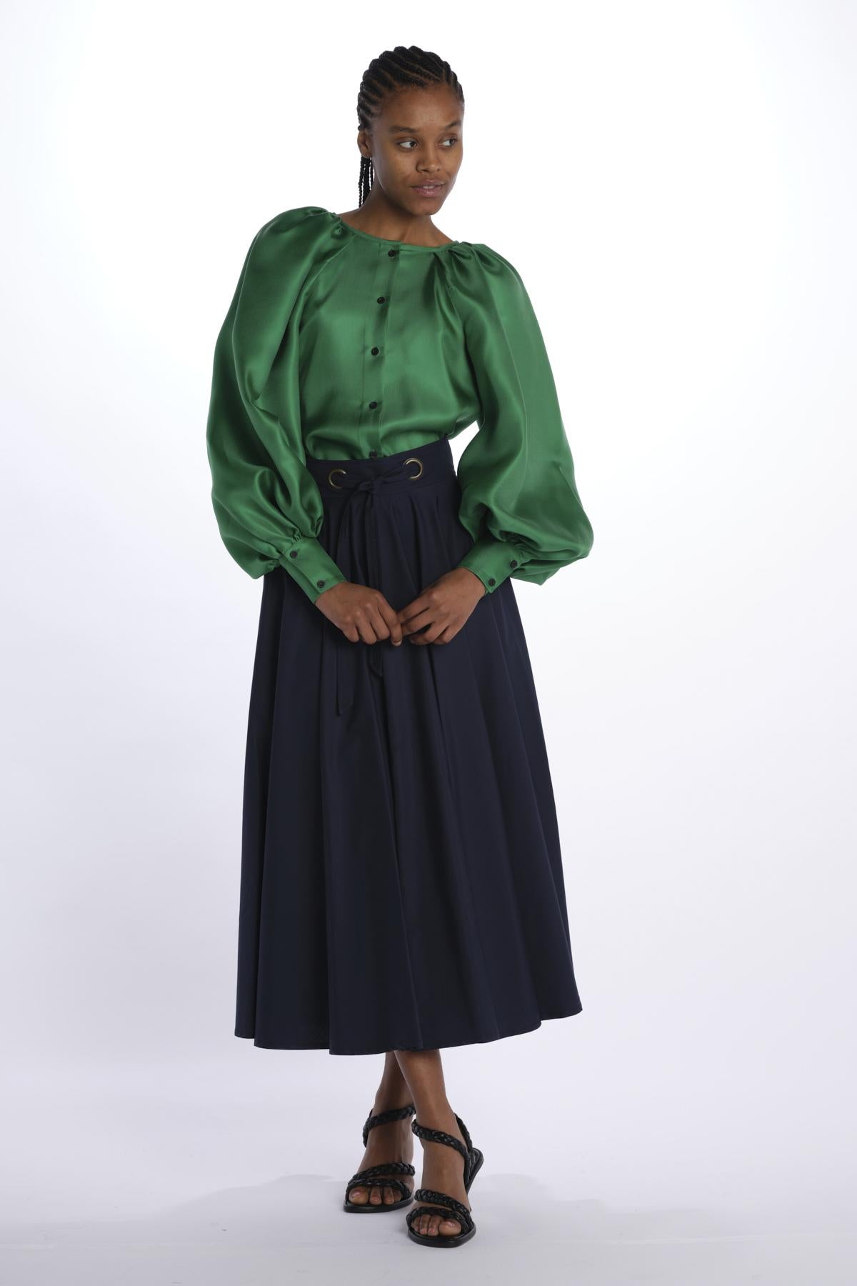 Gonna pieghe by martin grant. La modella è alta 174 cm e indossa una taglia 34 (IT 38). Composizione: 100% cotone.