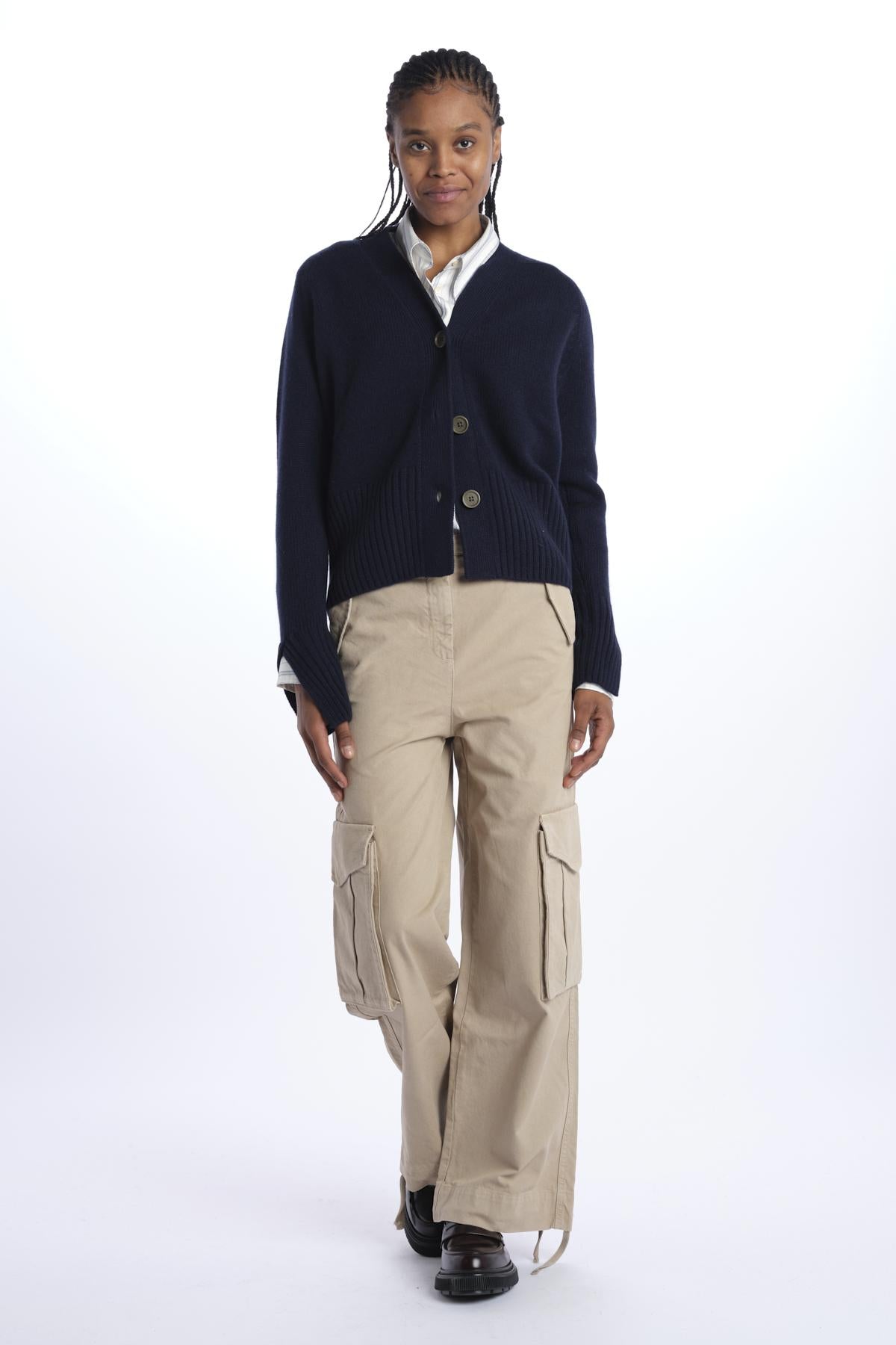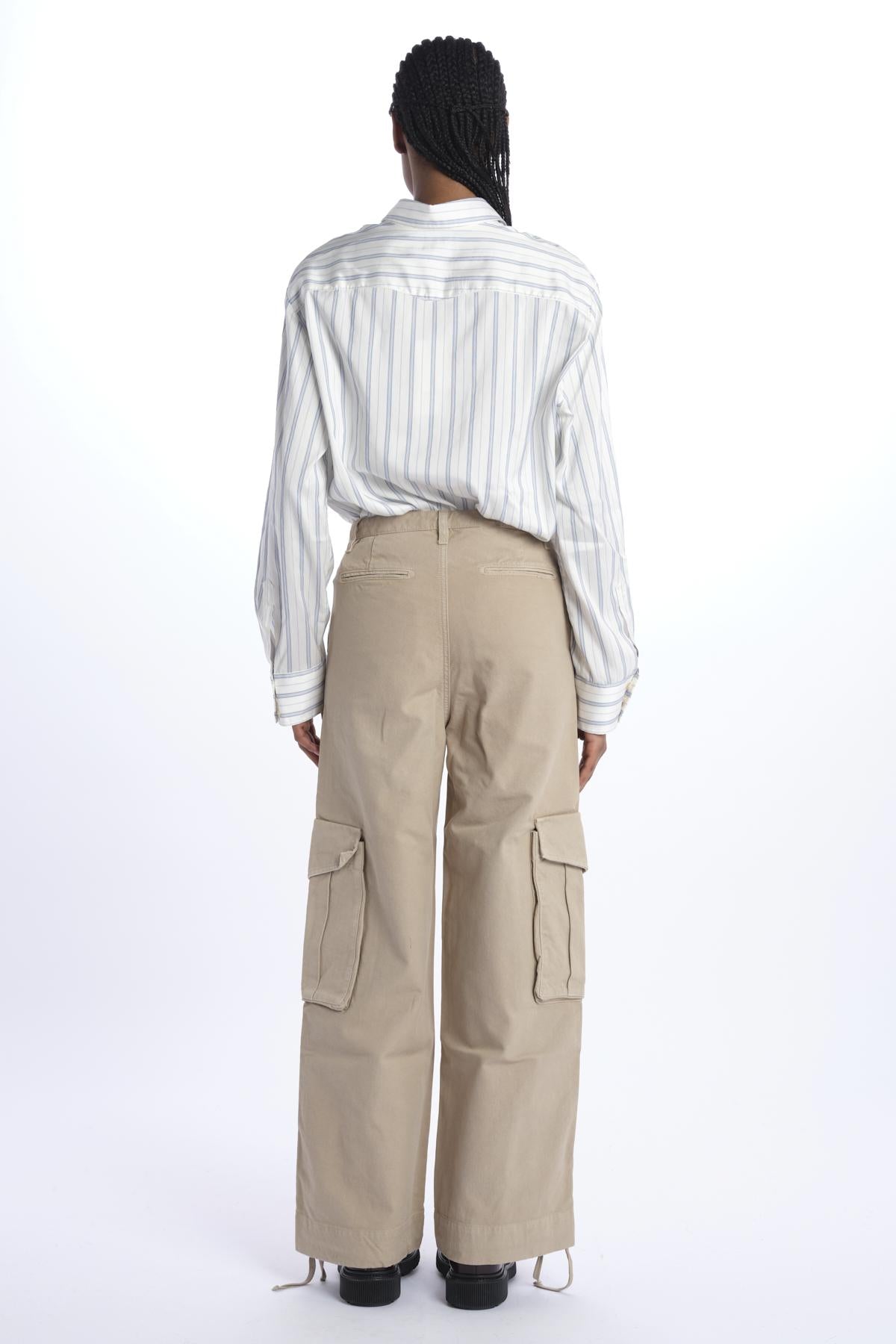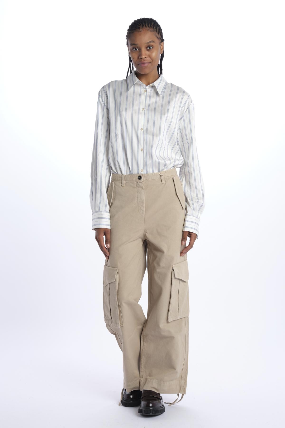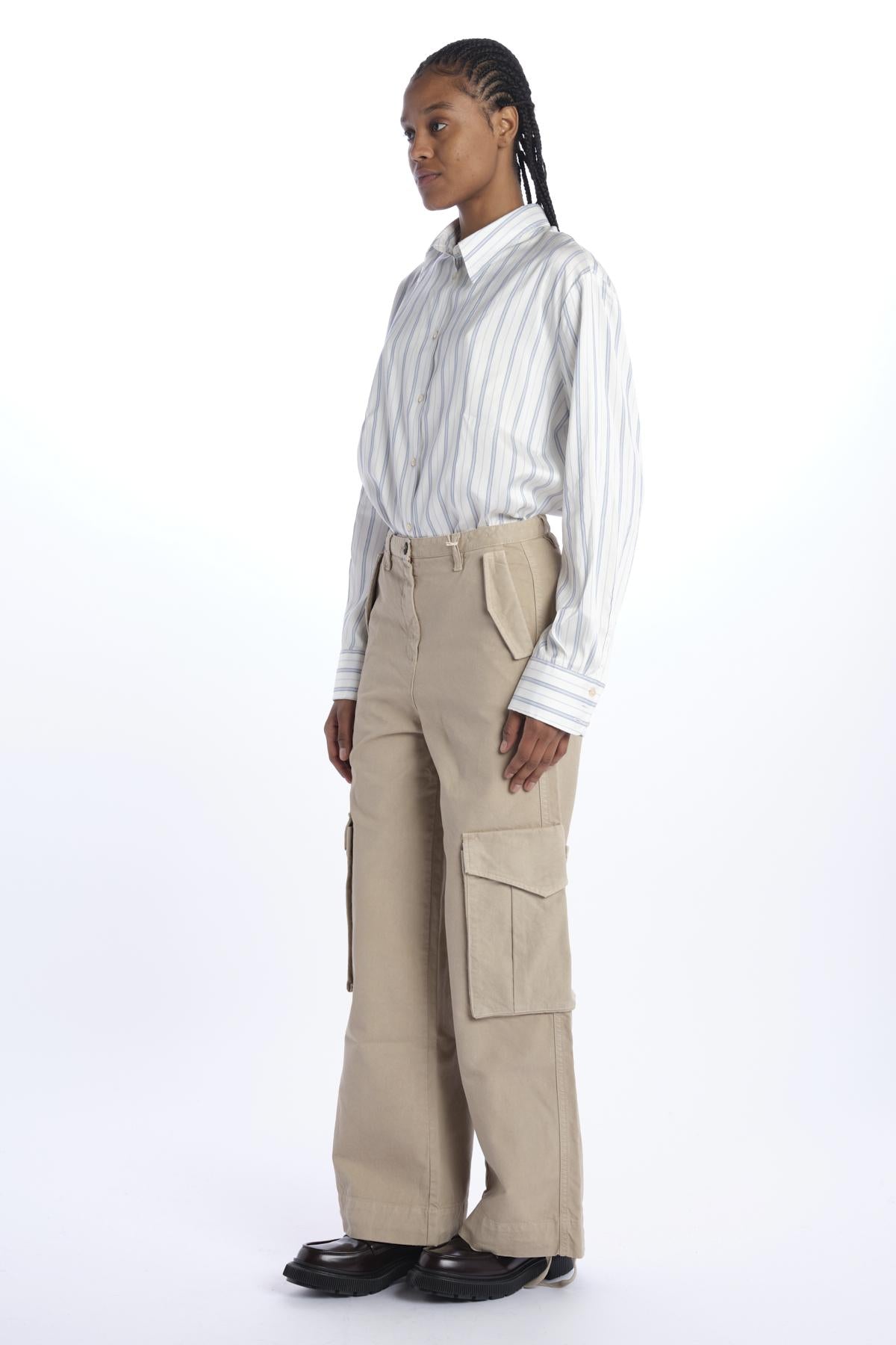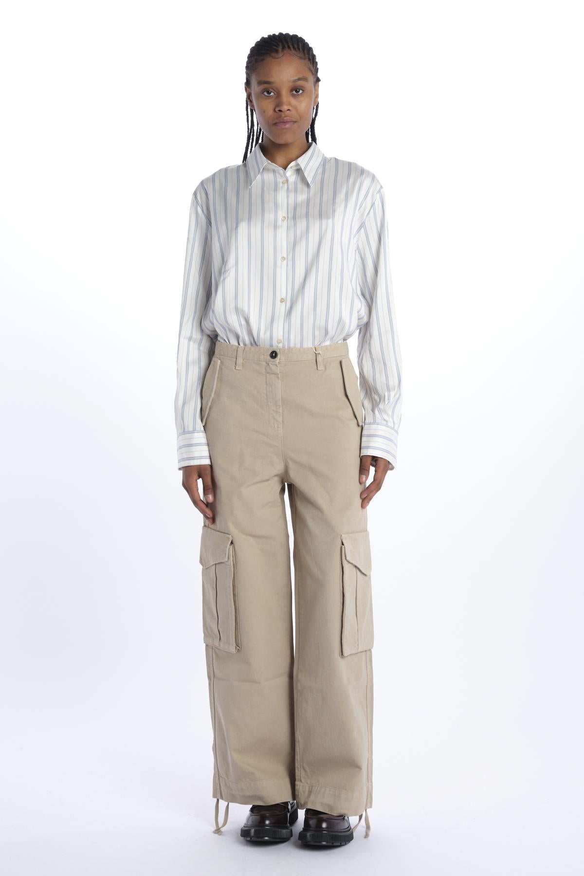 Pantalone FANNY cargo over by massimo alba. La modella è alta 174 cm e indossa una 26. Composizione: 100% cotone.