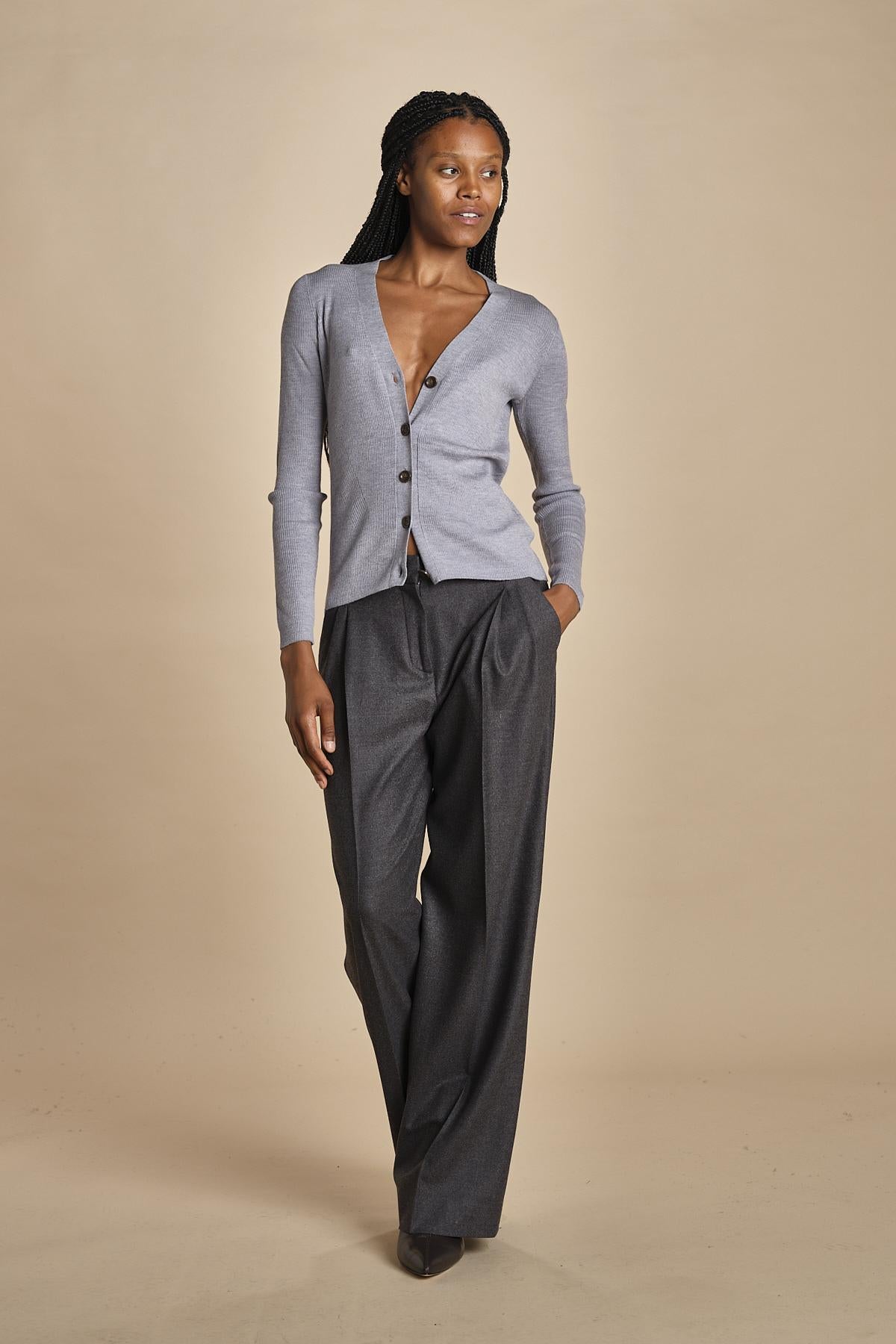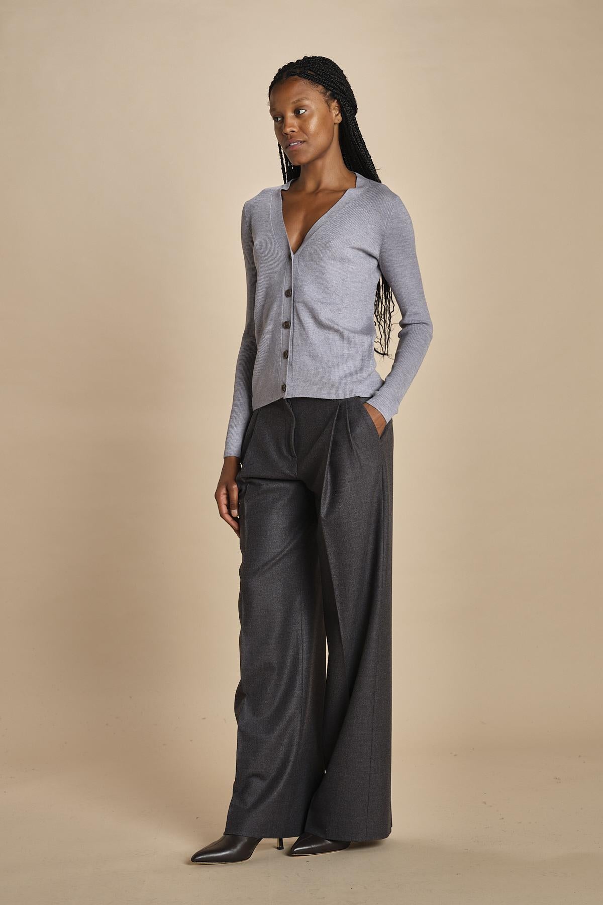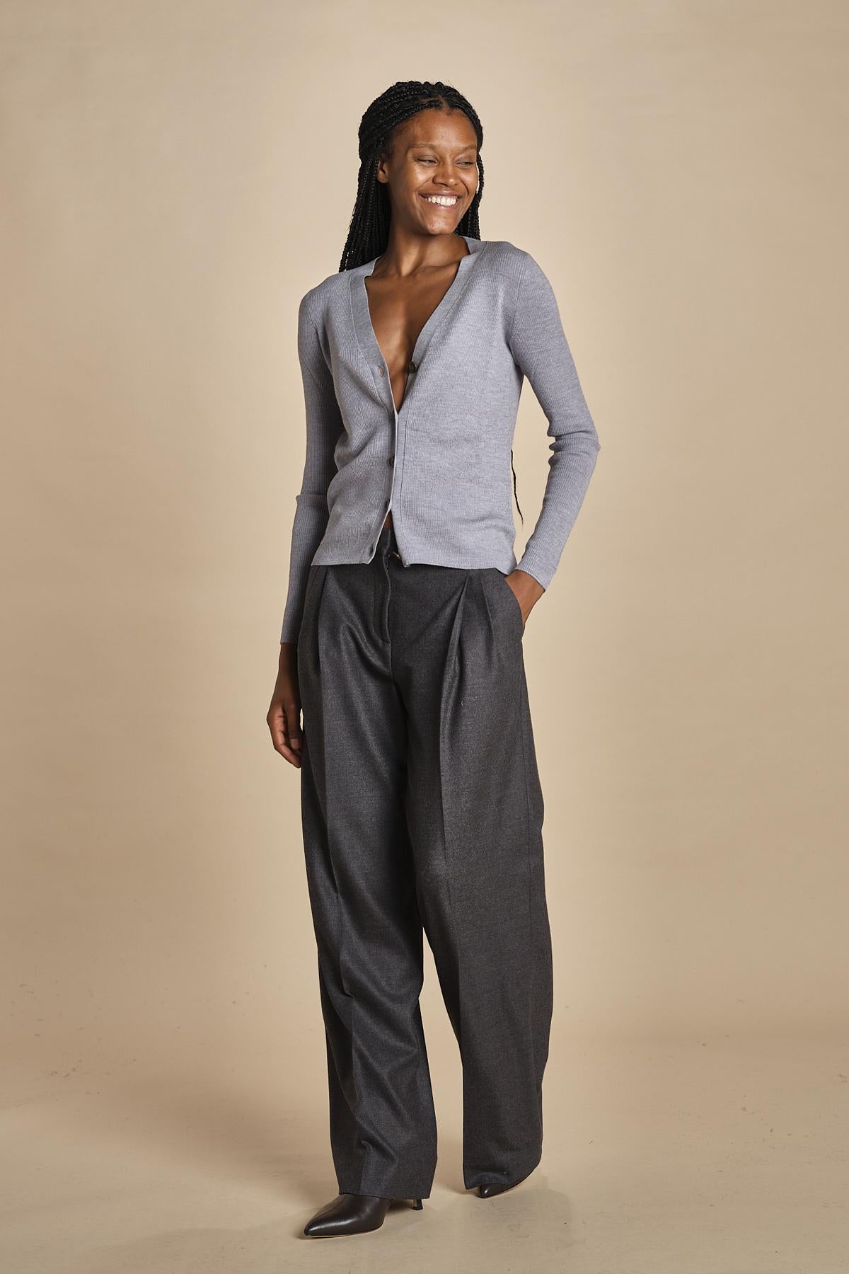 cardigan a costine in merino. La modella è alta 174 cm e indossa una taglia S. Composizione: 100% lana merino
