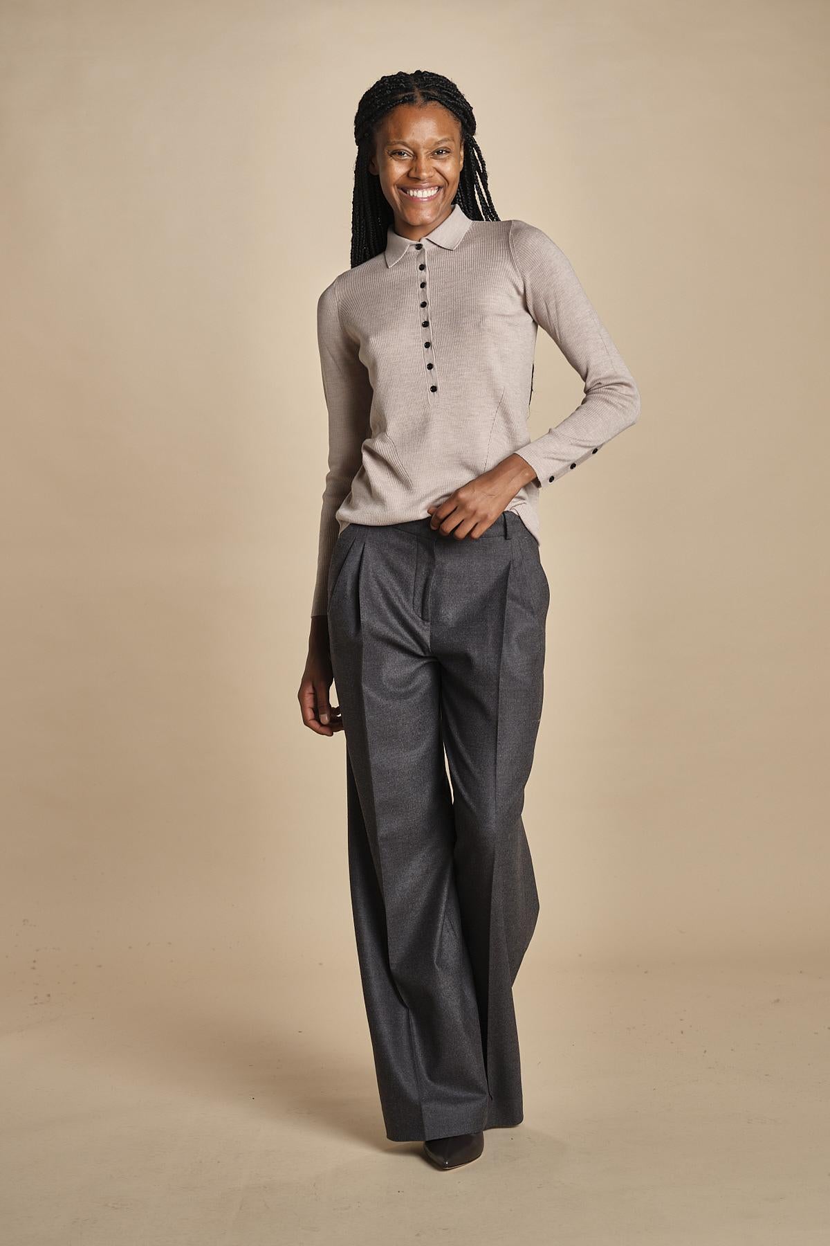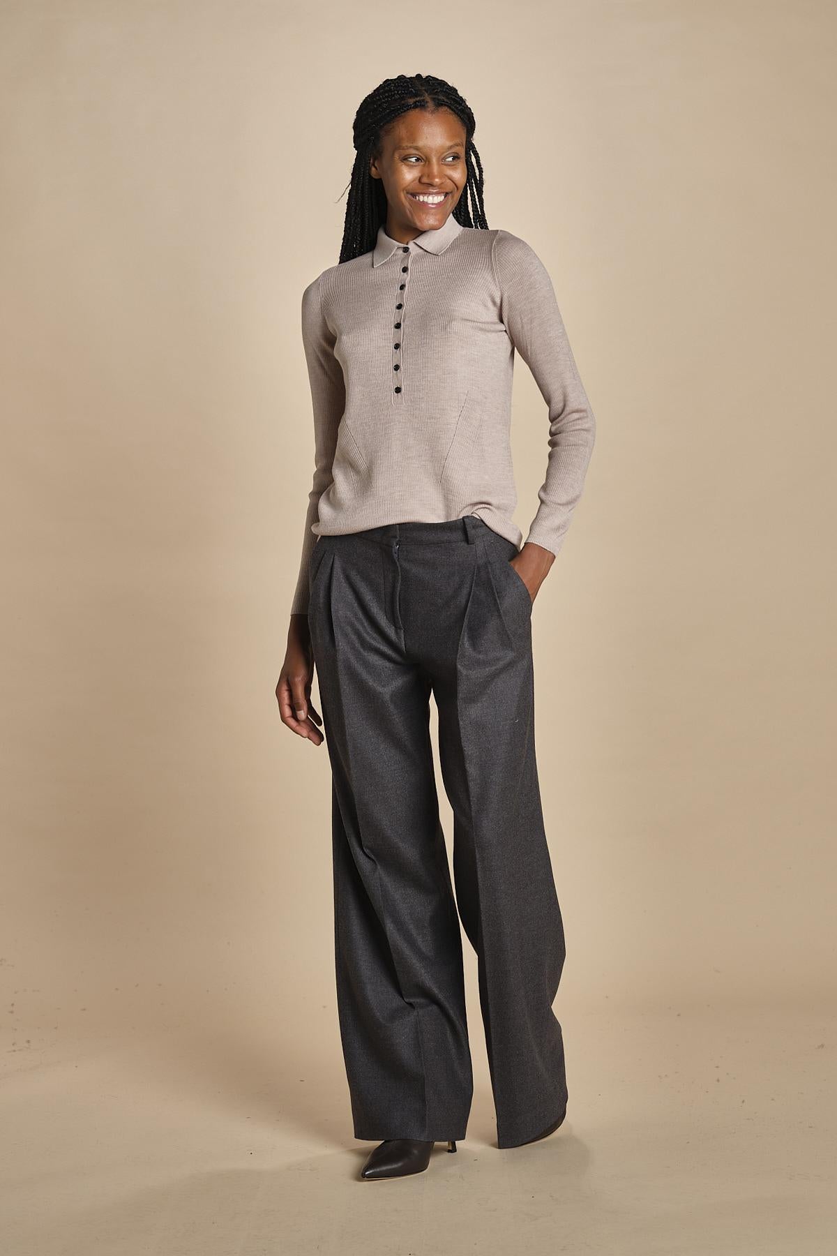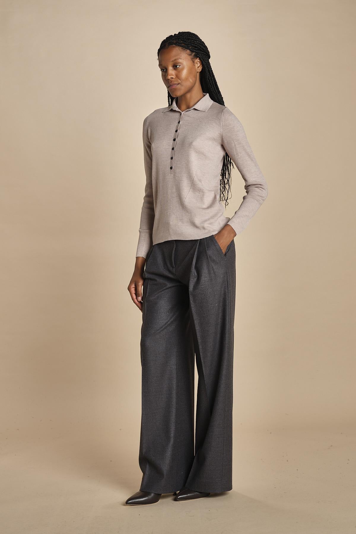 polo a costine in lana merino MIL LAU3 E20179 BEIGE milaura
