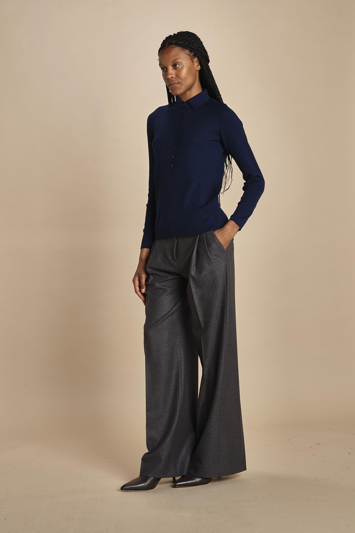 polo a costine in lana merino MIL LAU3 E21210 BLU milaura