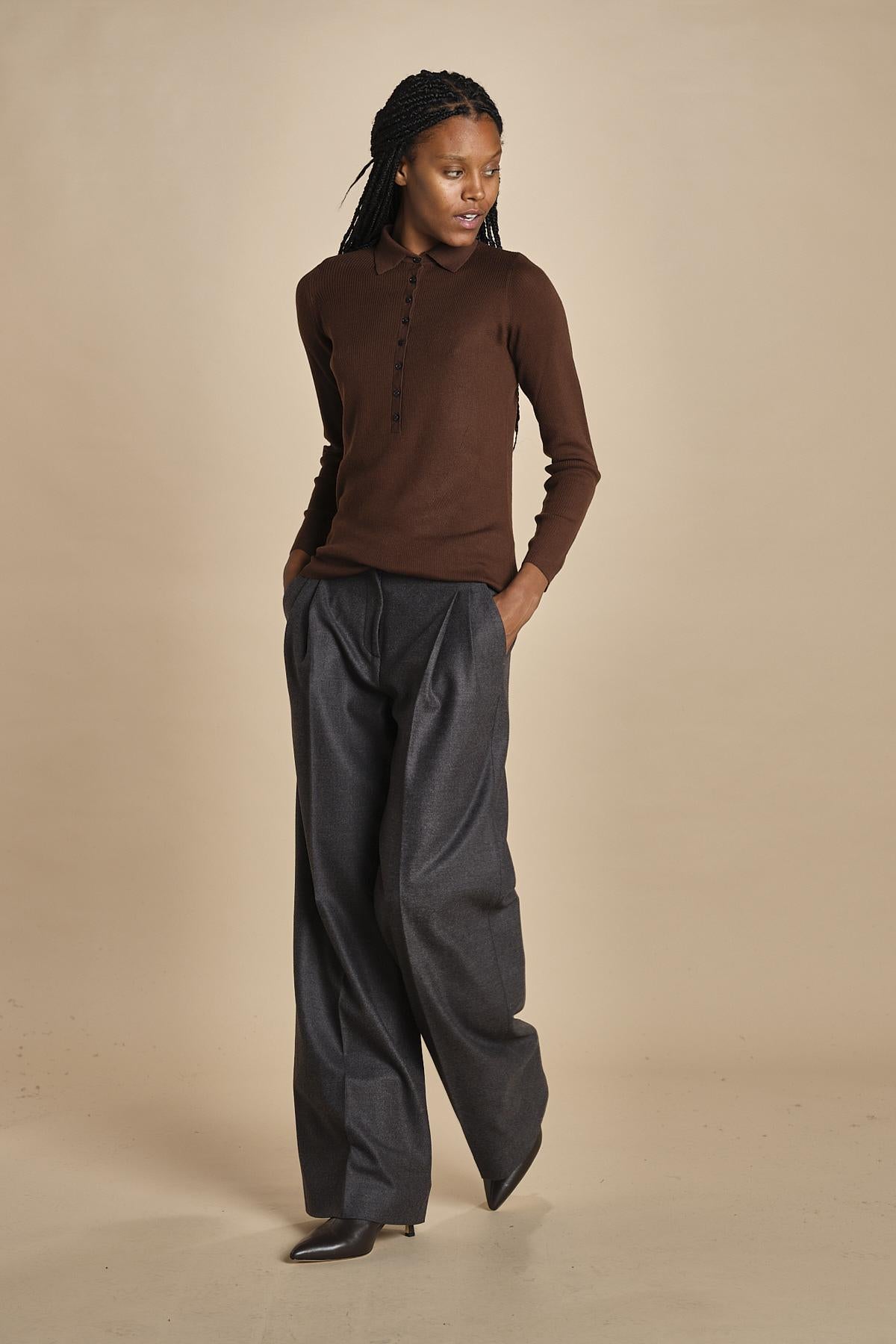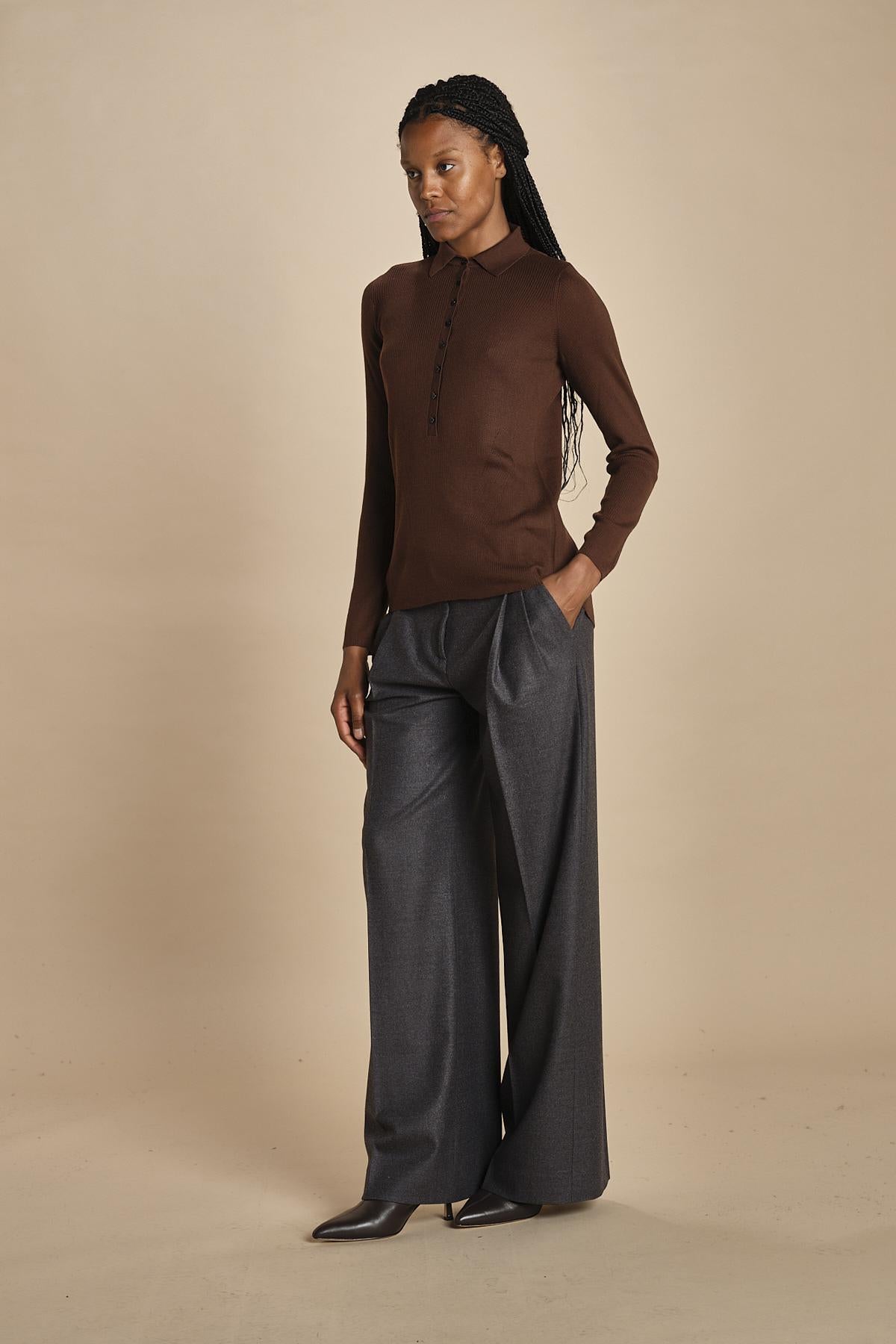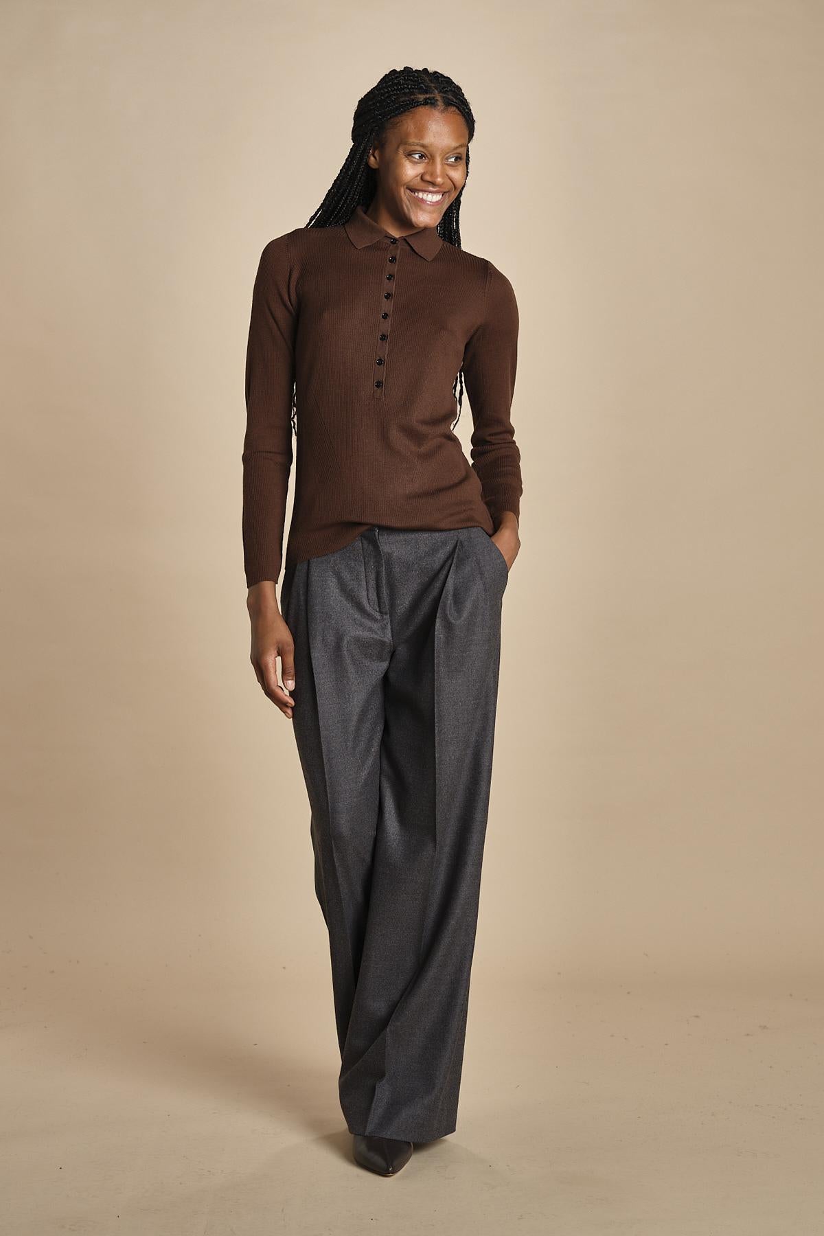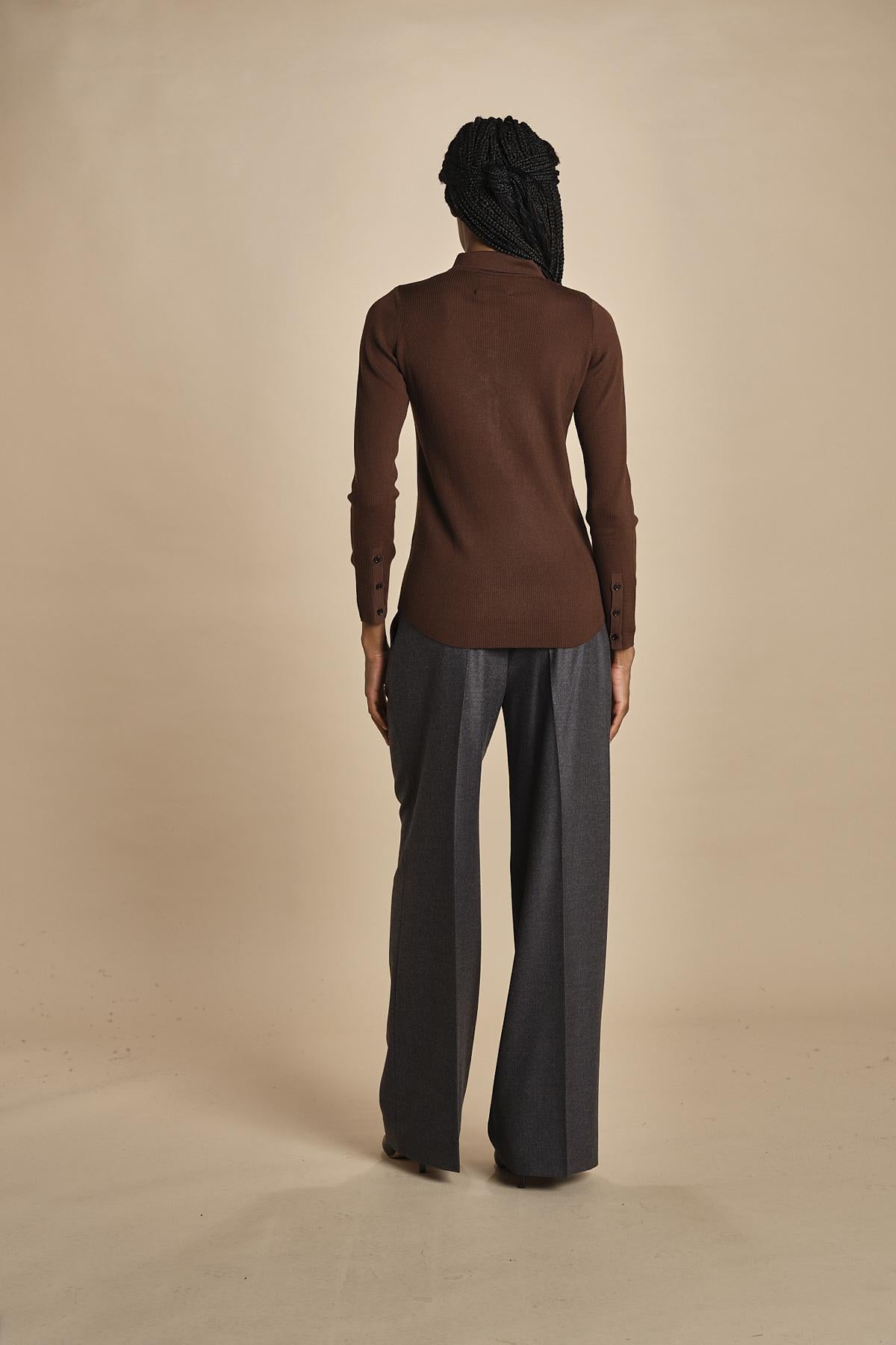 polo a costine in lana merino MIL LAU3 E22220 CIOCCOLATO milaura