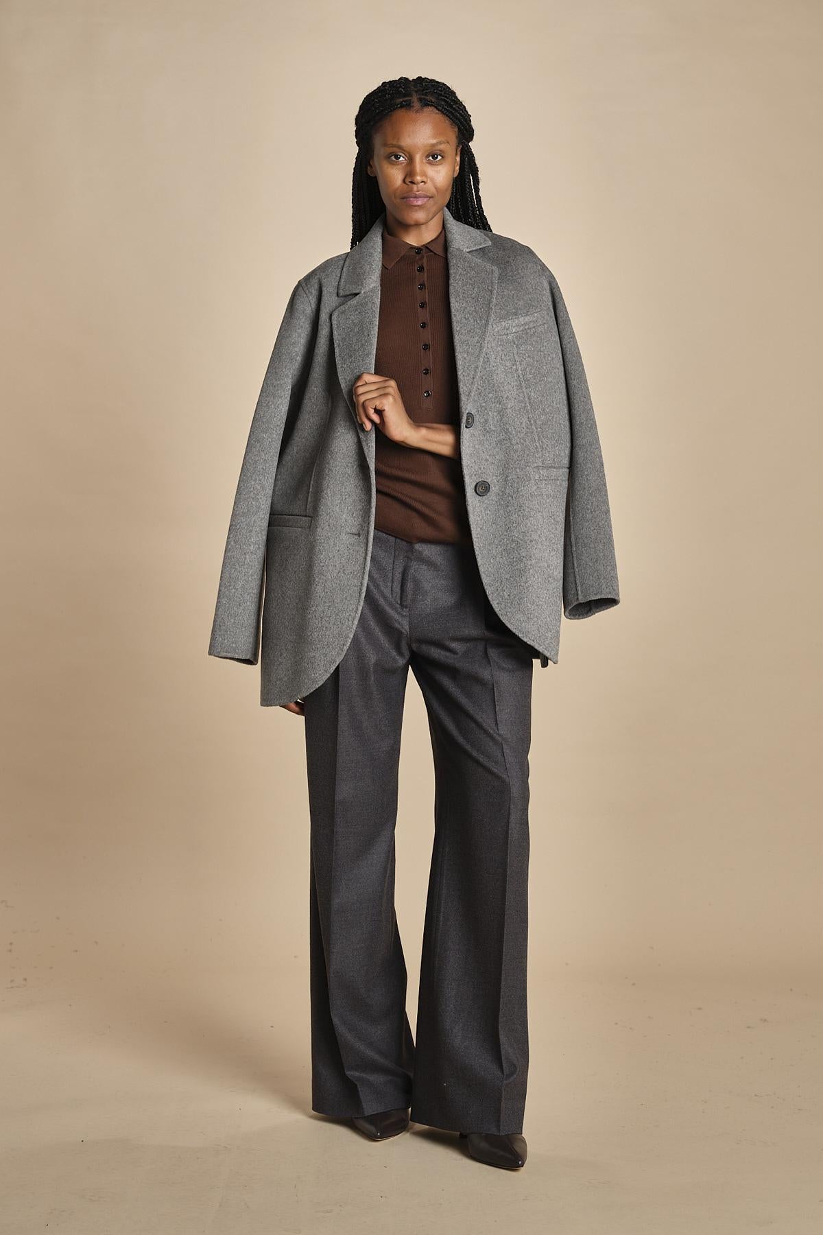 polo a costine in merino. La modella è alta 174 cm e indossa una taglia S. Composizione: 100% lana merino