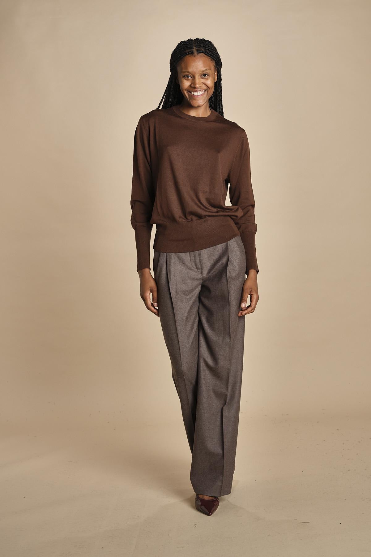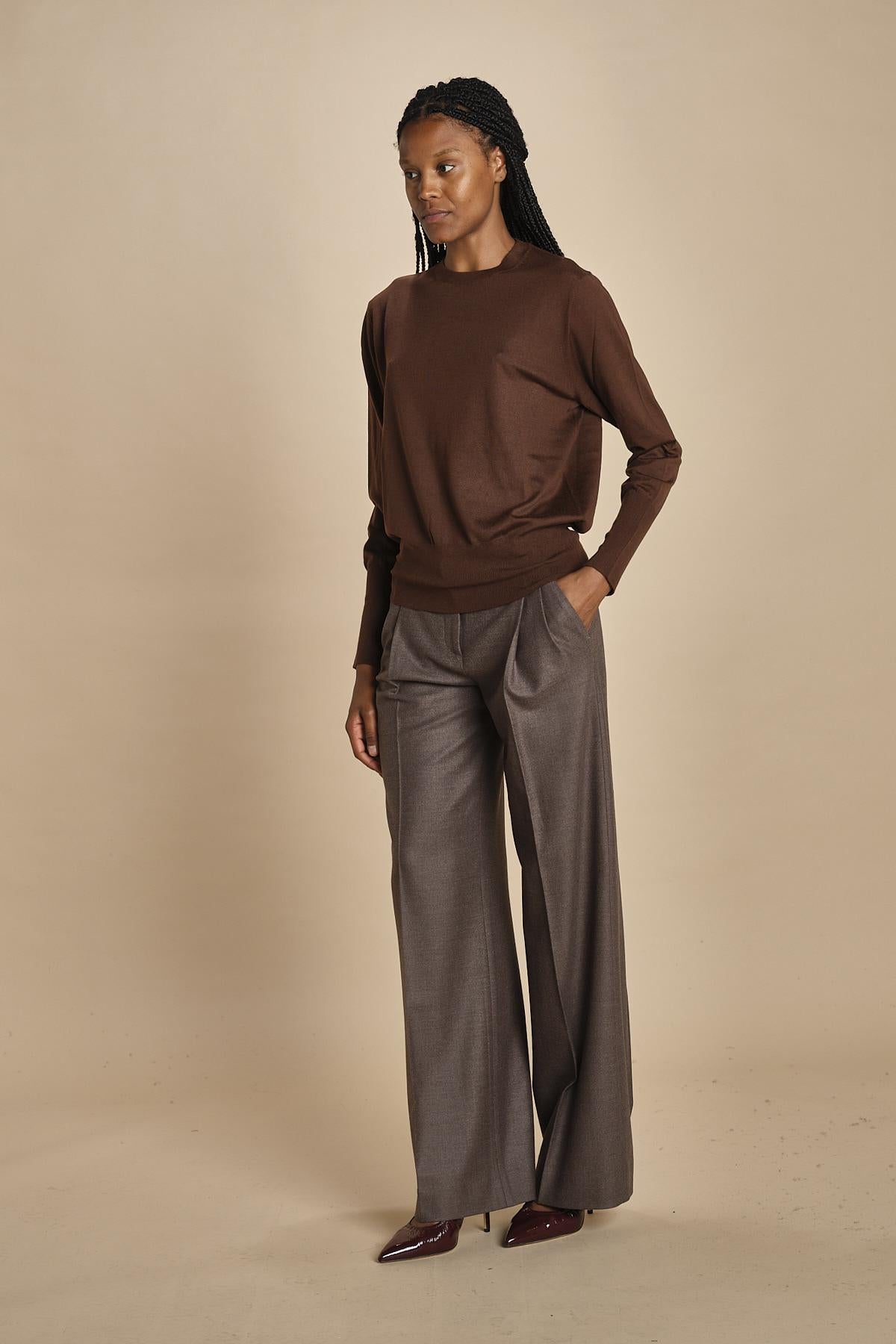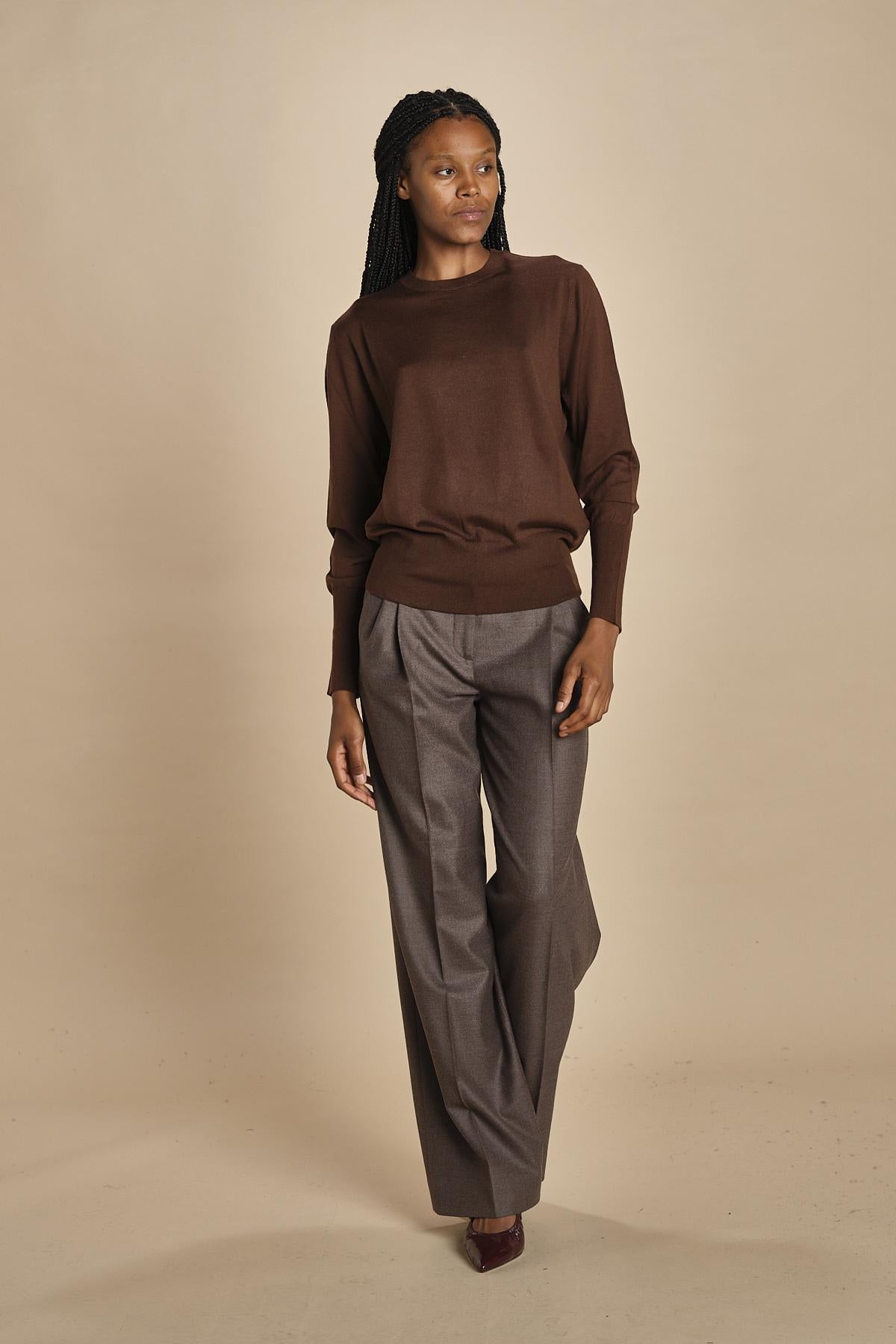 girocollo over in lana merinos MIL LAU5BIS E22220 CIOCCOLATO milaura