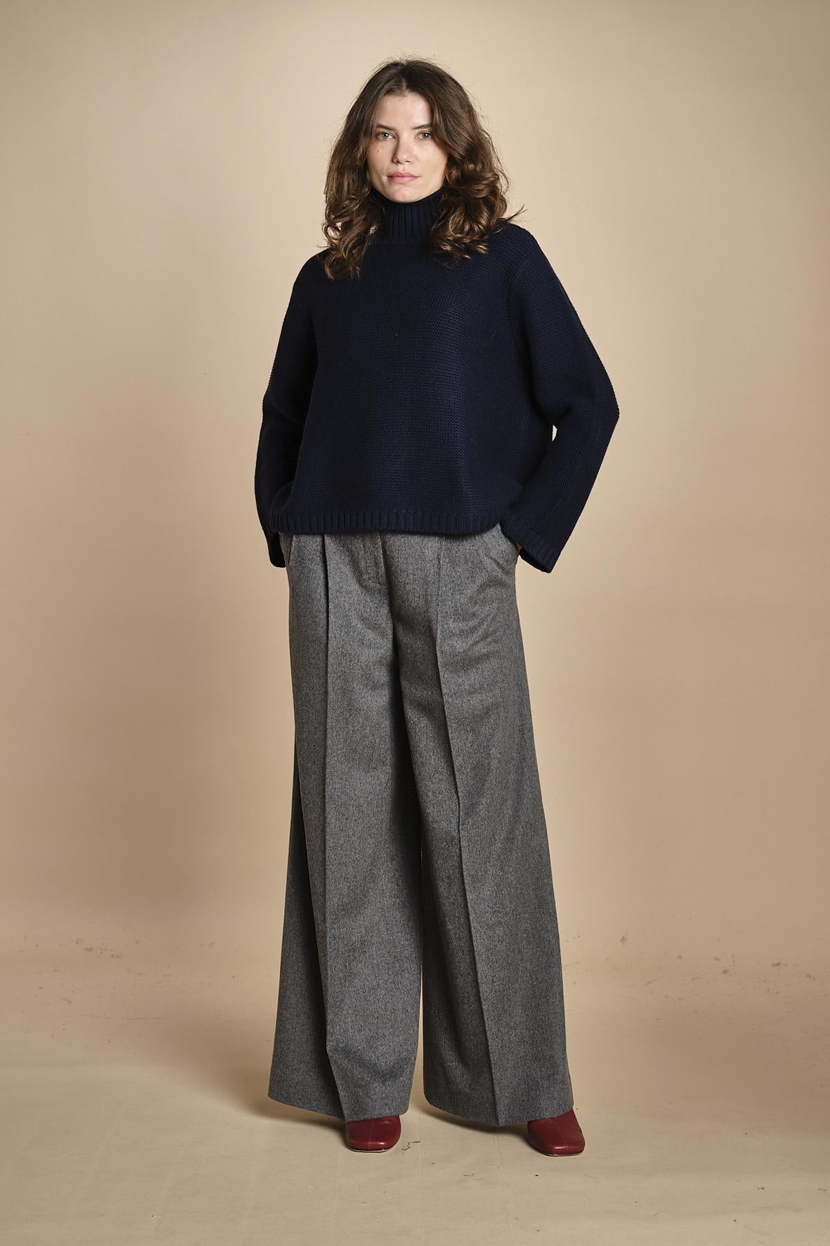 dolcevita over links. La modella è alta 176 cm e indossa una taglia S. 100% cachemire