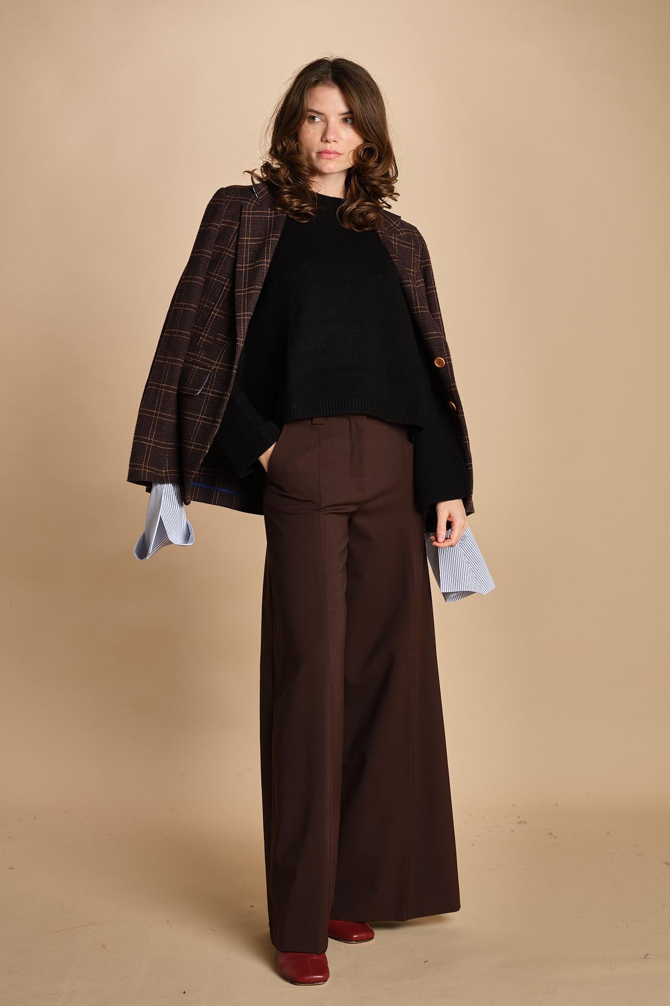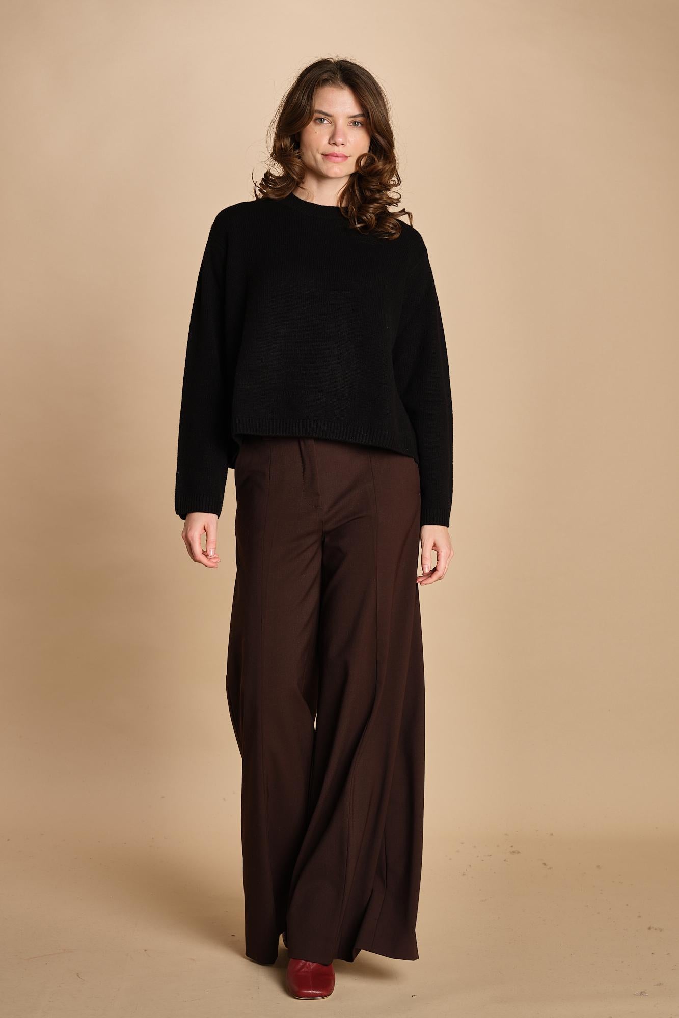 girocollo rasato. La modella è alta 174 cm e indossa una taglia S. 100% cachemire