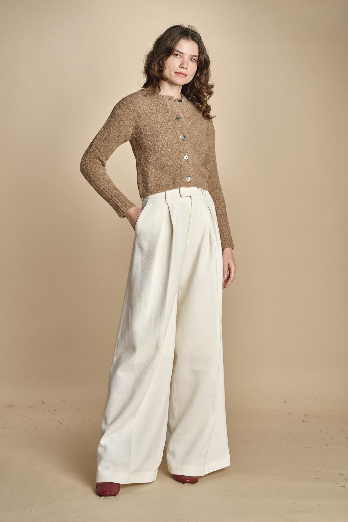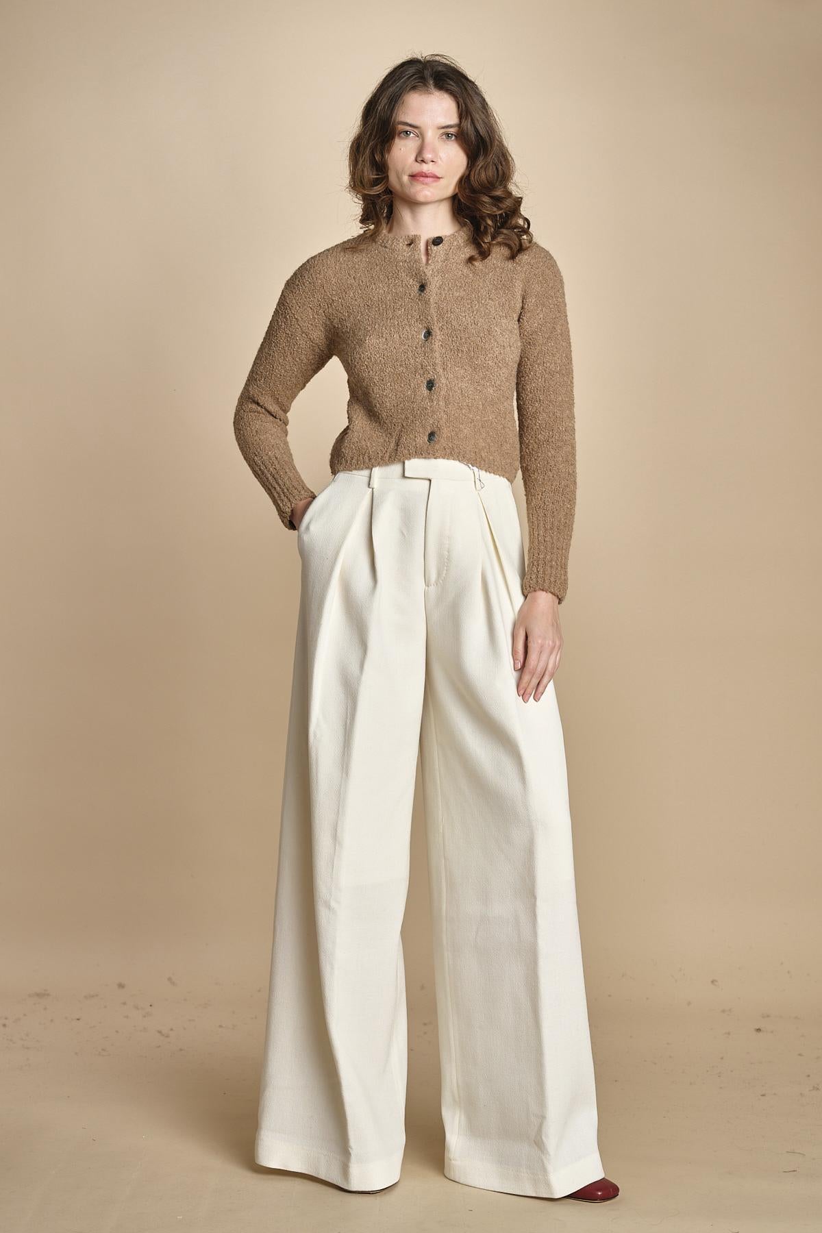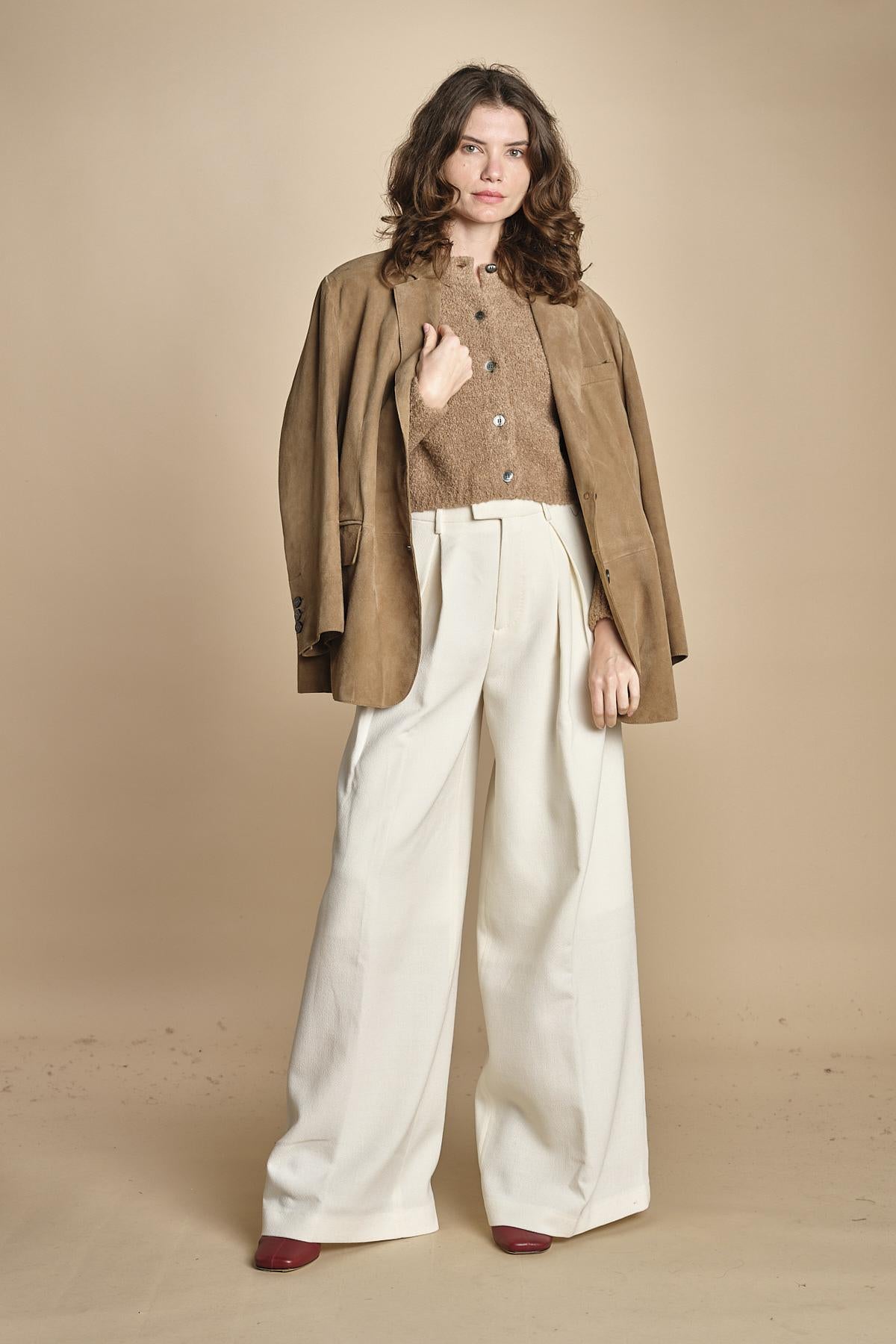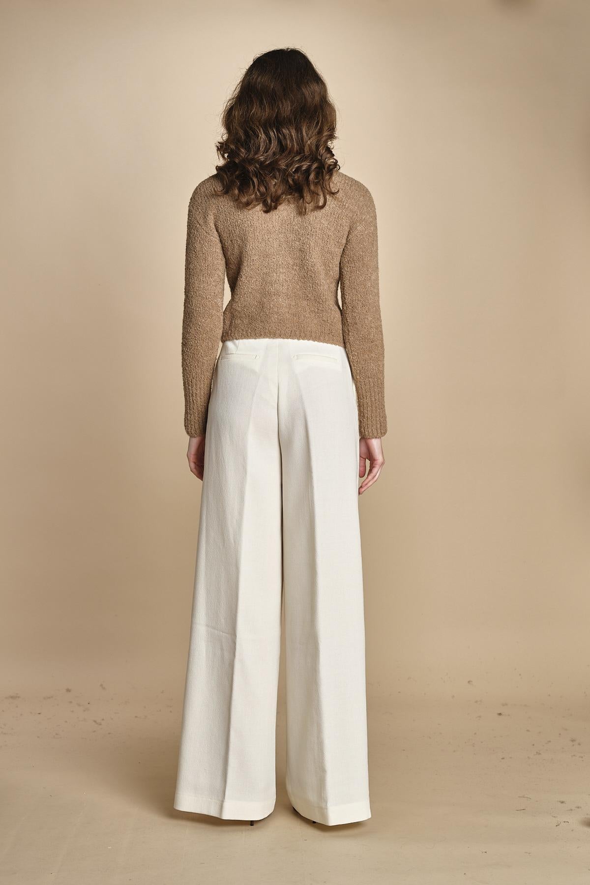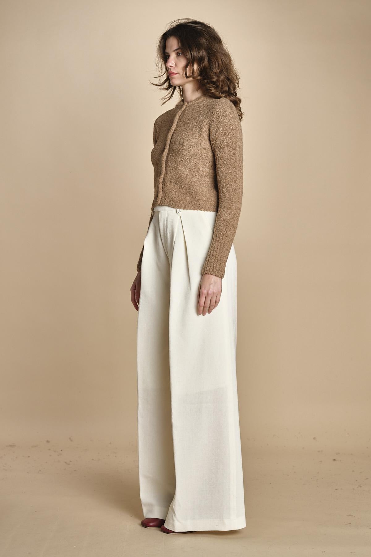 coreana bluclé. La modella è alta 176 cm e indossa una taglia S. 88% alpaca superfine 12% fibra poliammidica
