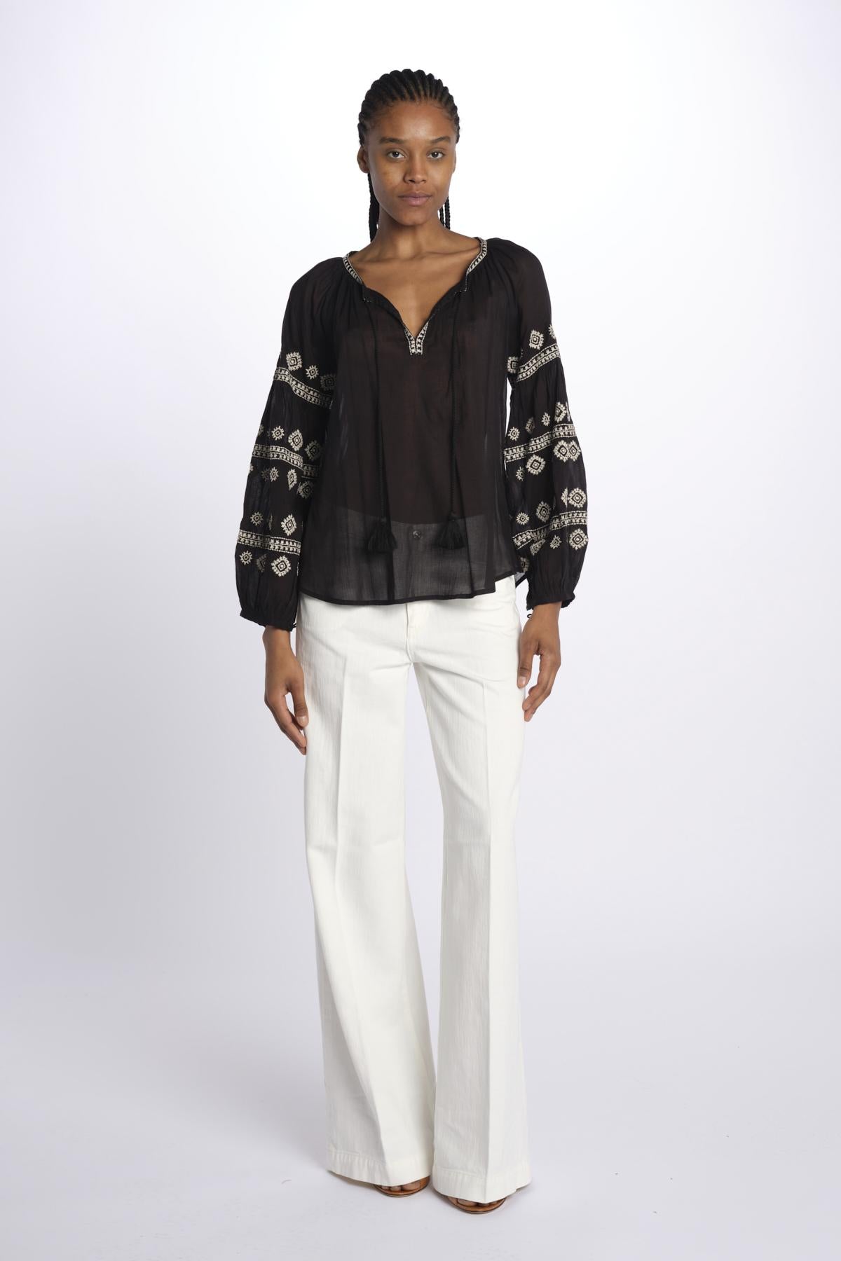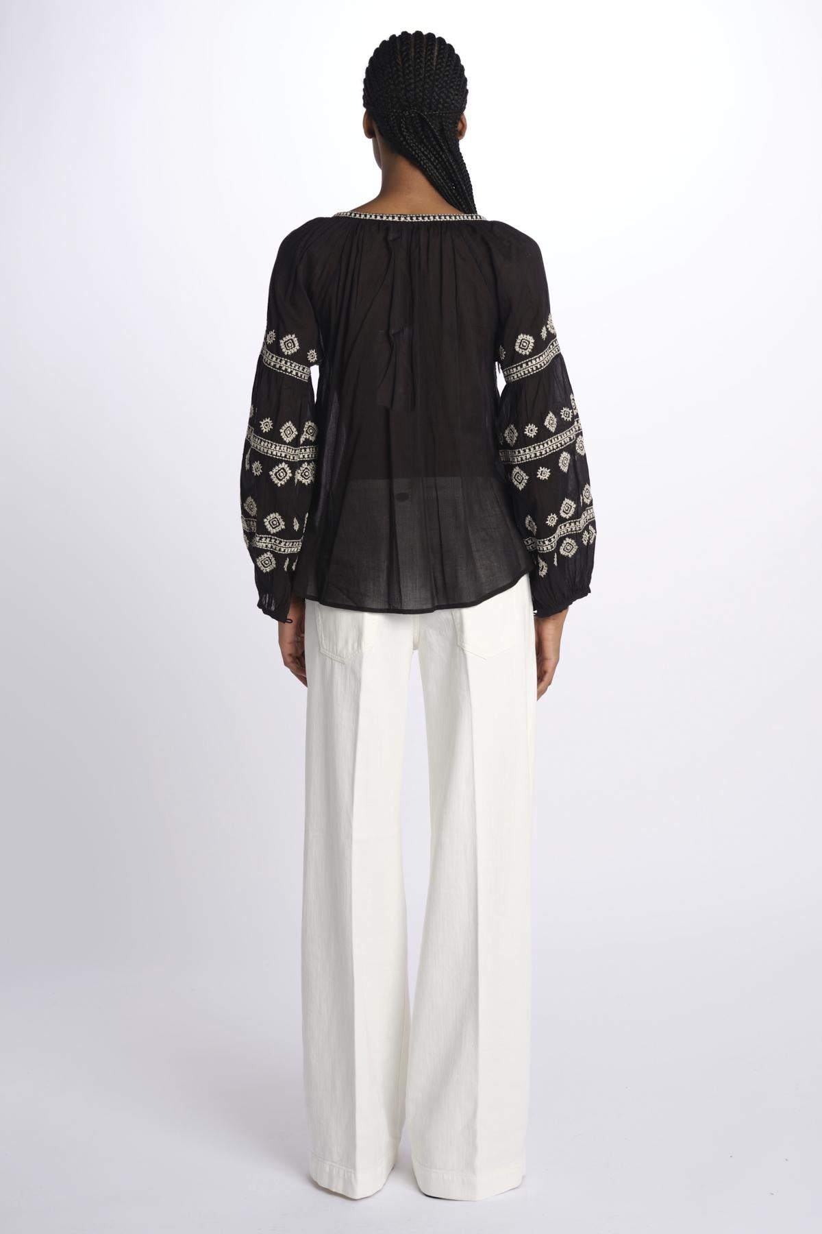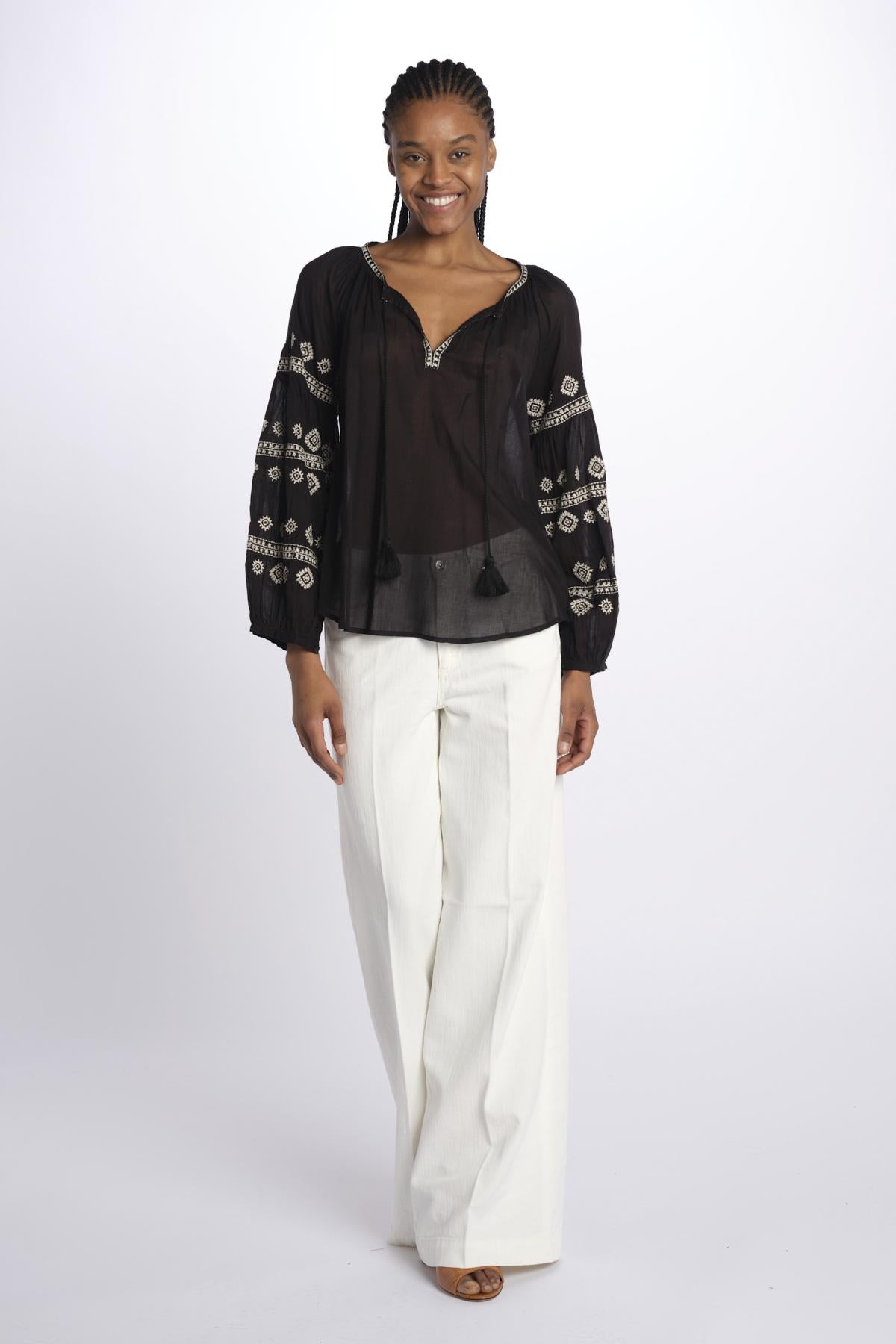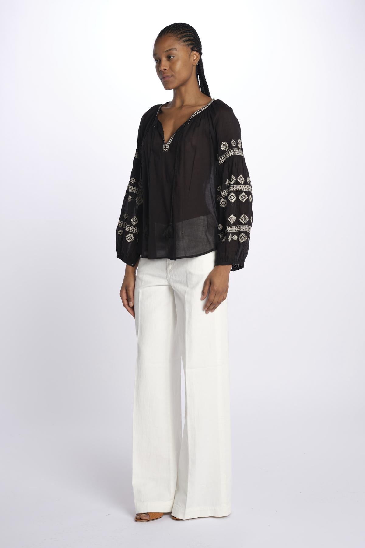 BALERIC camicia con maniche ricamate by milaura. BE22189 BLACK BEIGE benaras soleil
