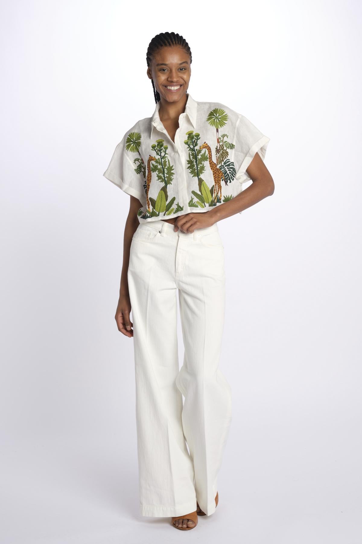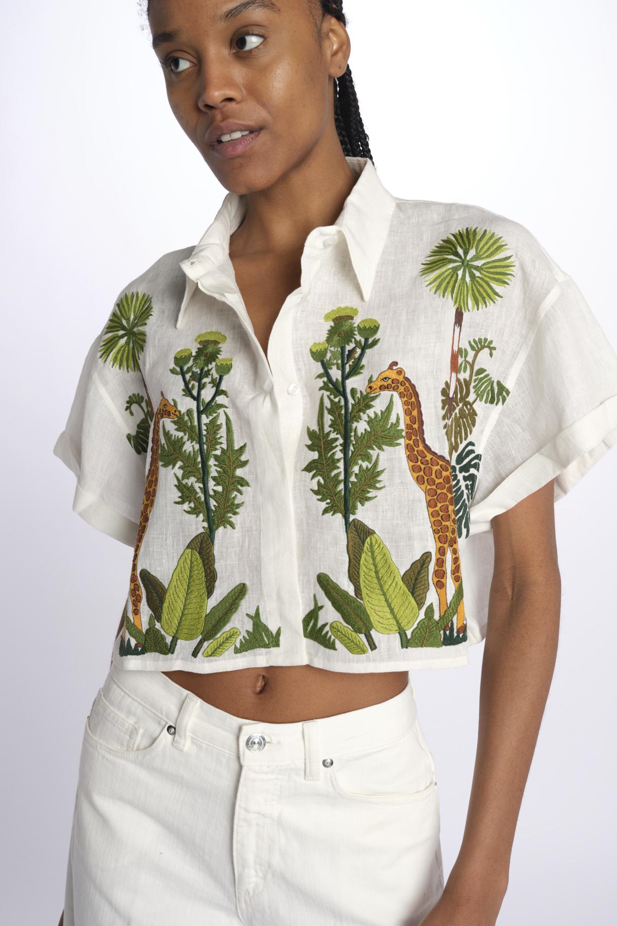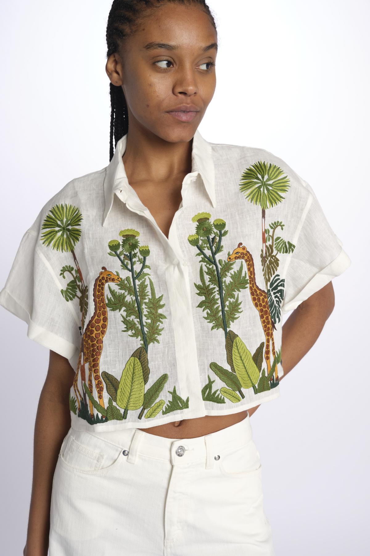 BONDI GIRAFFE camicia crop con giraffe ricamate by milaura.