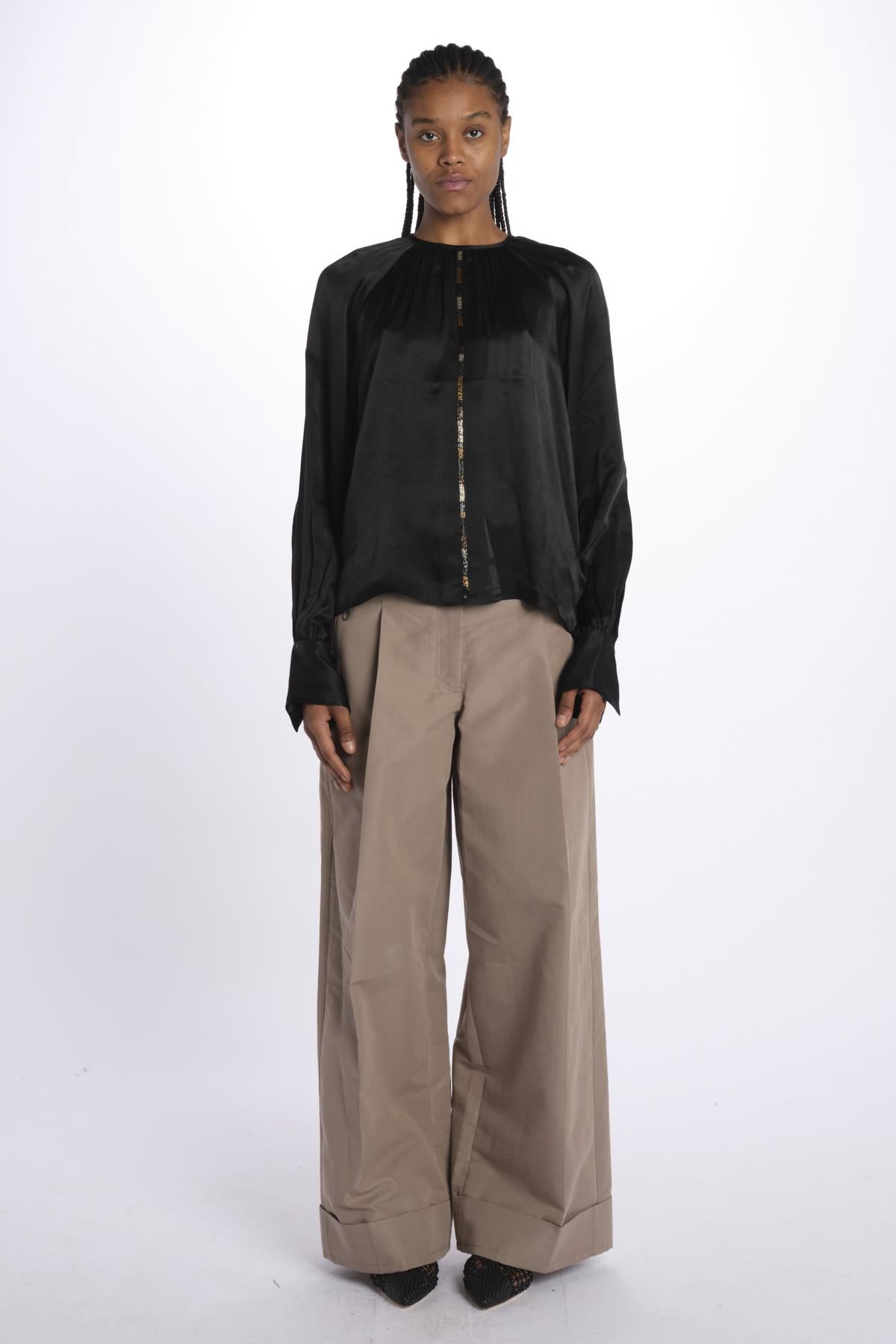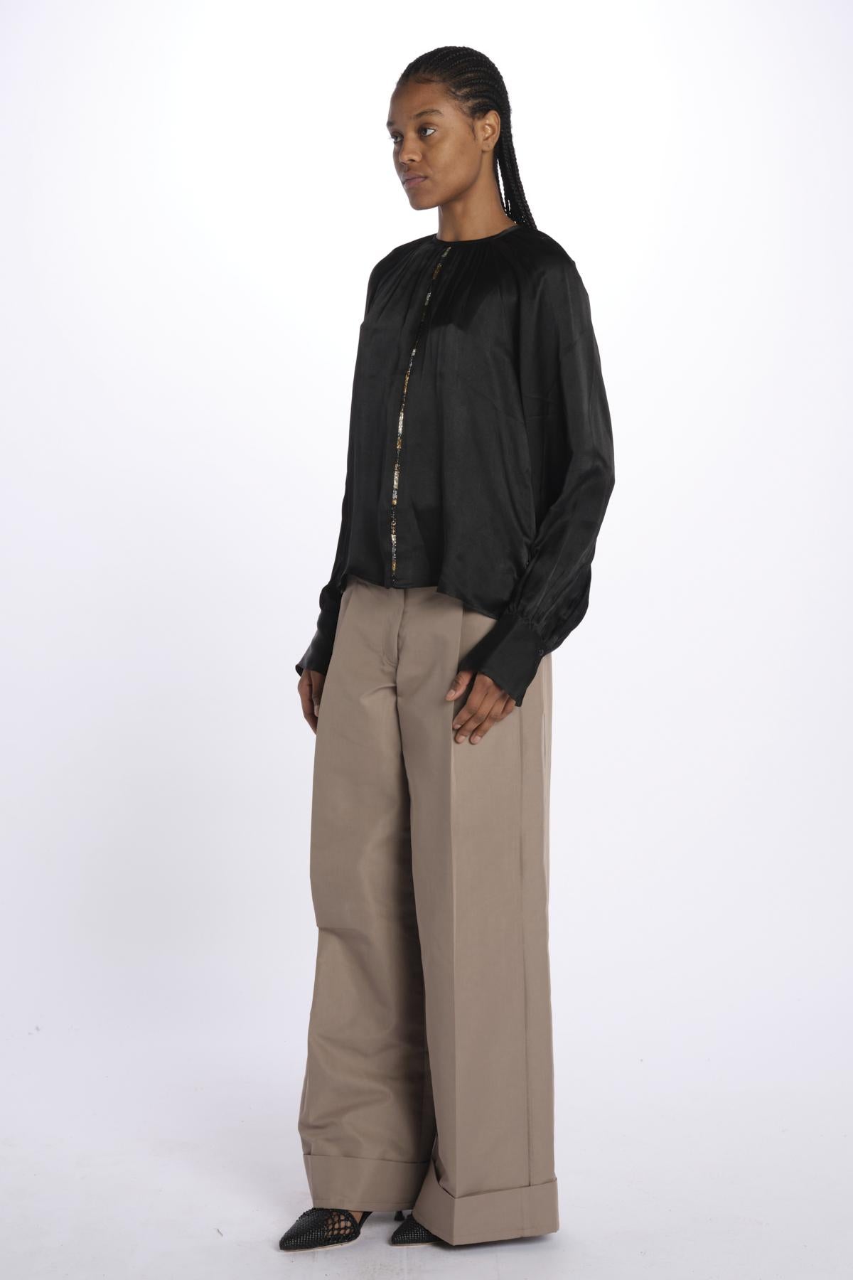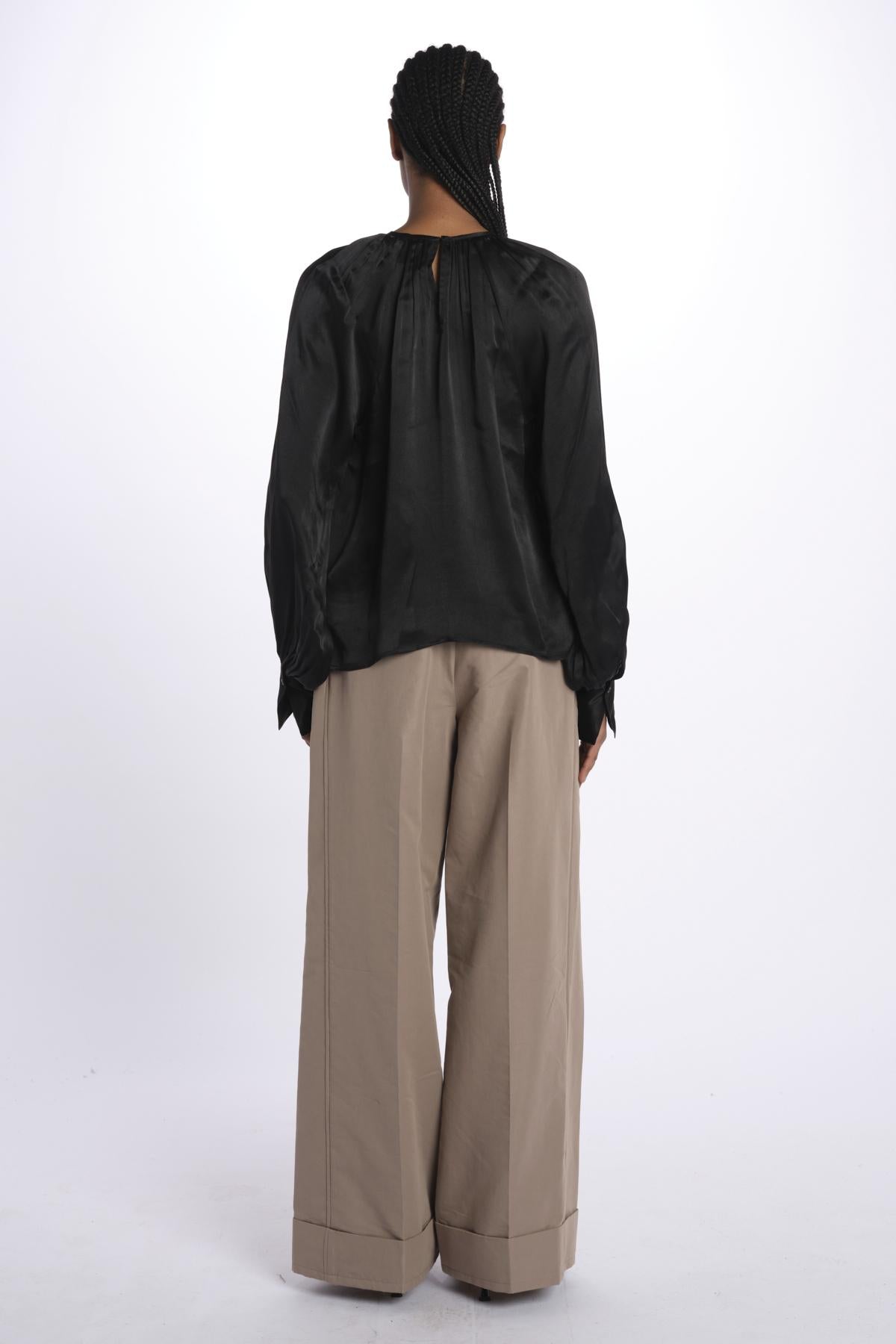 Camicia manica sbuffo CUTWORK by milaura. La modella è alta 174 cm e indossa una taglia XS.