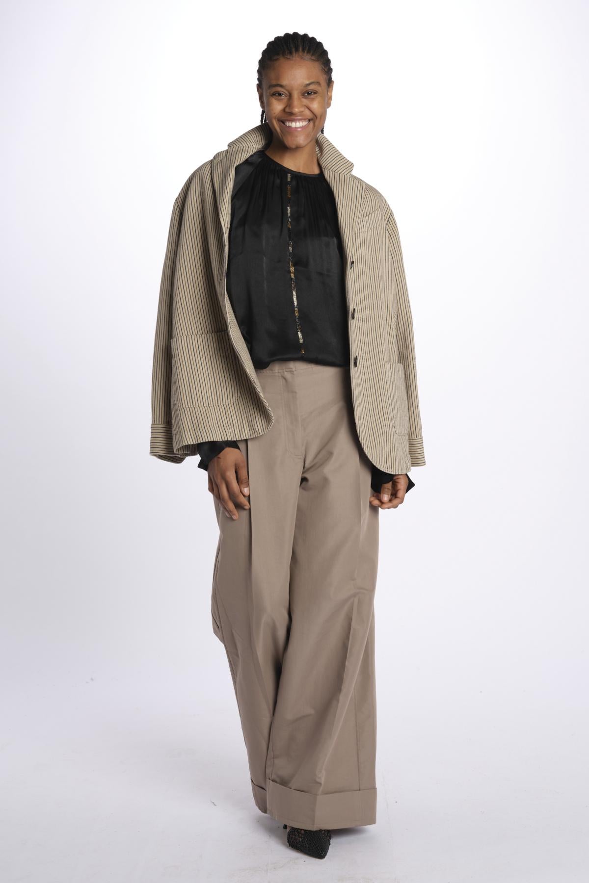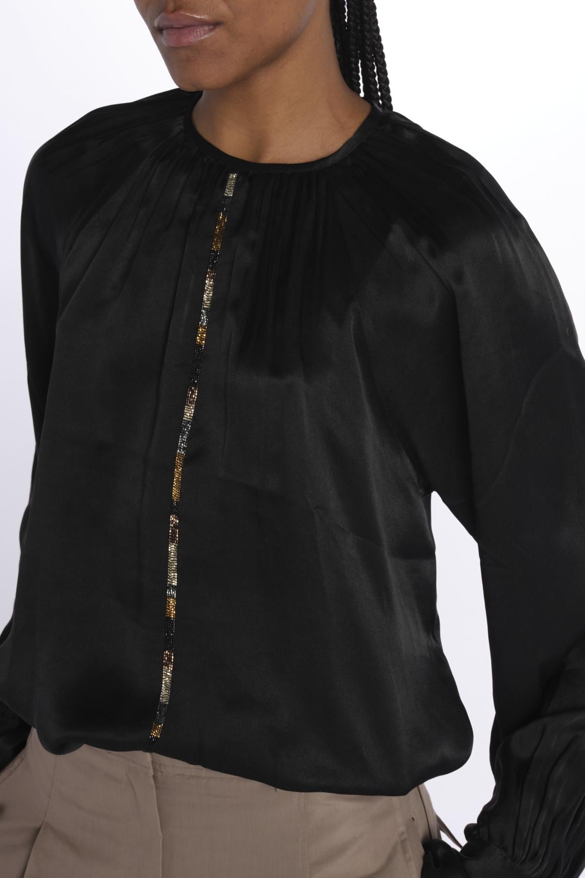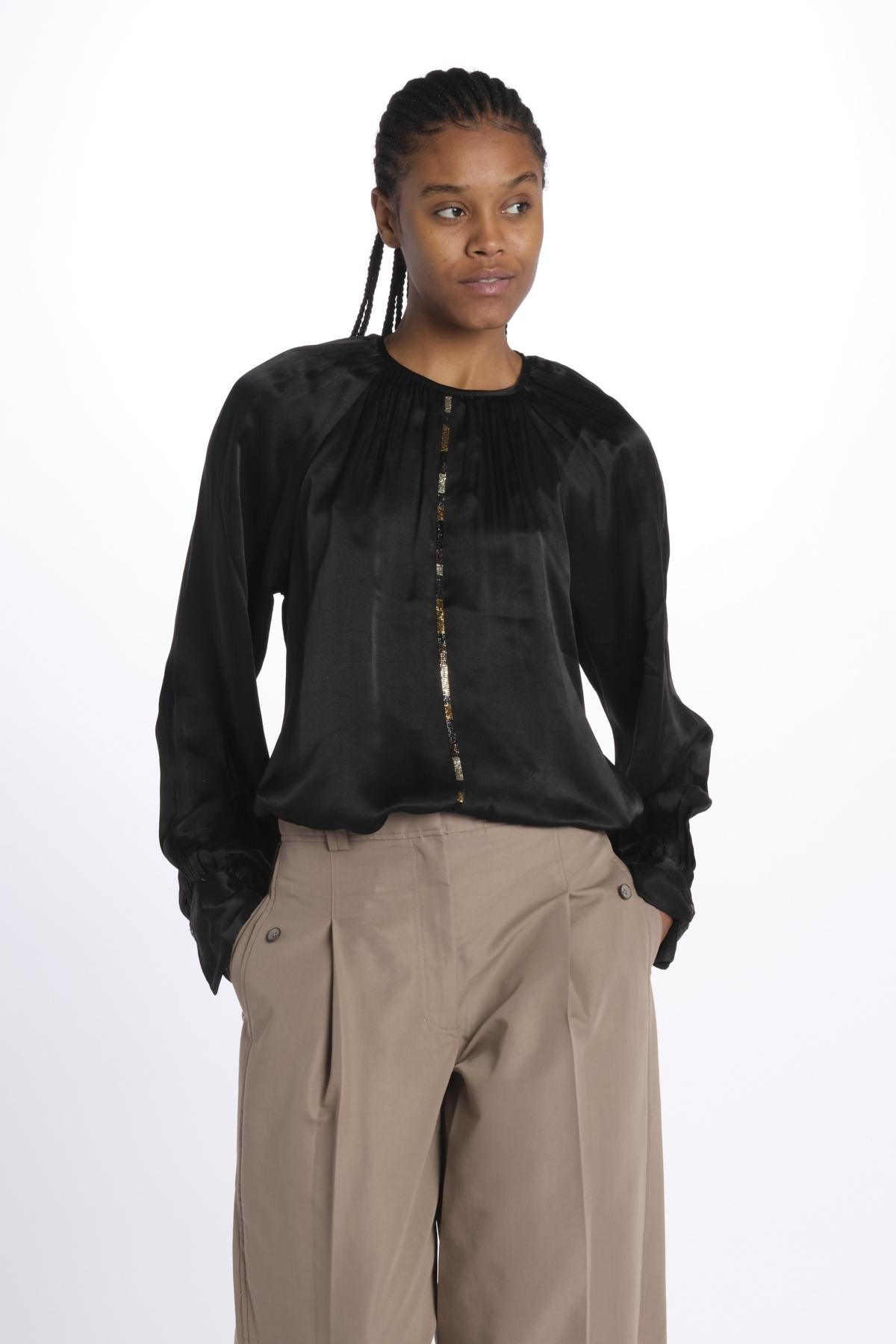 Camicia manica sbuffo CUTWORK by milaura. La modella è alta 174 cm e indossa una taglia XS.