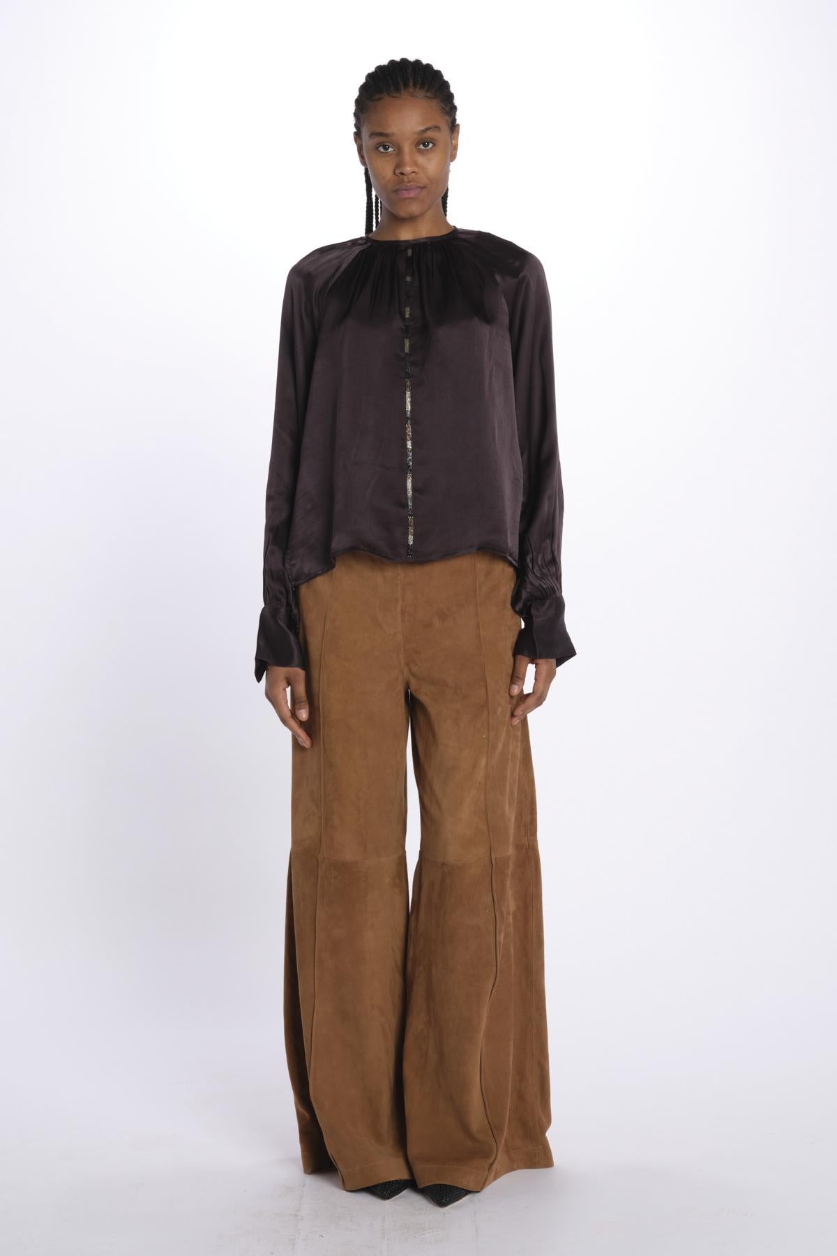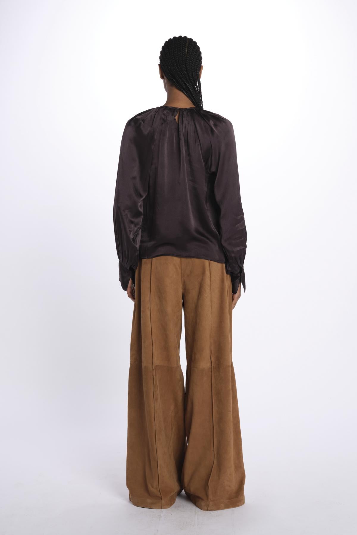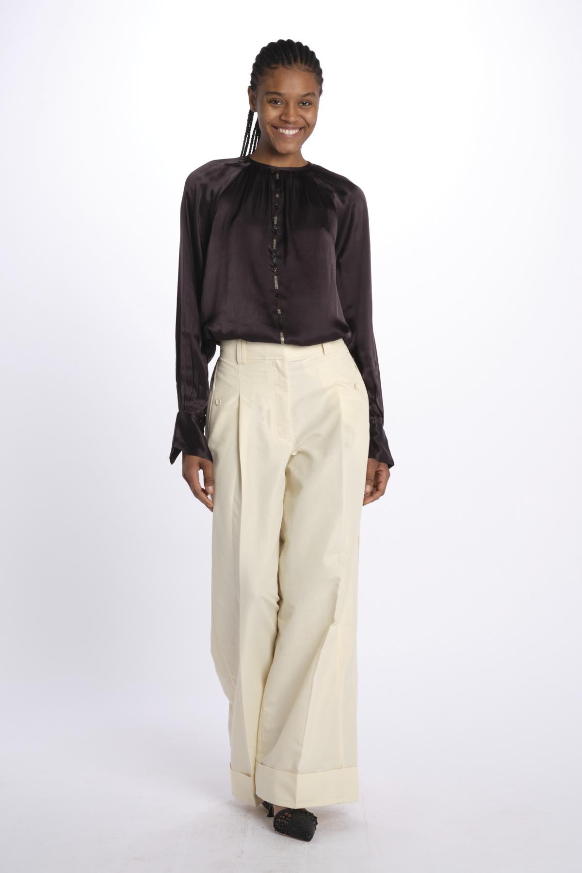 Camicia manica sbuffo CUTWORK by milaura. La modella è alta 174 cm e indossa una taglia XS. Composizione: 100% seta.