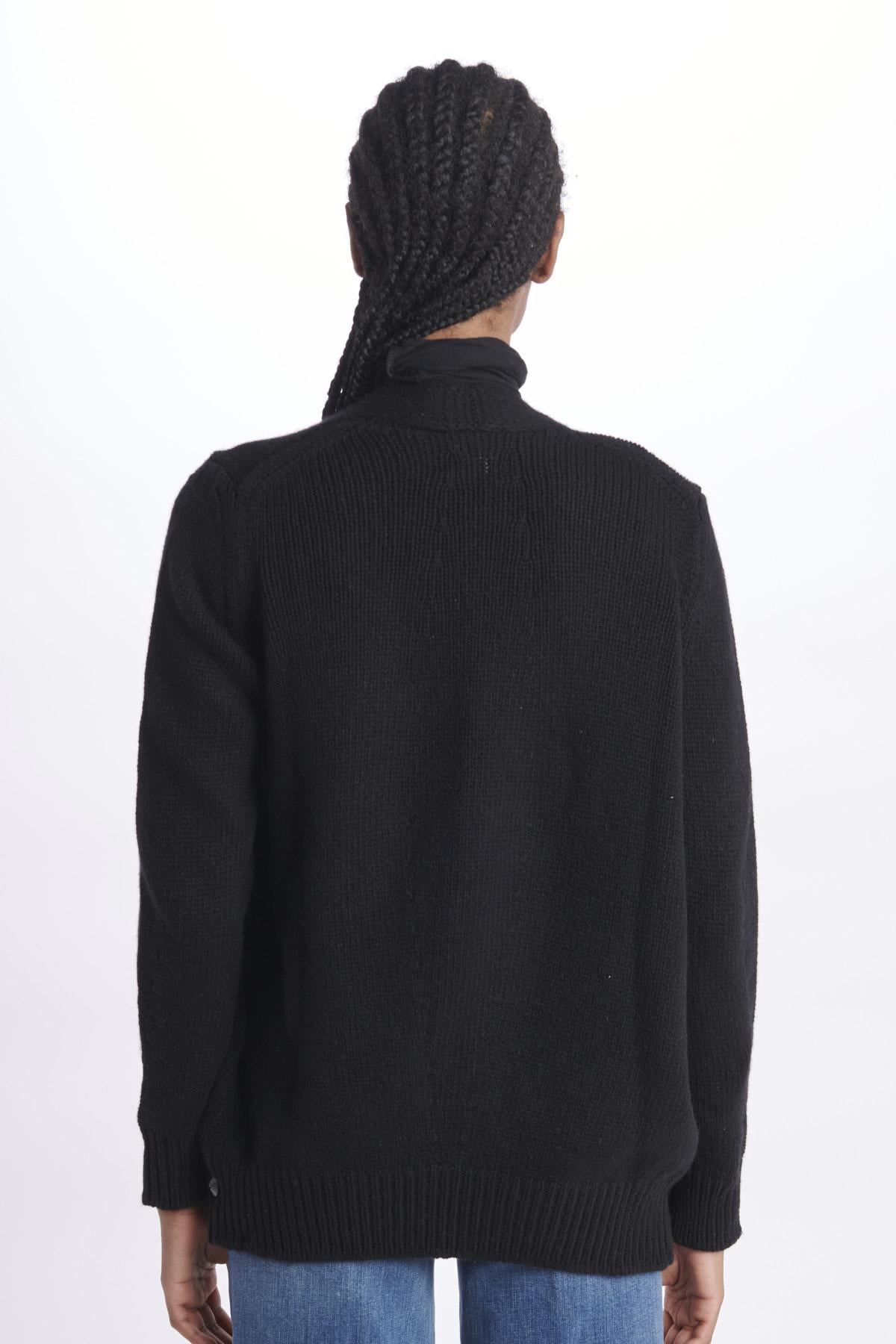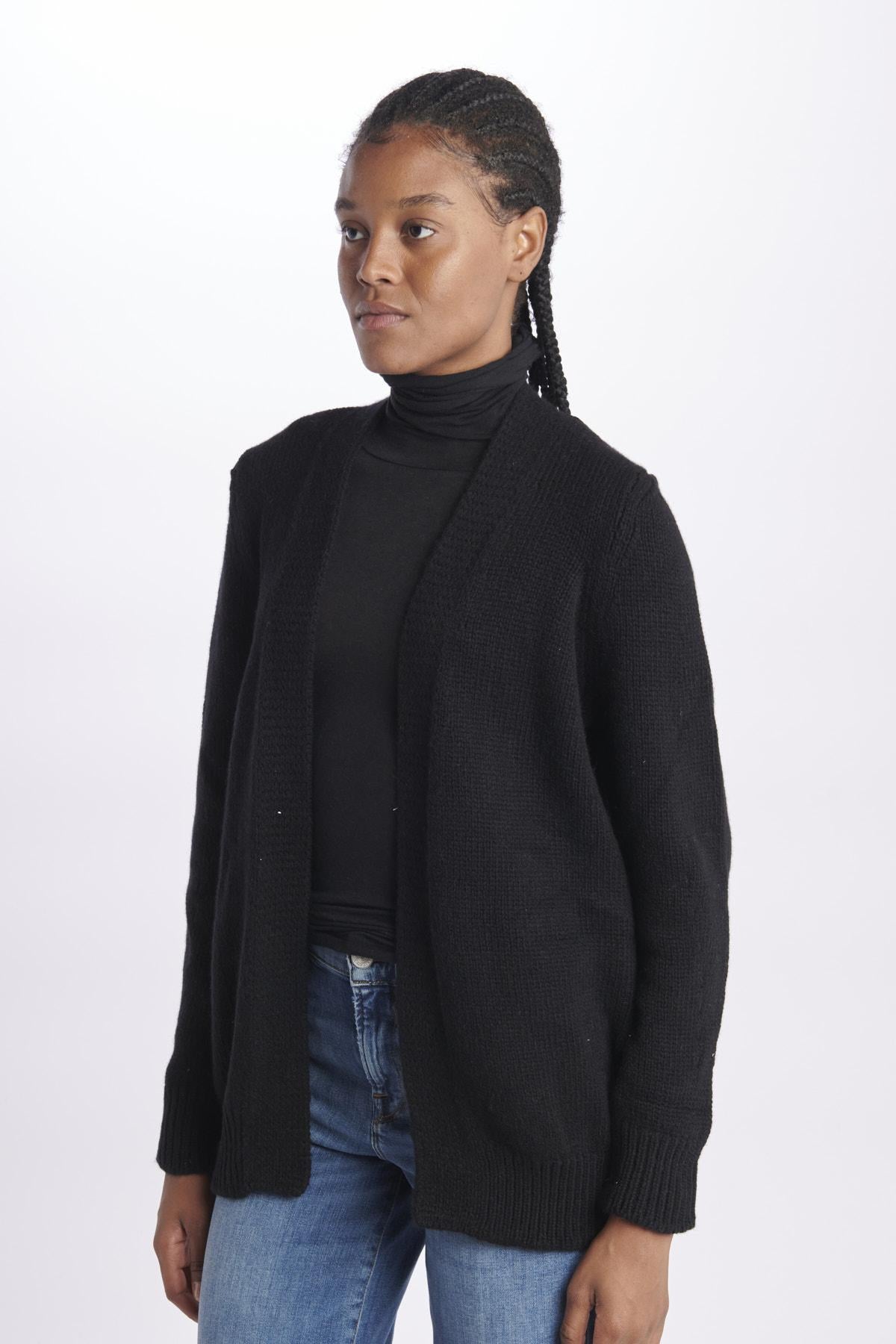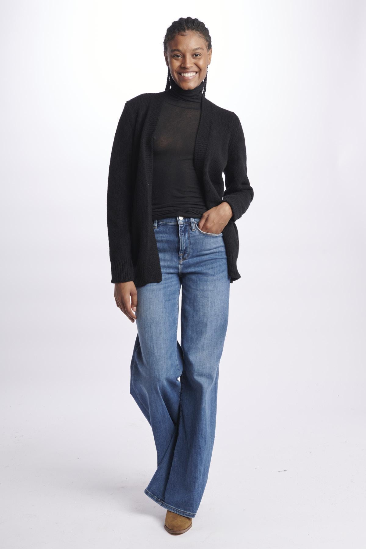 Cardigan by Milaura ovetto. La modella è alta 174 cm e indossa la taglia 36. Composizione: 100% Cashmere.