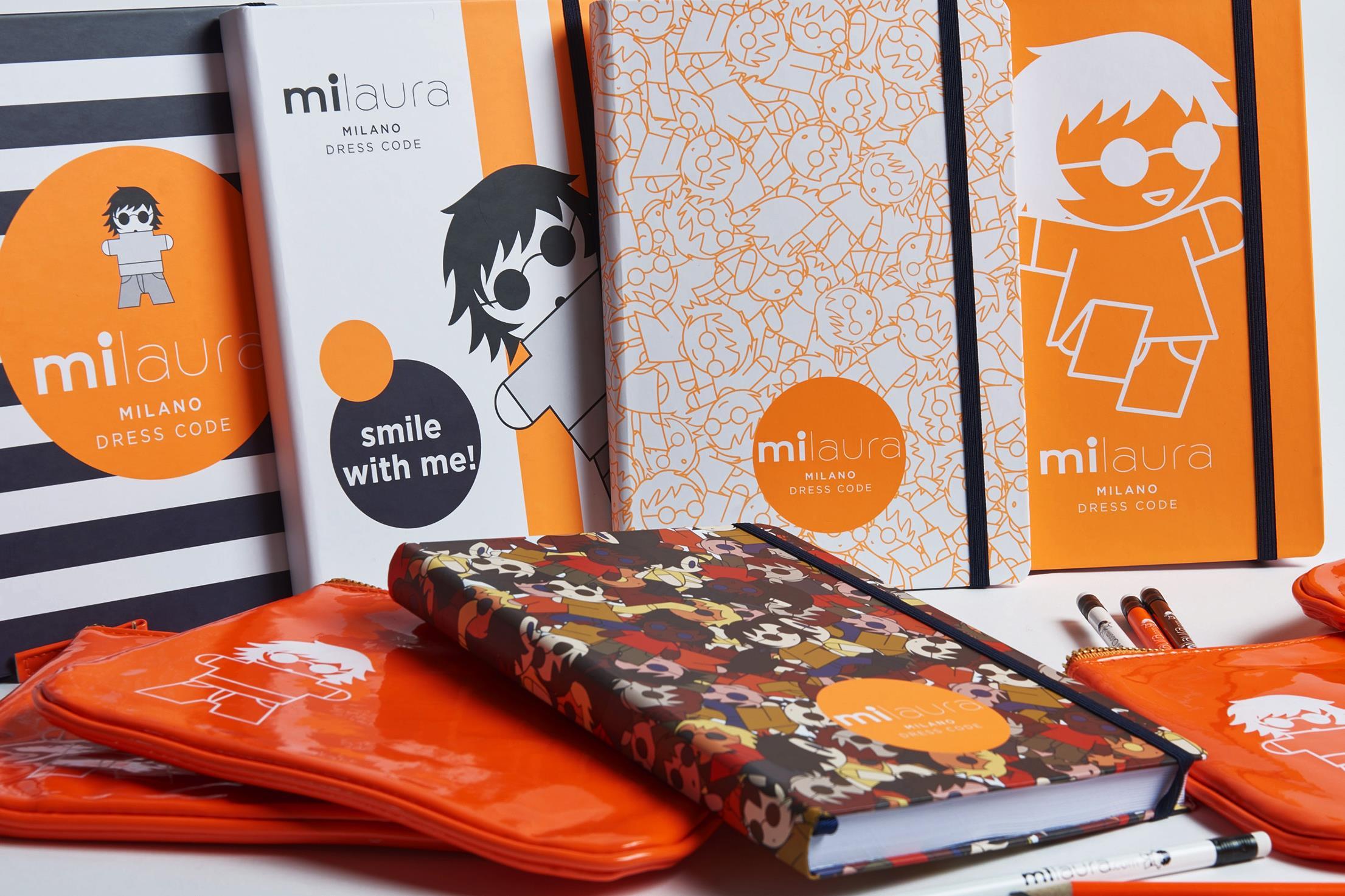 quaderno milaura bambolina fluo all overdimensioni: larghezza 15 cm, altezza 21 cm, spessore 2 cmlayout interno: puntinicopertina rigida