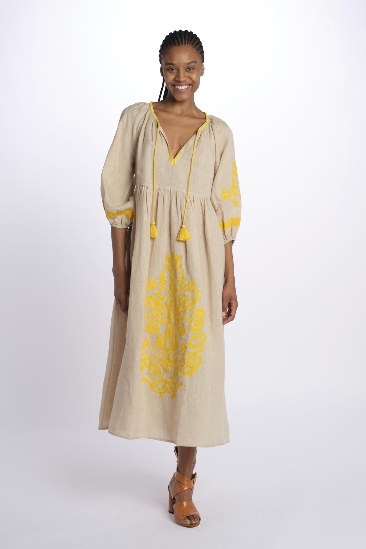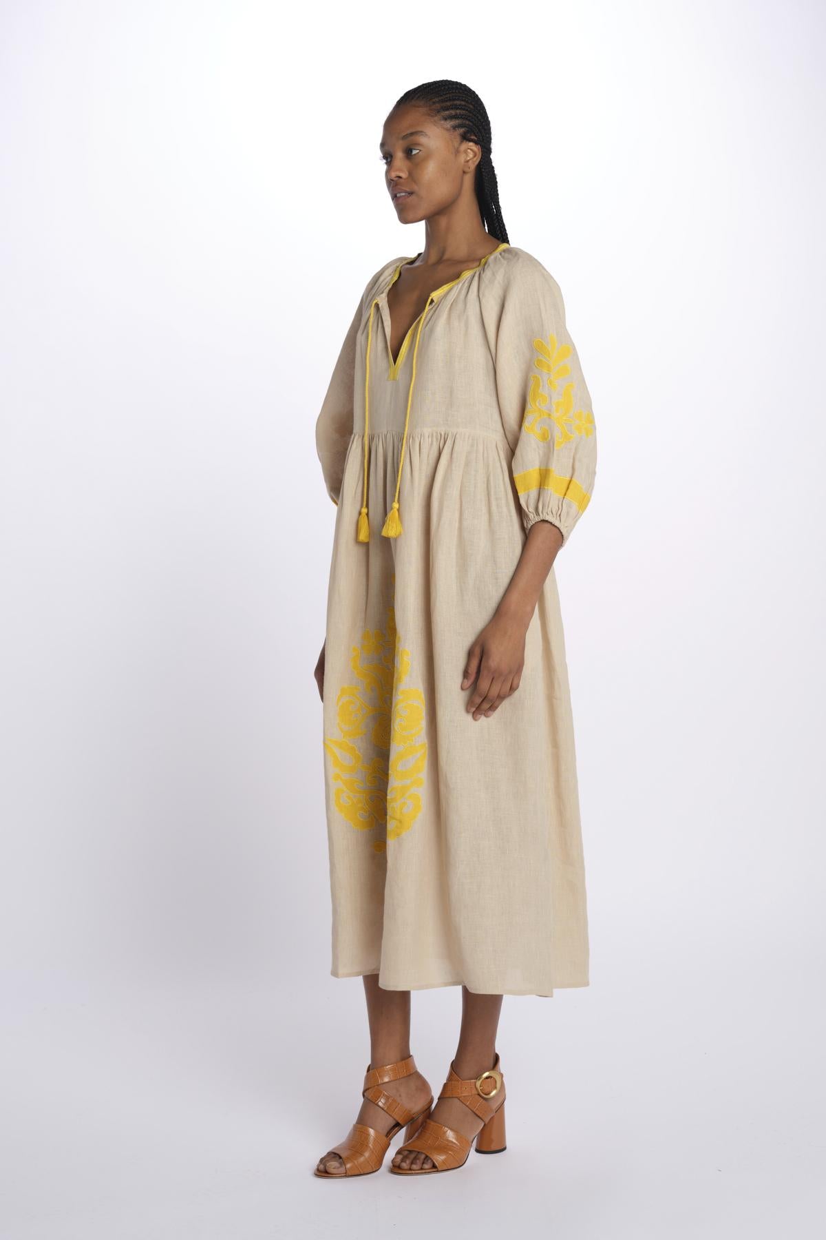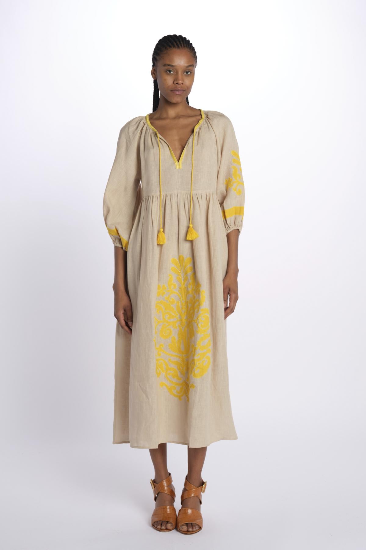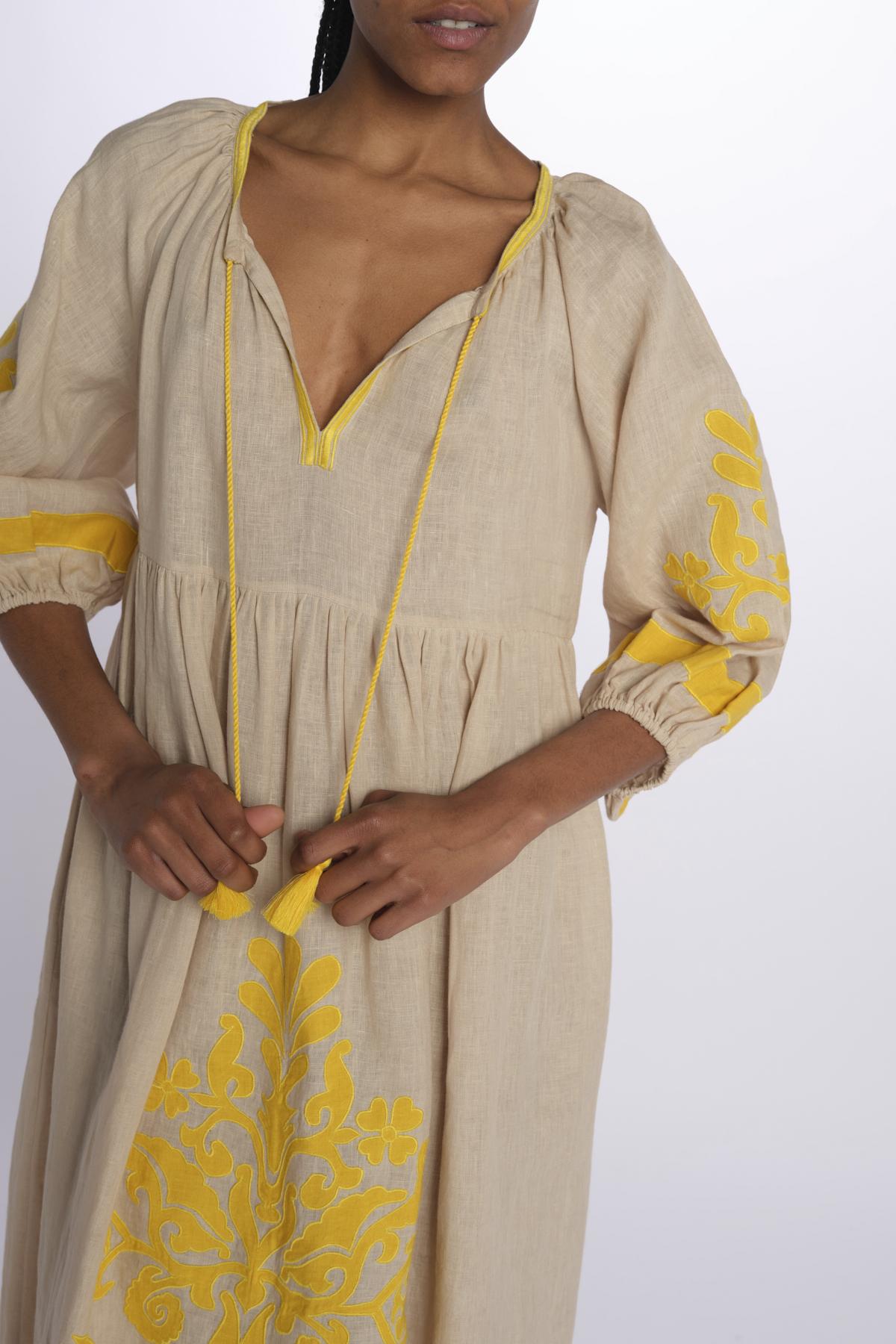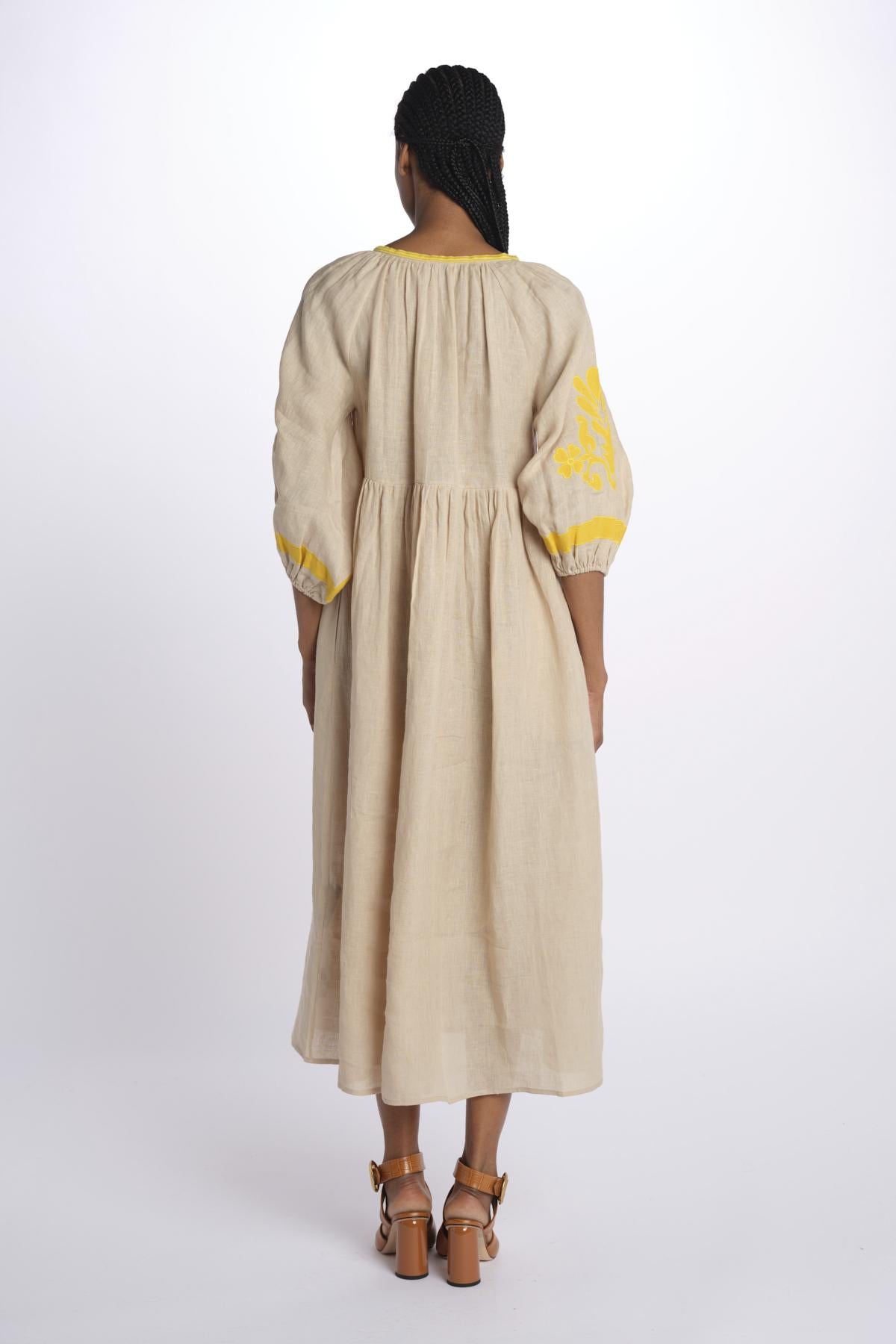 GEOGLIFIC tunica con applicazioni by milaura. La modella è alta 174 cm e indossa una taglia XS. Composizione: 100% lino.