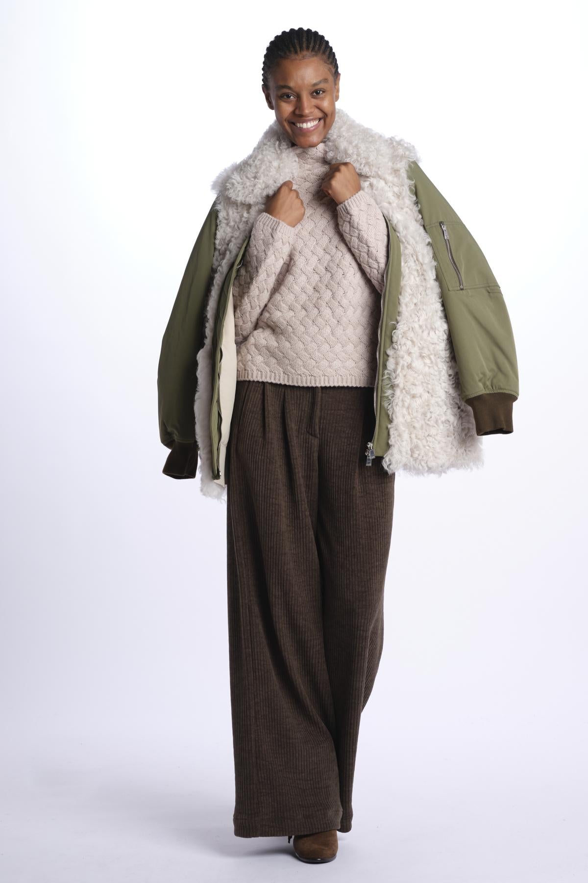 Dolcevita a mano by milaura knit. La modella è alta 174 cm e indossa una S. Composizione: 100% cashmere.