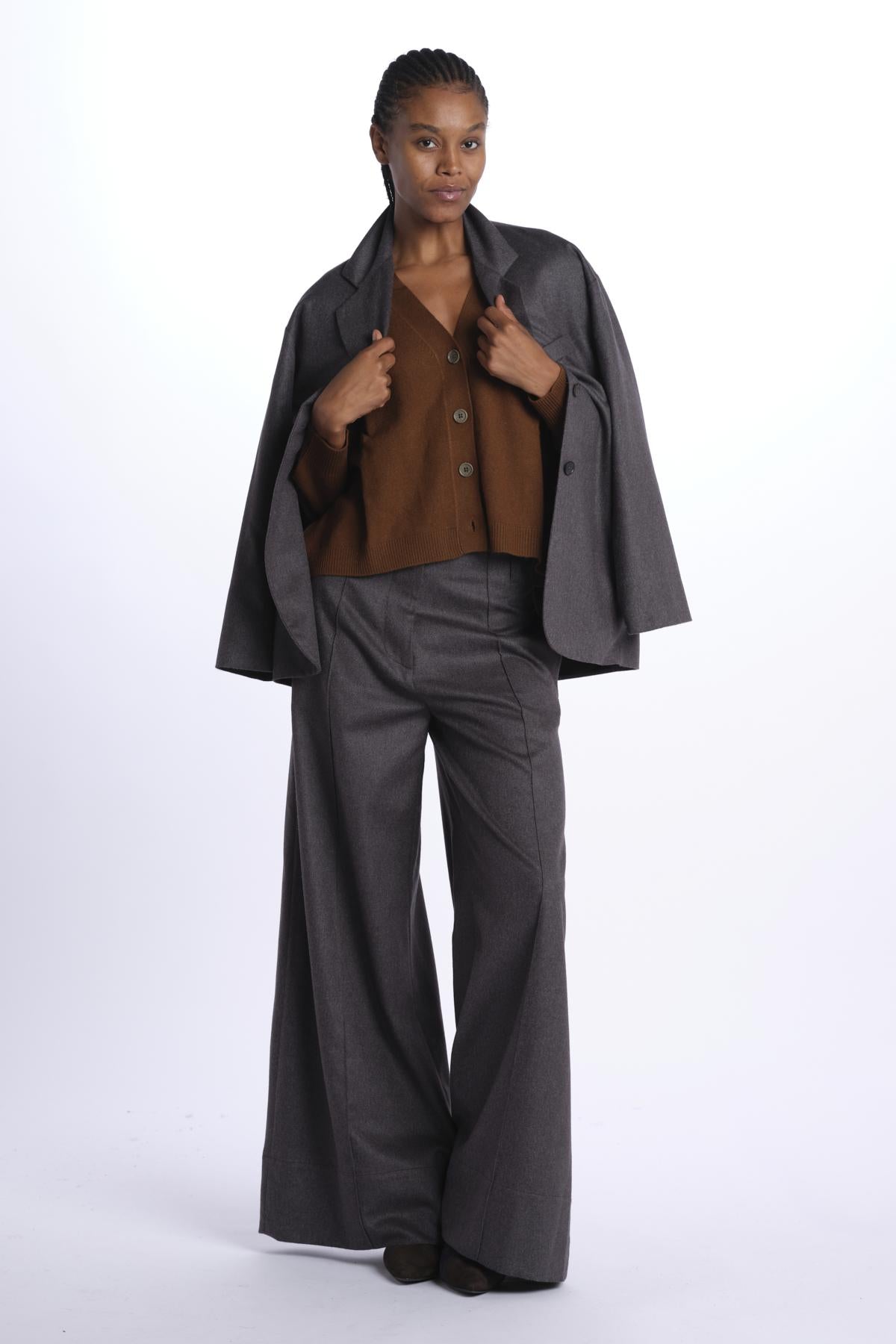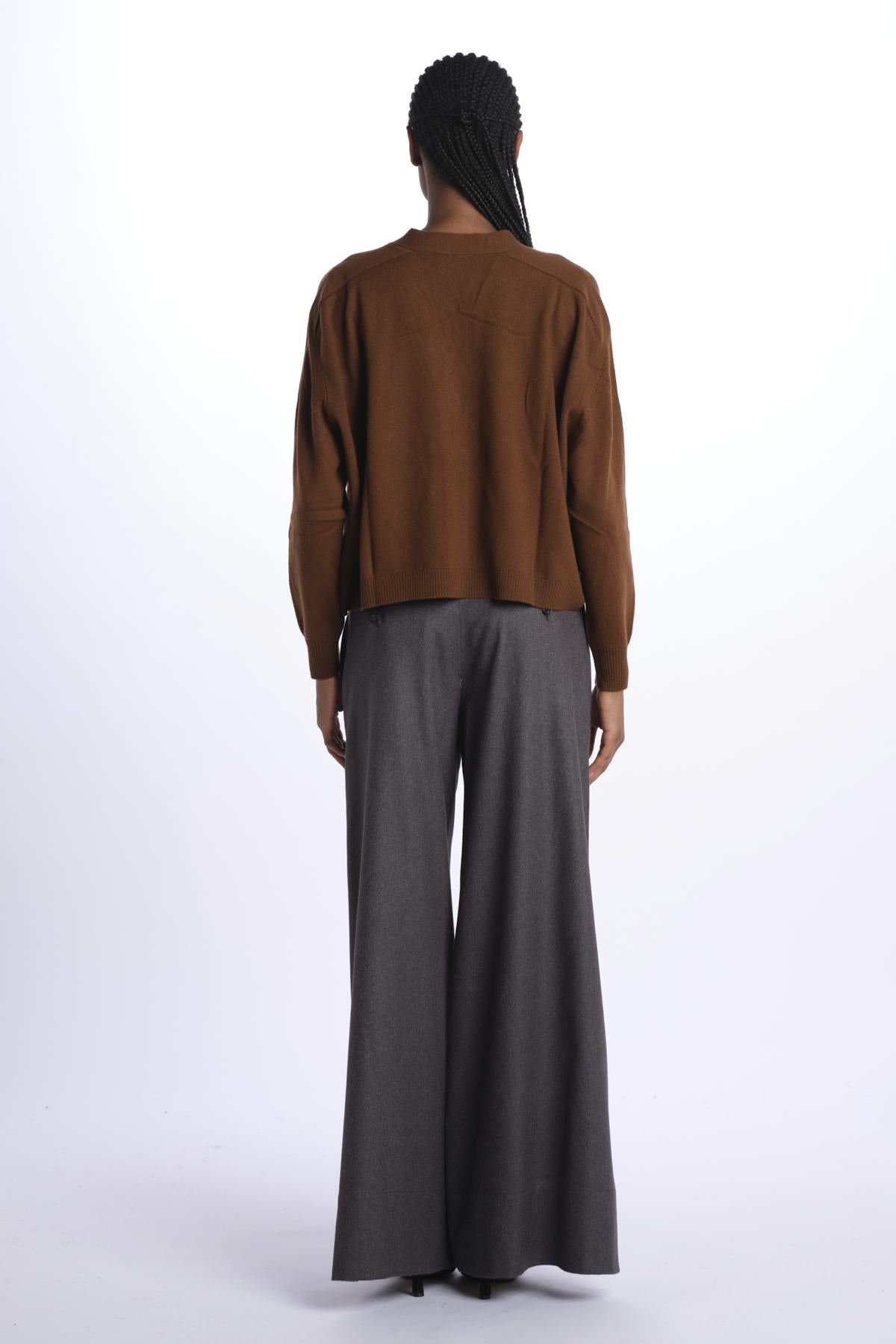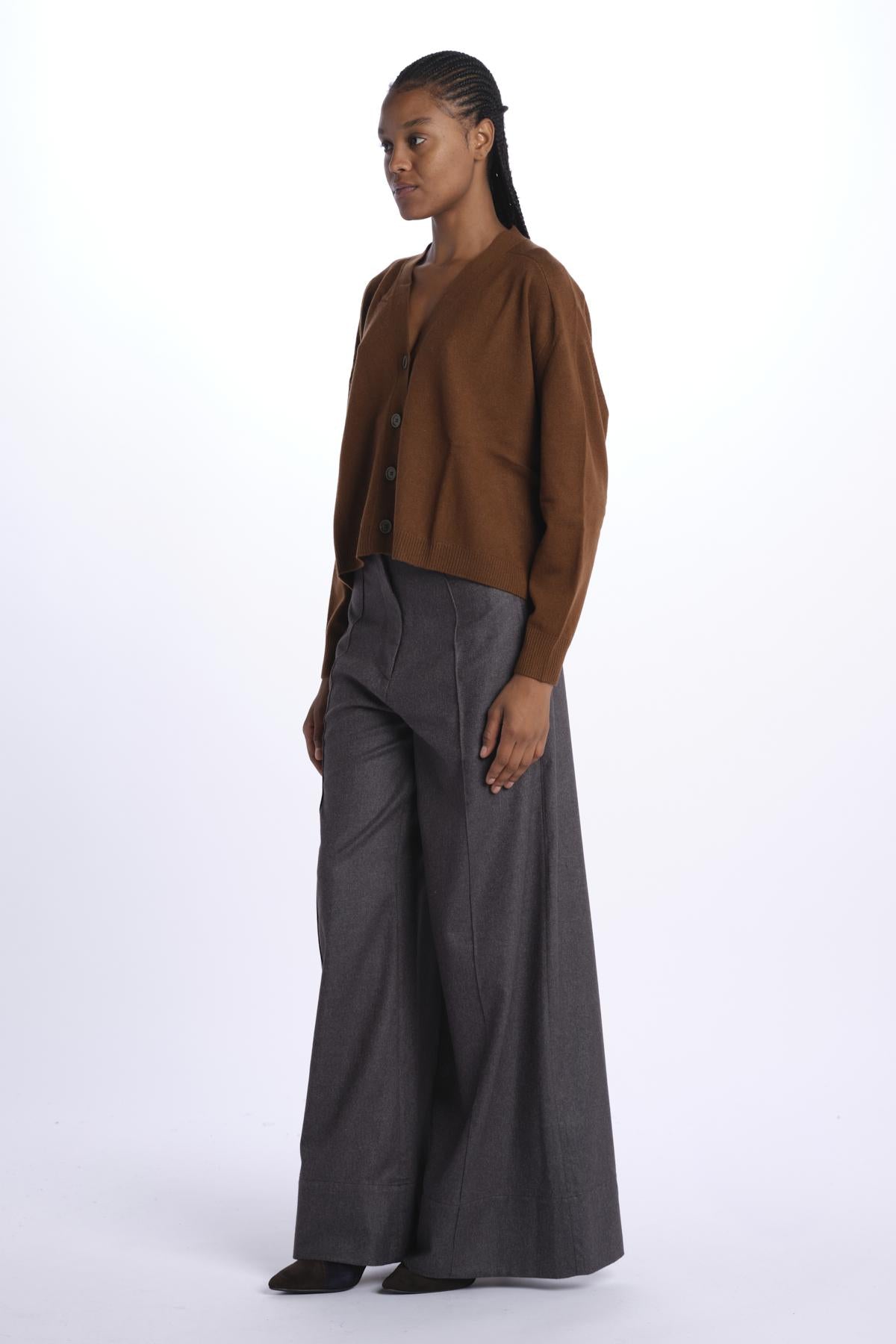 Cardigan over by milaura knit. La modella è alta 174 cm e indossa una taglia XS. Composizione: 100% cashmere.