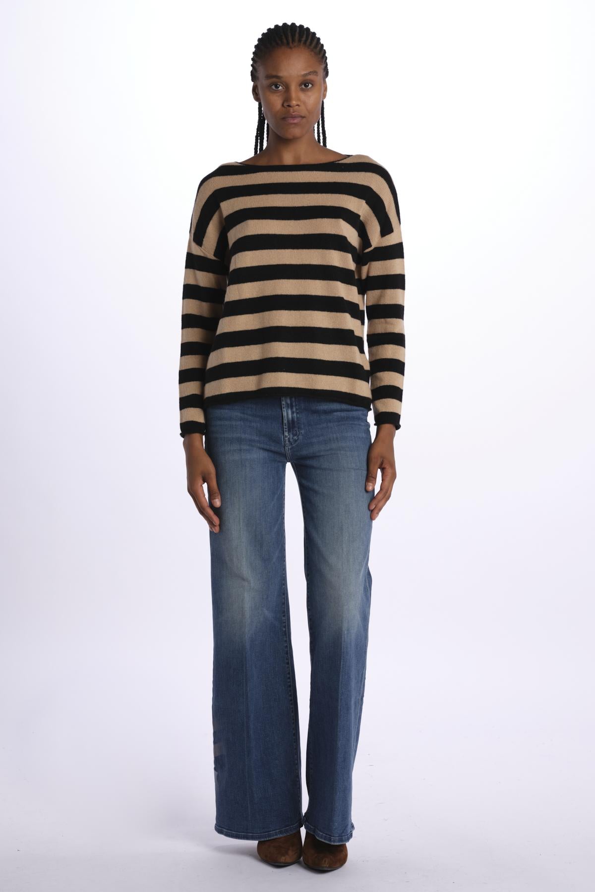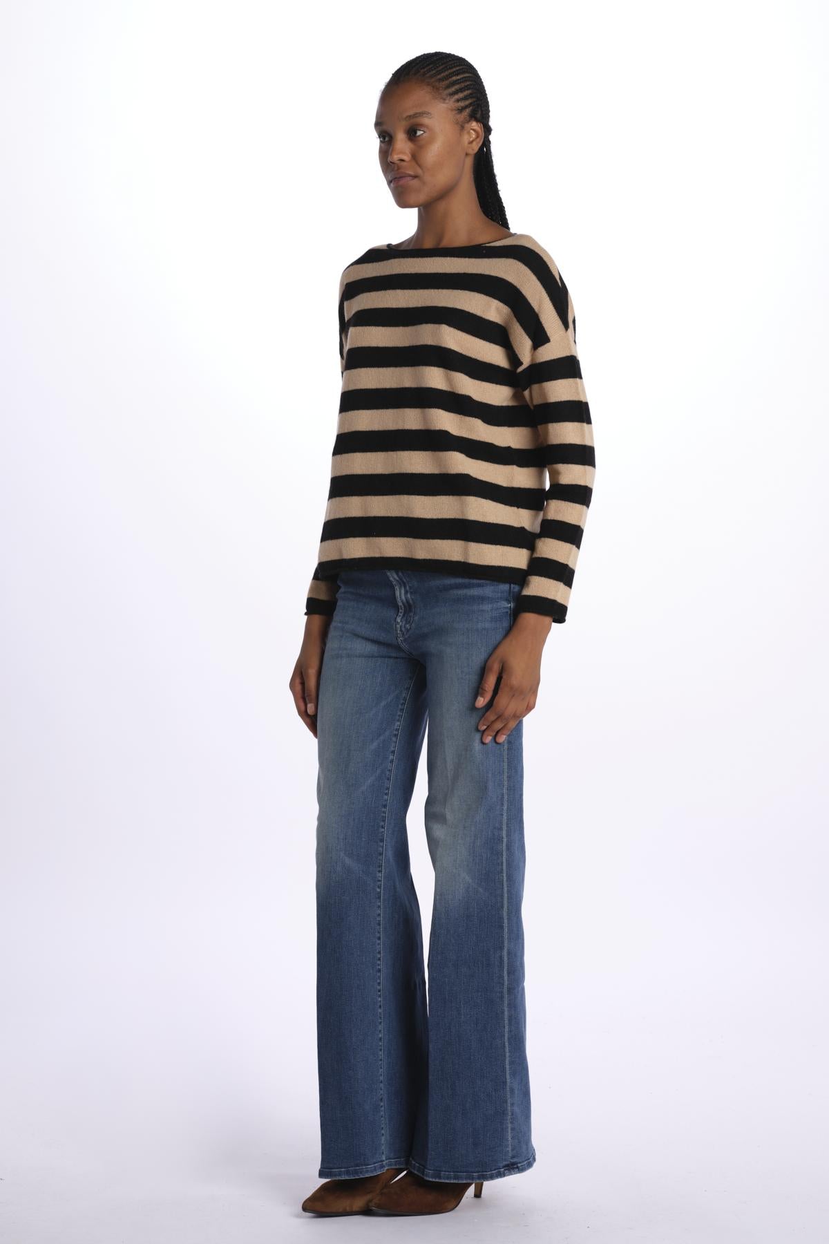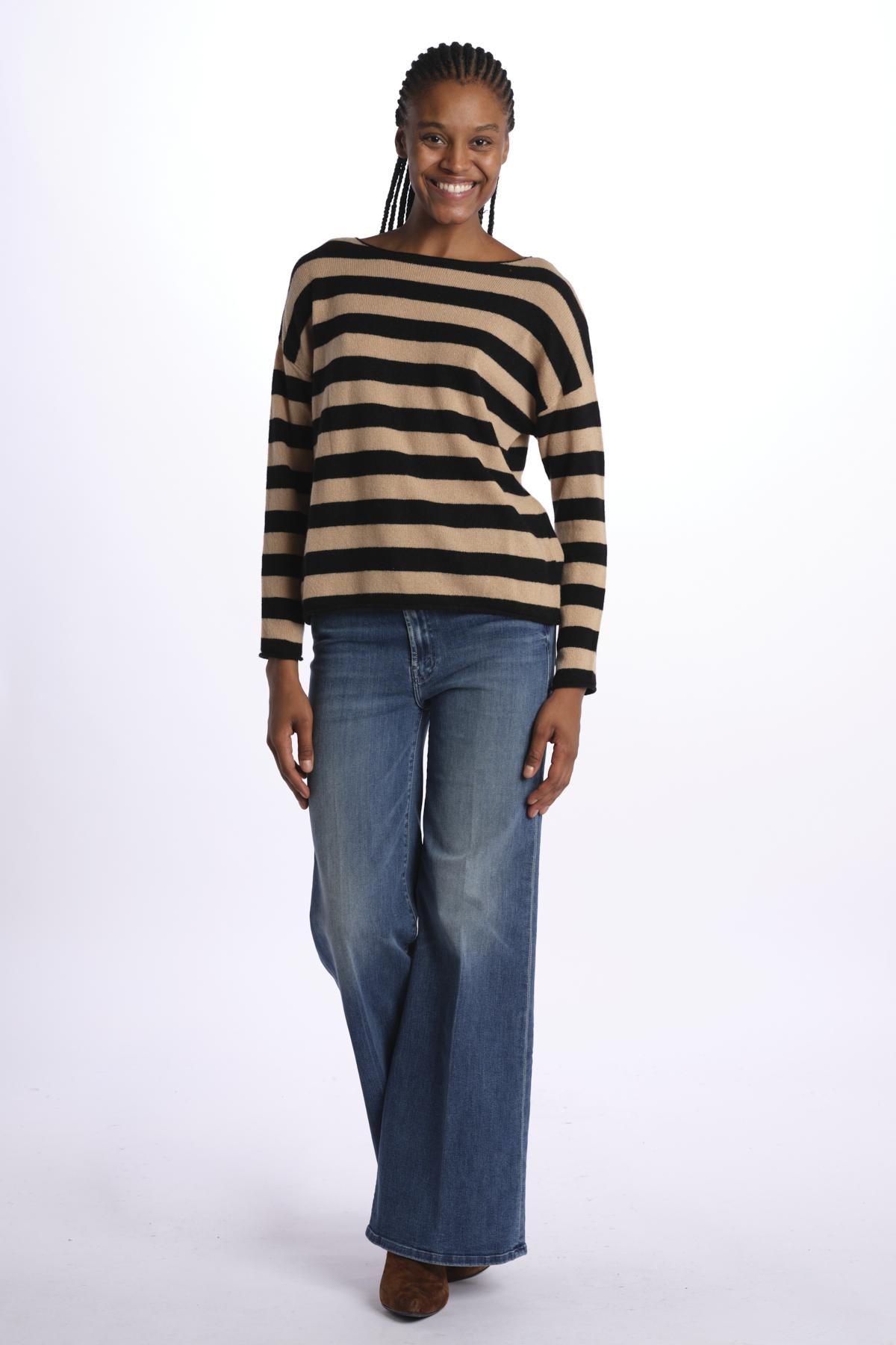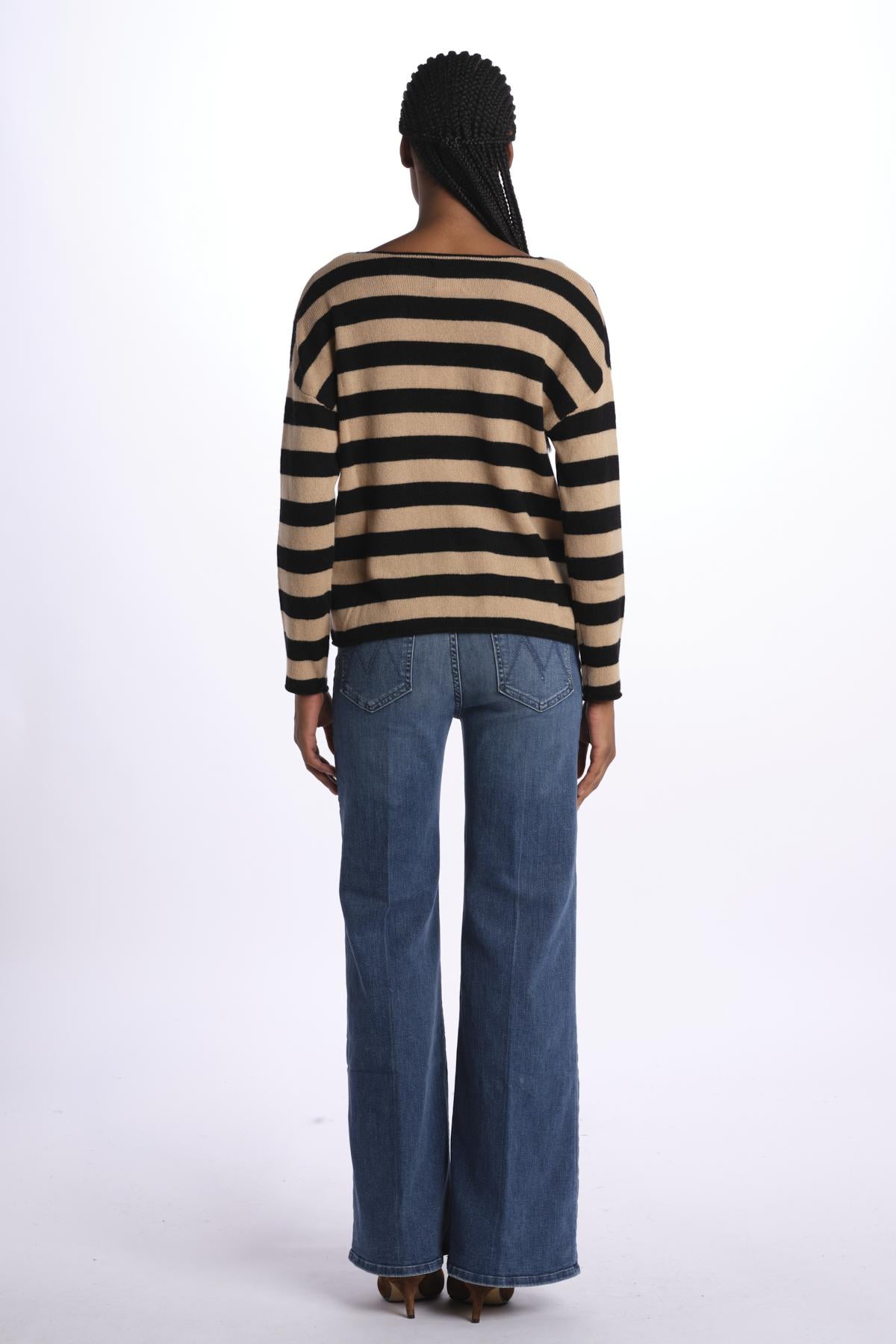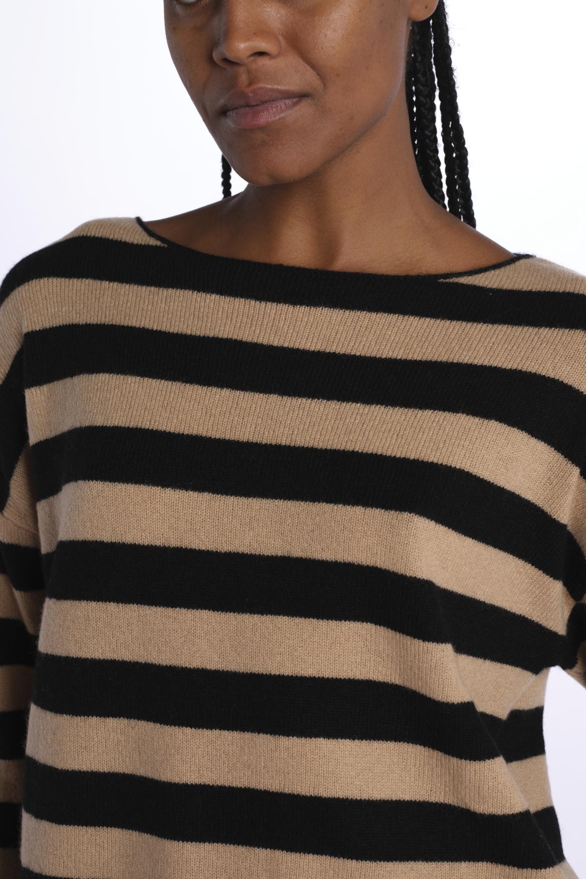Scollo barca righe grandi by milaura knit. La modella è alta 174 cm e indossa una taglia XS. Composizione: 100% cashmere.