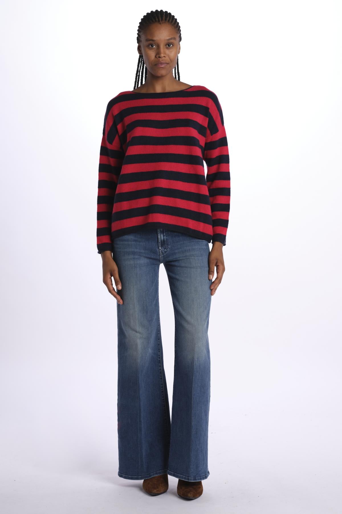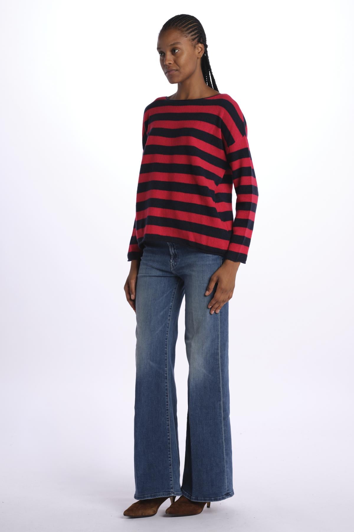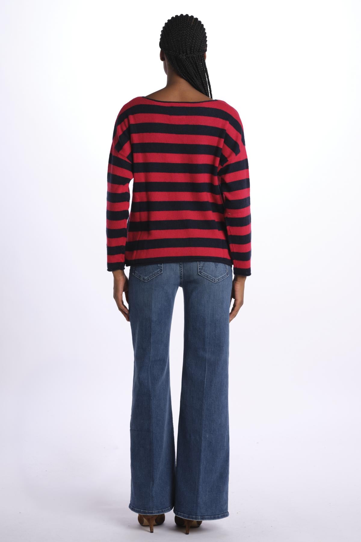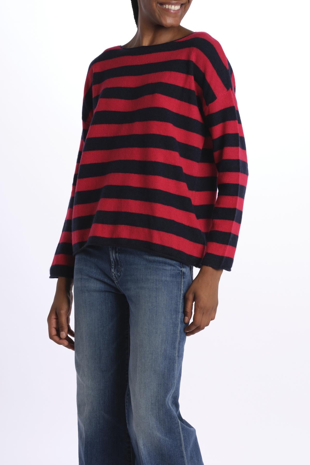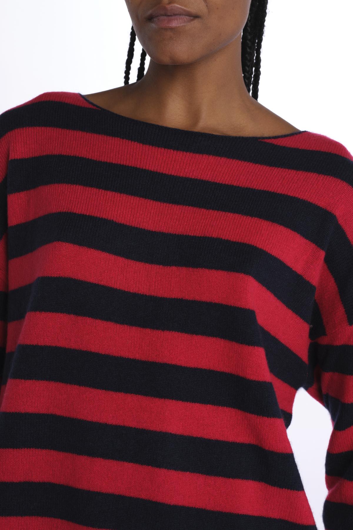 Scollo barca righe grandi by milaura knit. La modella è alta 174 cm e indossa una taglia XS. Composizione: 100% cashmere.