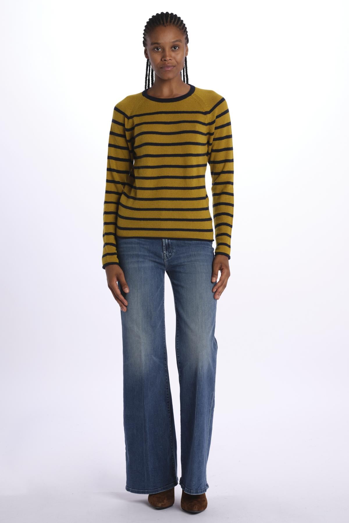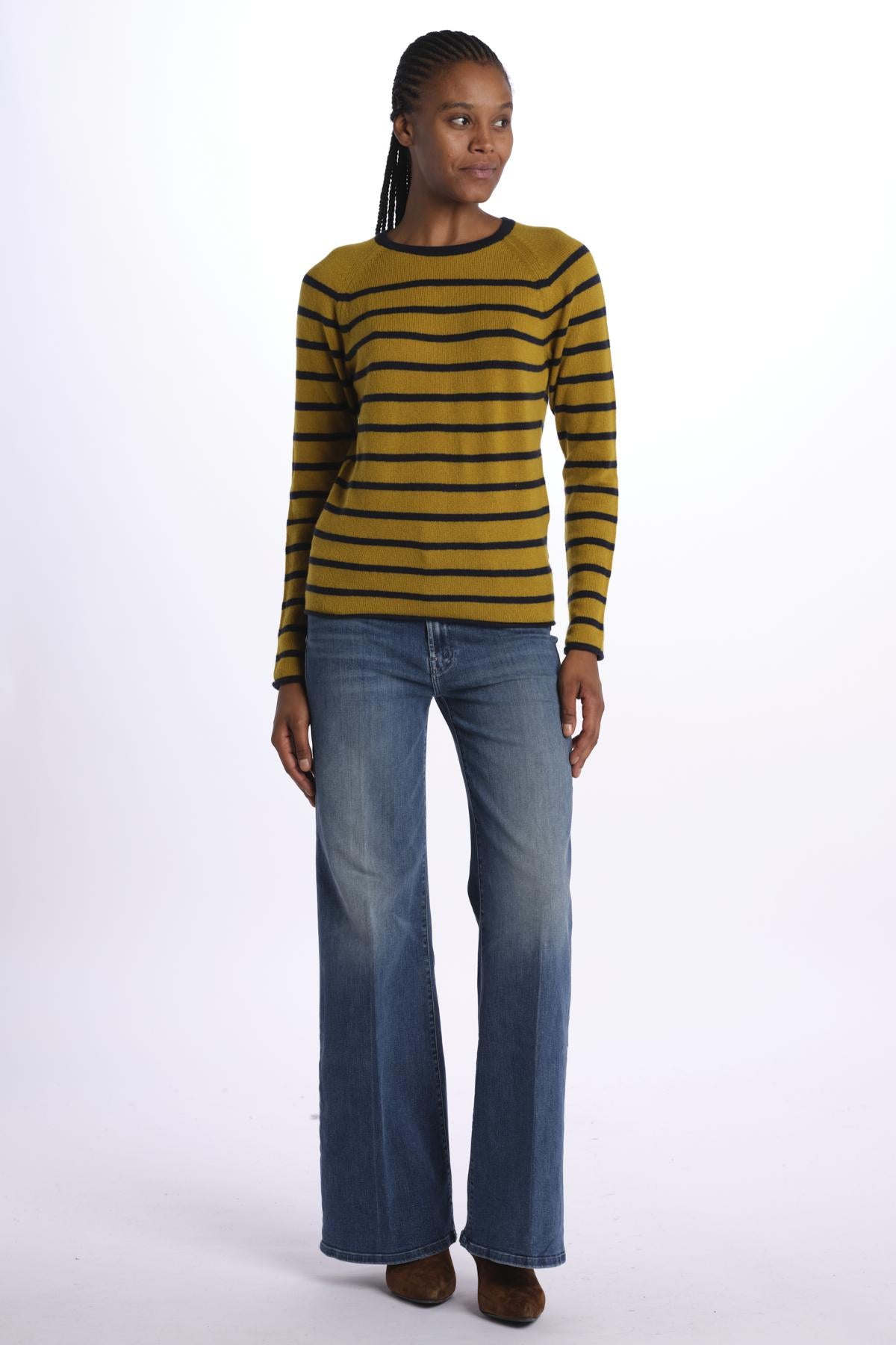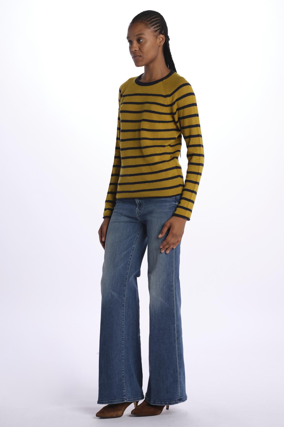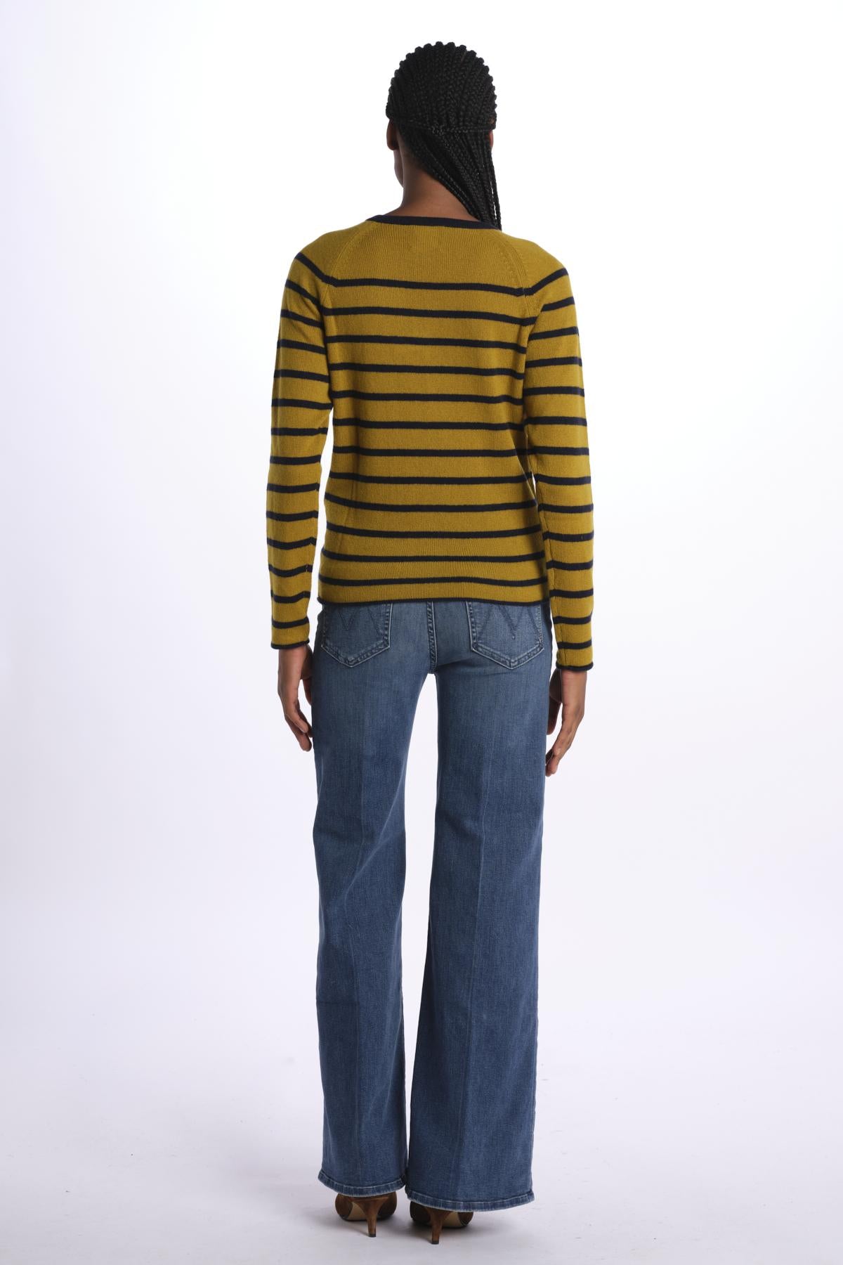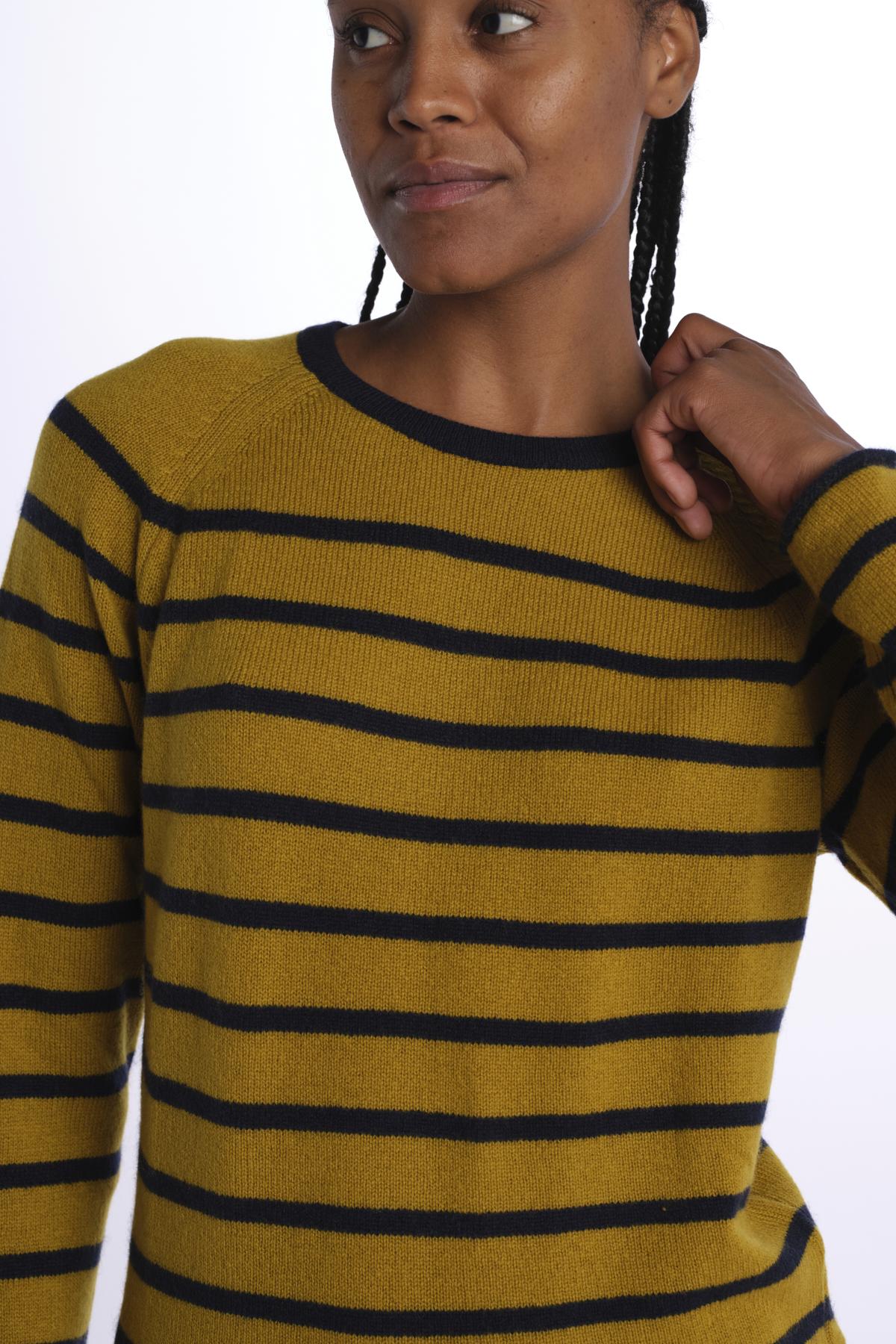 Girocollo righe piccole by milaura knit. La modella è alta 174 cm e indossa una taglia XS. Composizione: 100% cashmere.