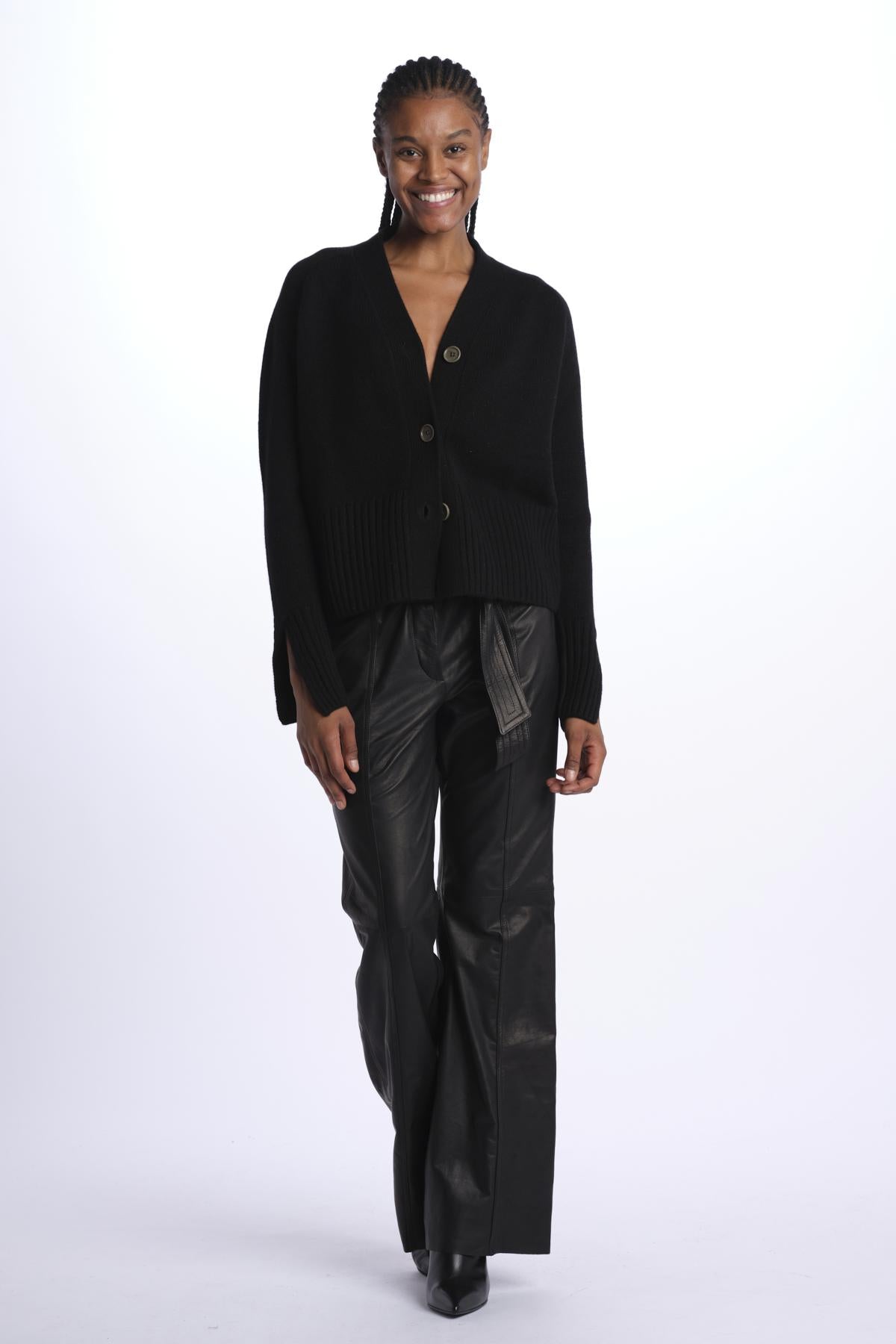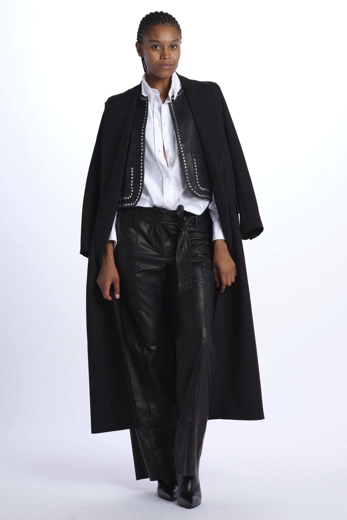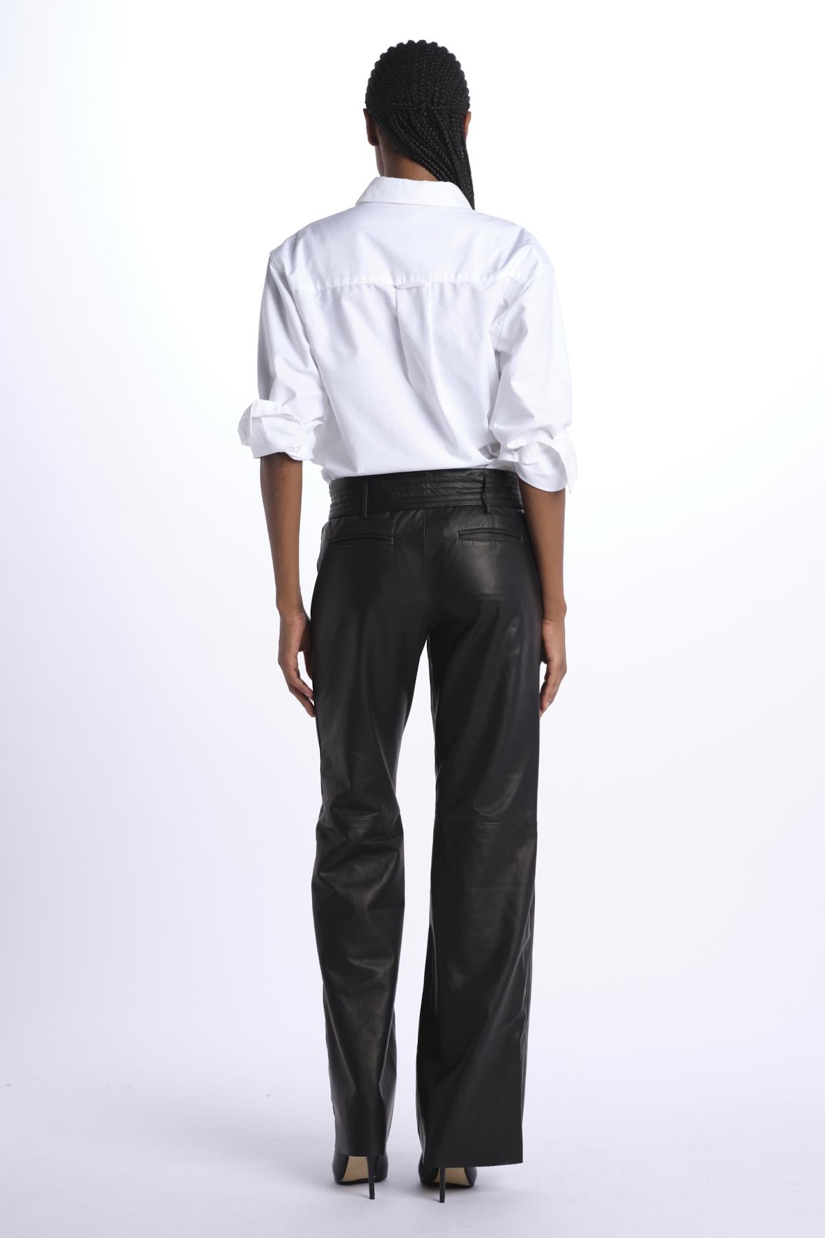 Pantalone con cintura by milaura leather. La modella è alta 174 cm e indossa una 38. Composizione: 100% pelle d'agnello.