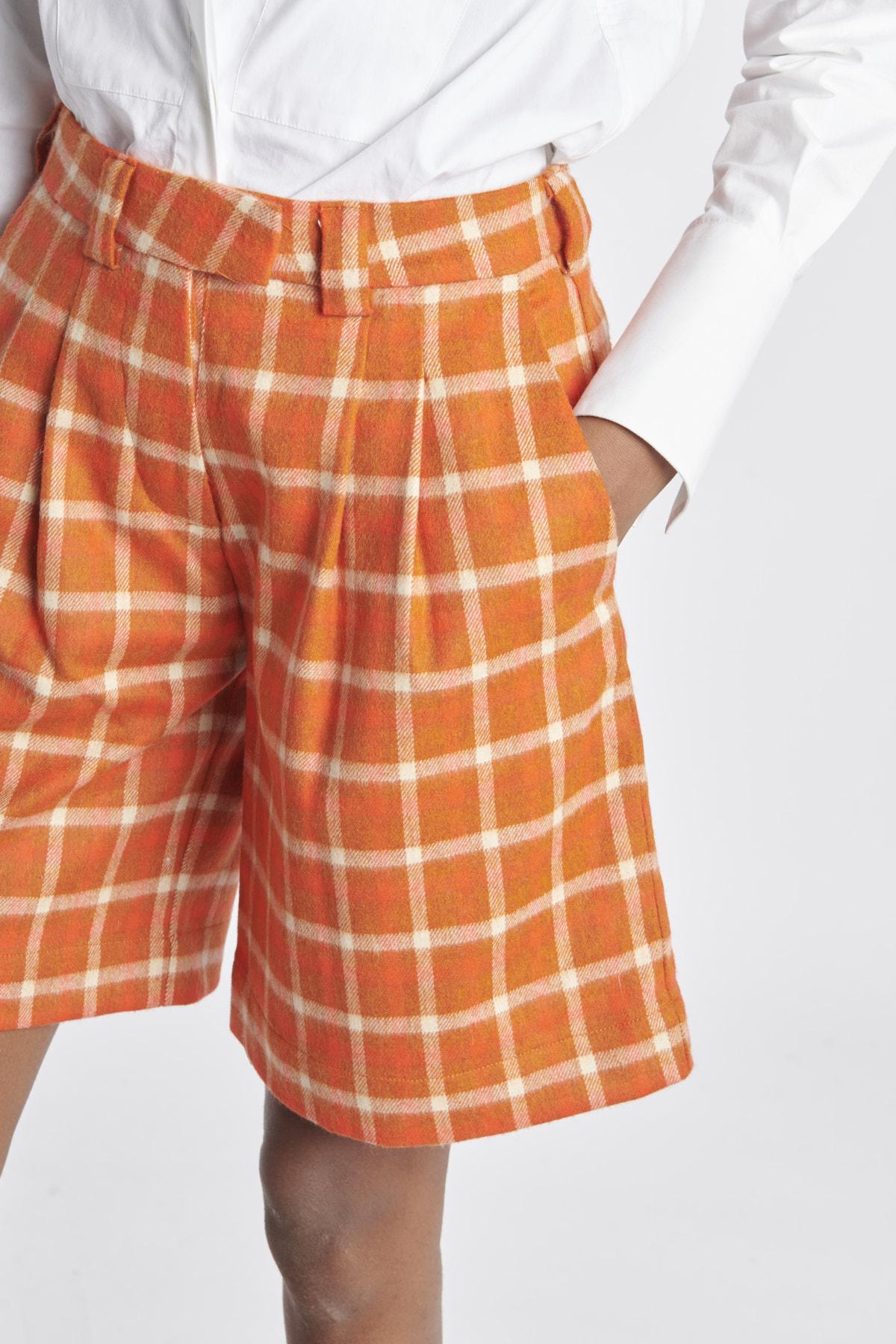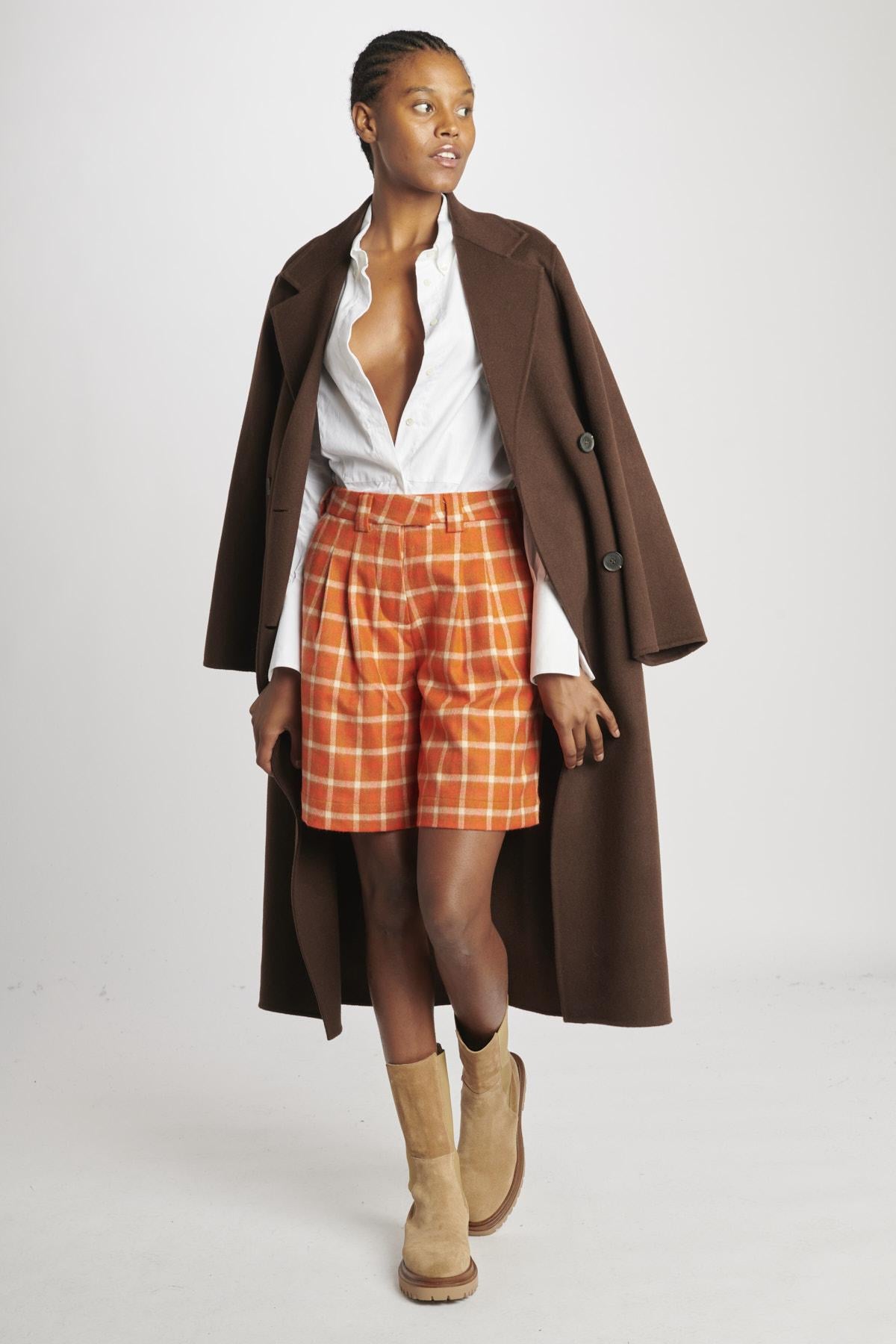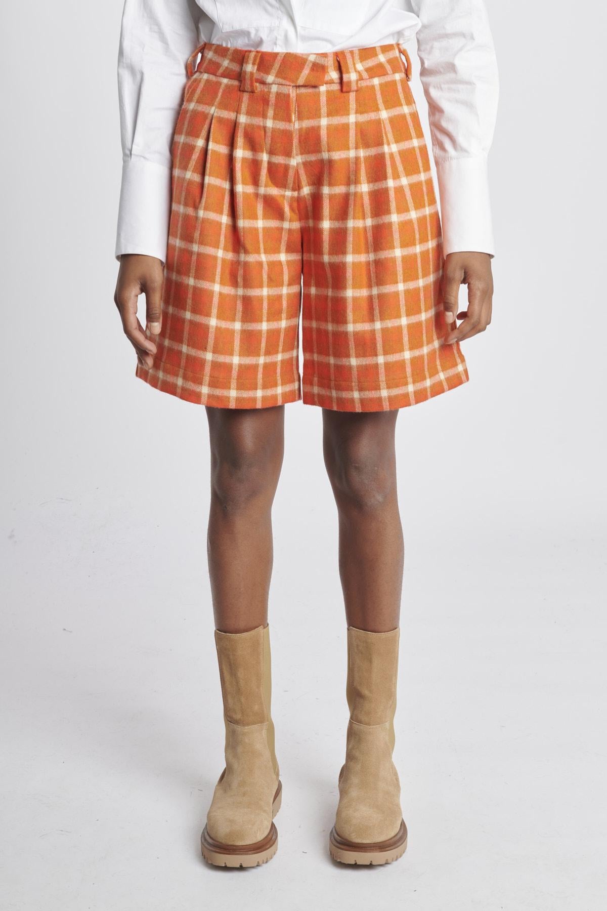 Bermuda by Milaura scozzese. La modella è alta 174 cm e indossa la taglia 38. Composizione: 100% Lana.