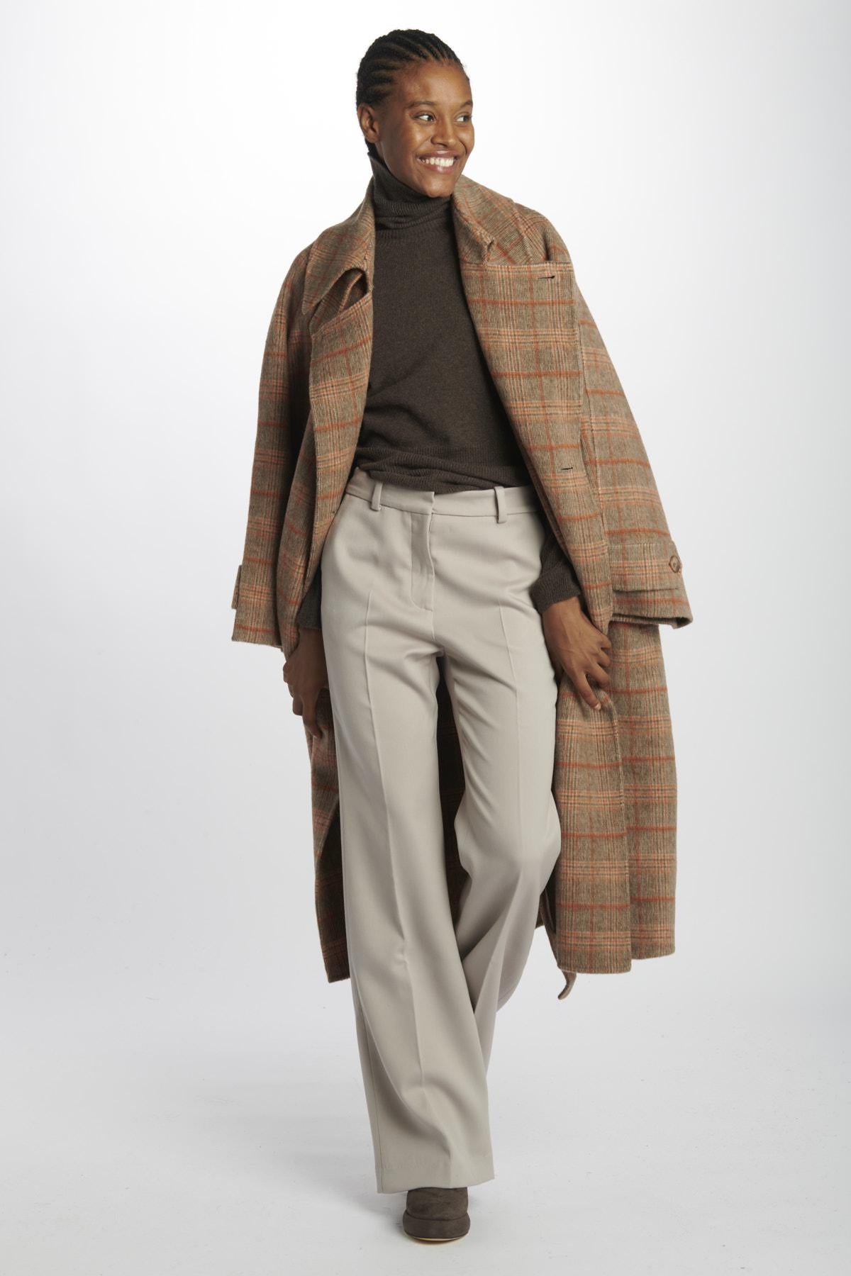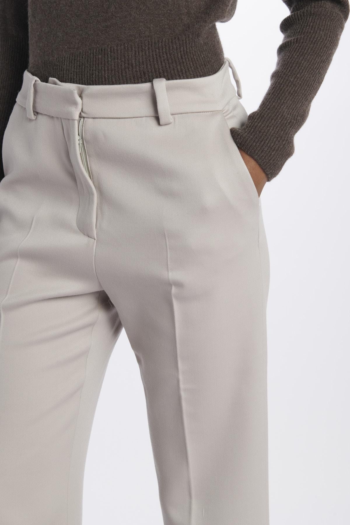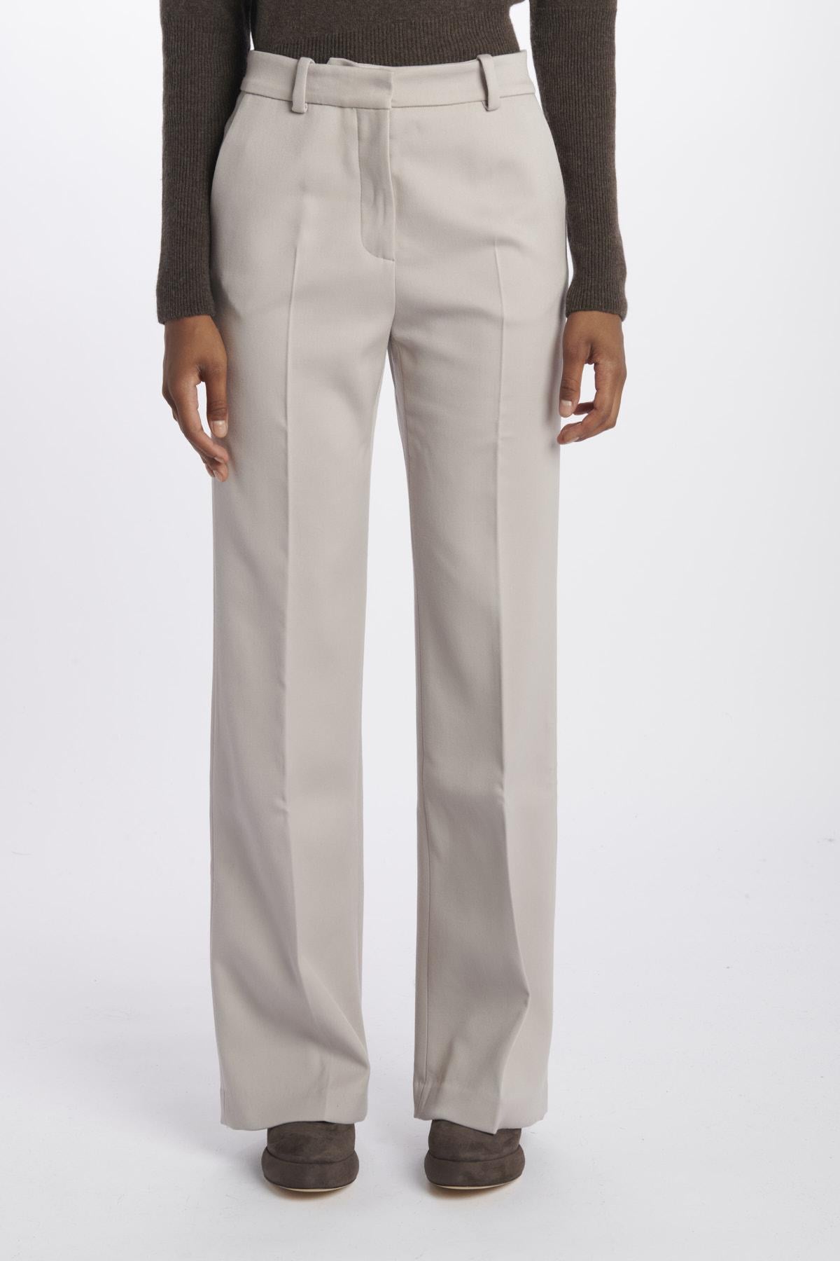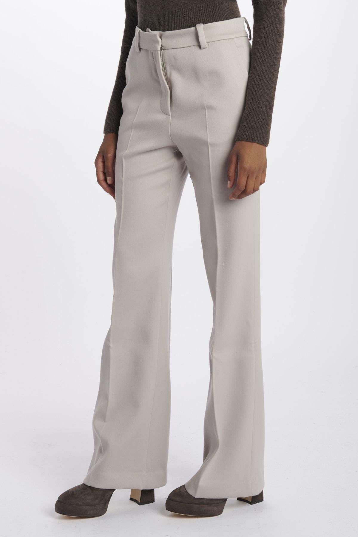 Pantaloni by Milaura rtw slim fit a zampa. La modella è alta 174 cm e indossa la taglia 38. Composizione: 98% Lana, 2% Elastane.