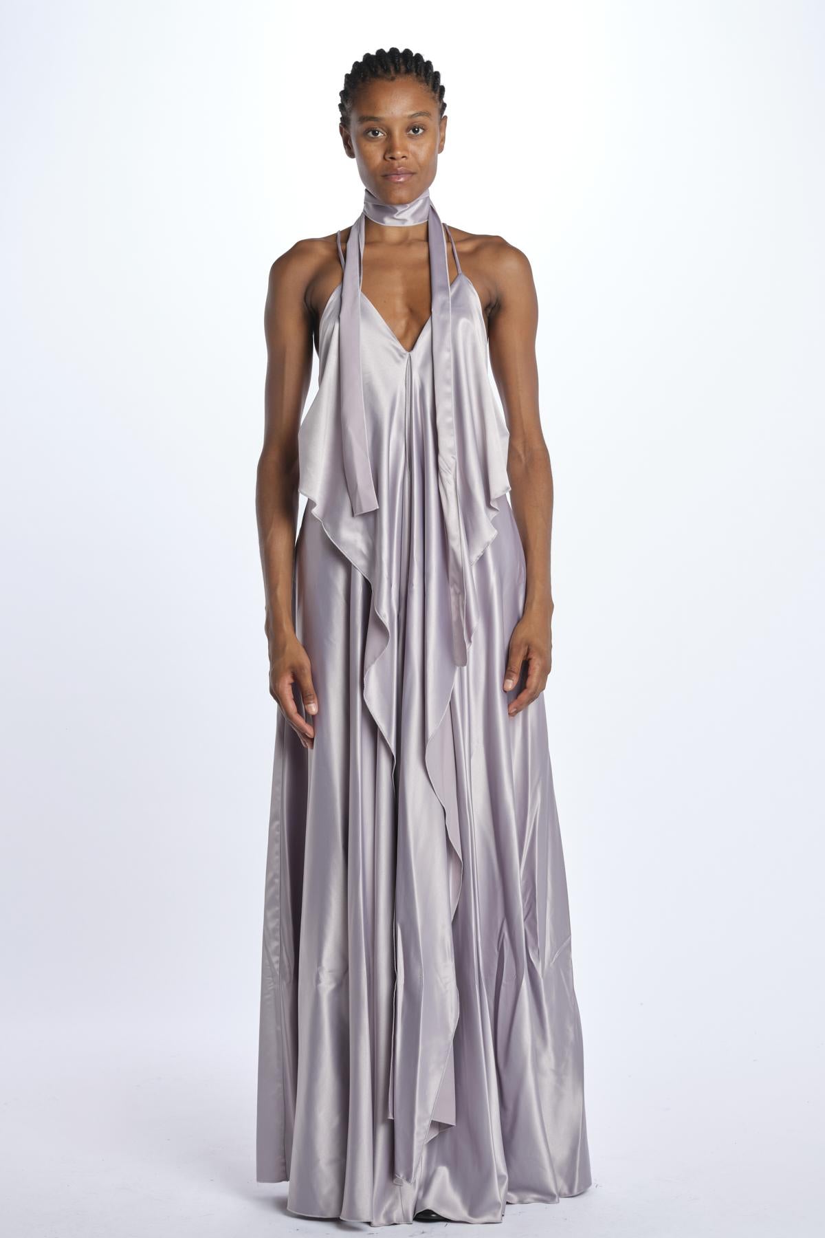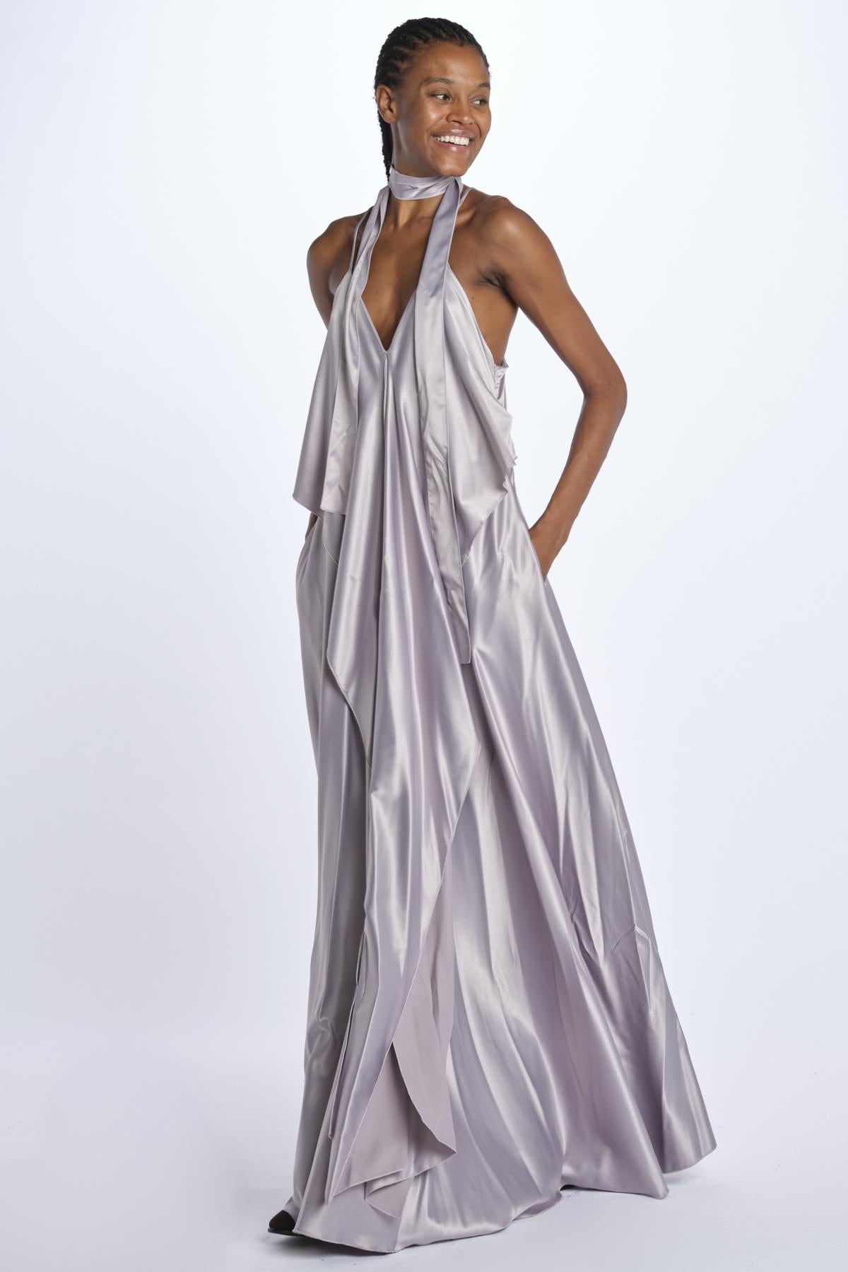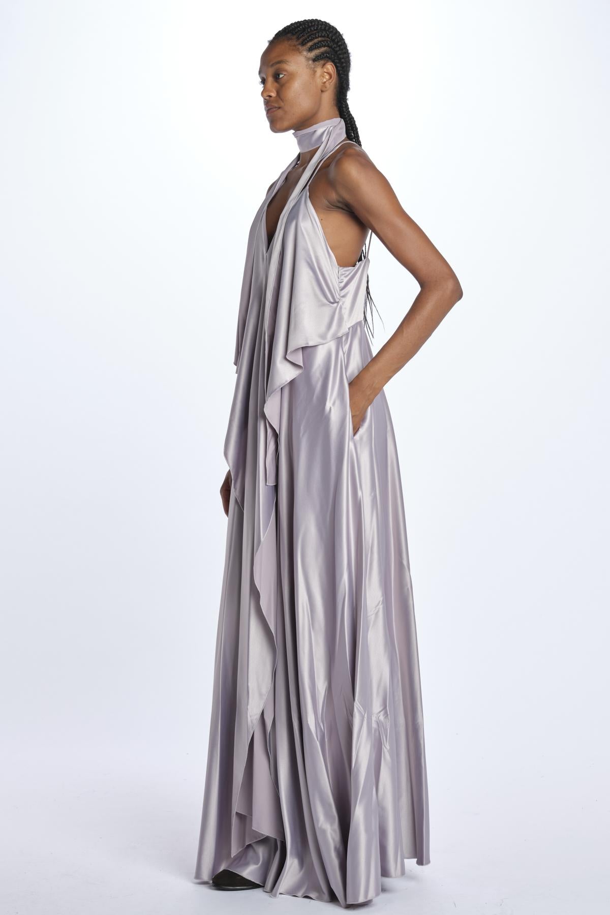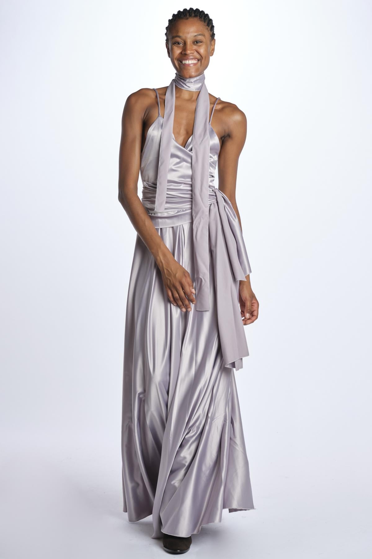 Abito by milaura rtw lungo code. La modella è alta 174 cm e indossa una 38. Composizione: 97% poliestere, 3% elastane.