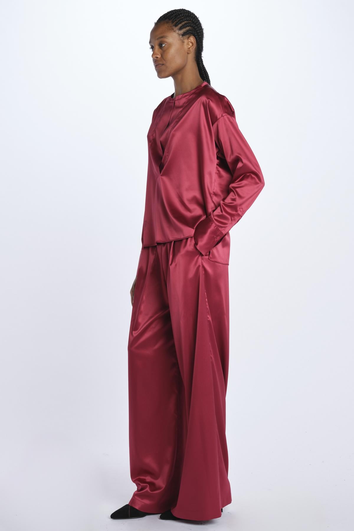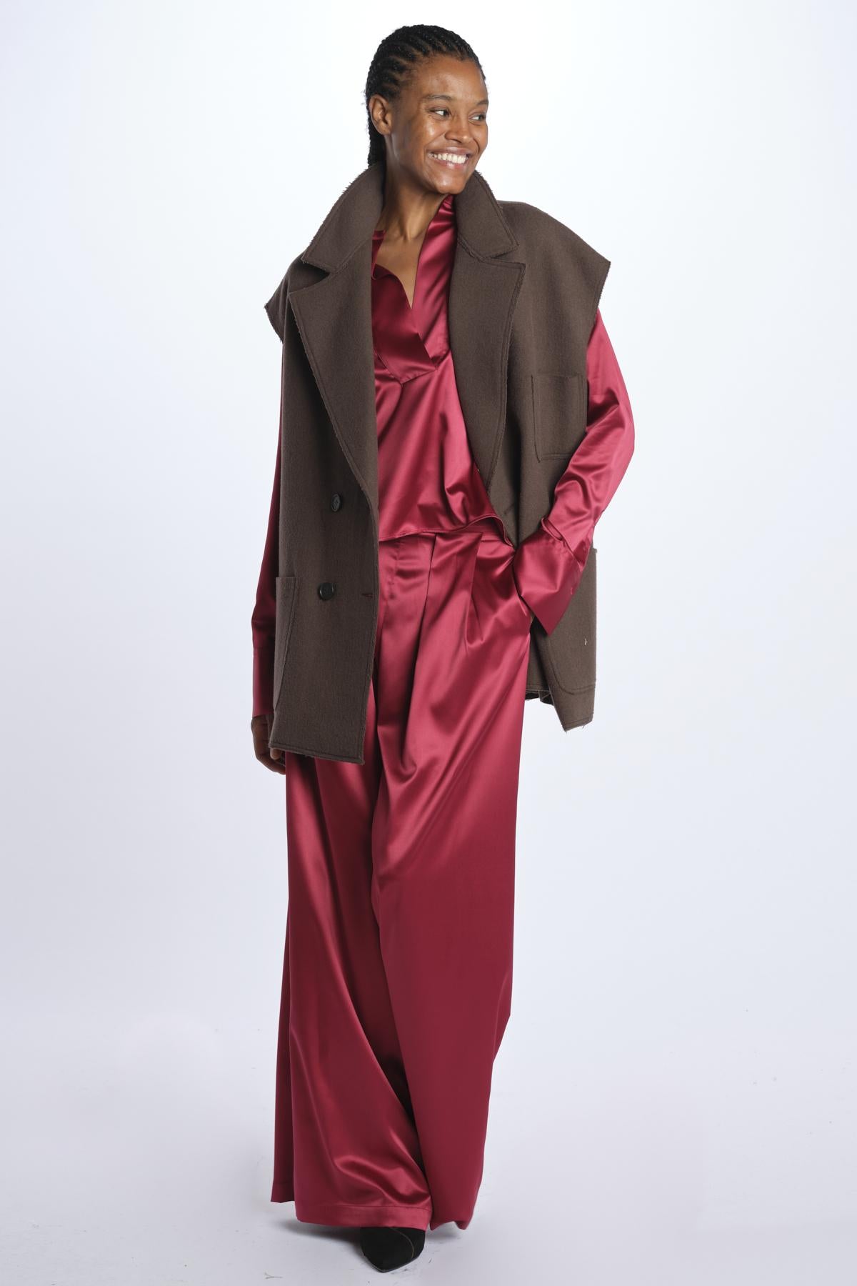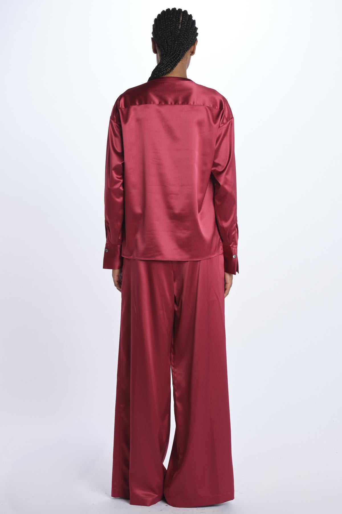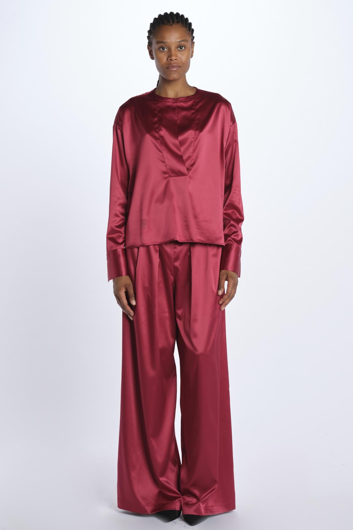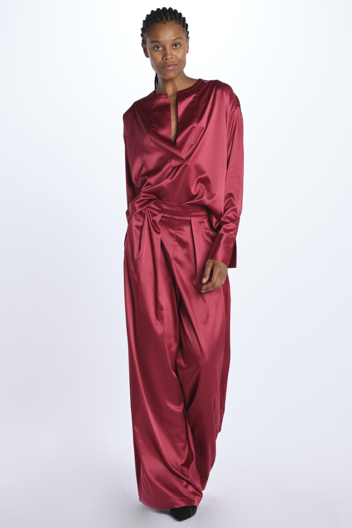 Camicia THEA by milaura rtw raso. La modella è alta 174 cm e indossa una 38. Composizione: 97% poliestere, 3% elastane.