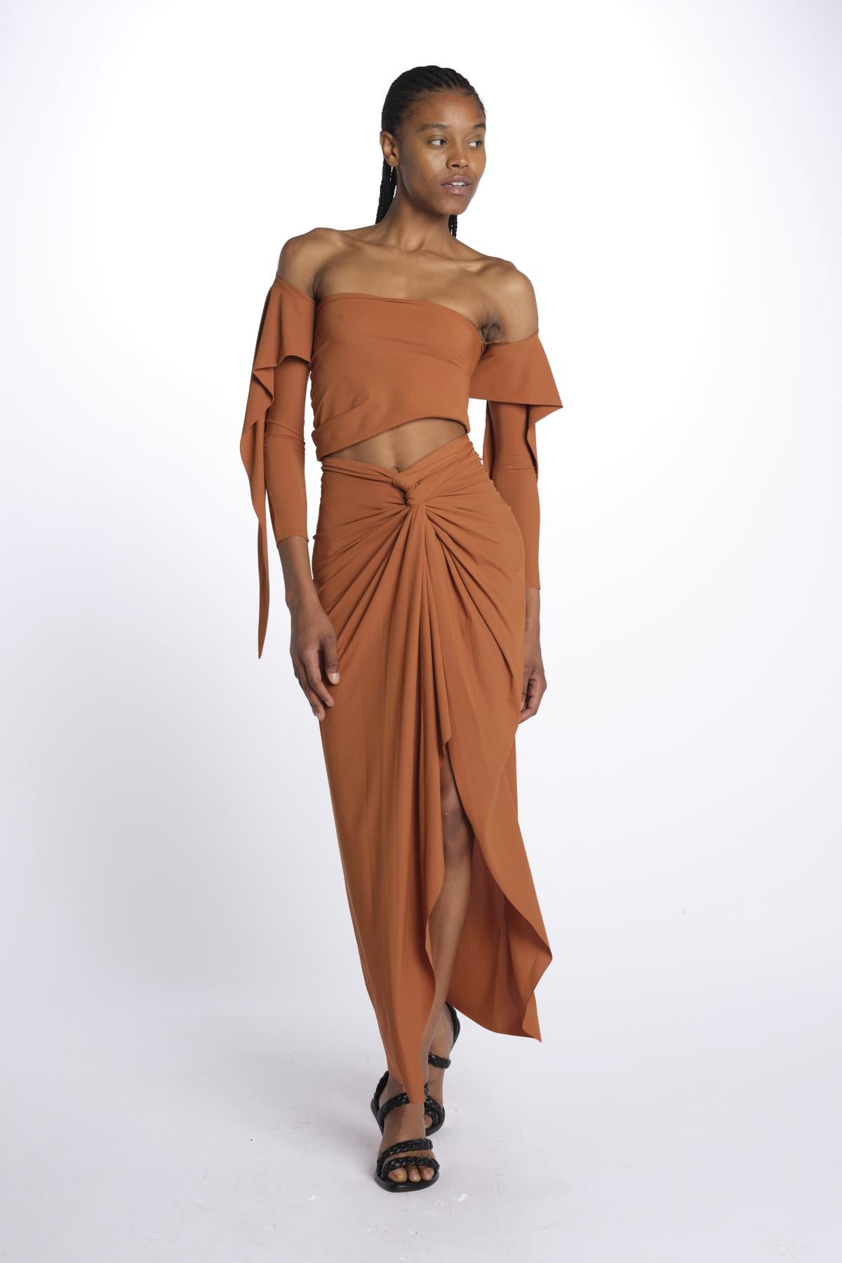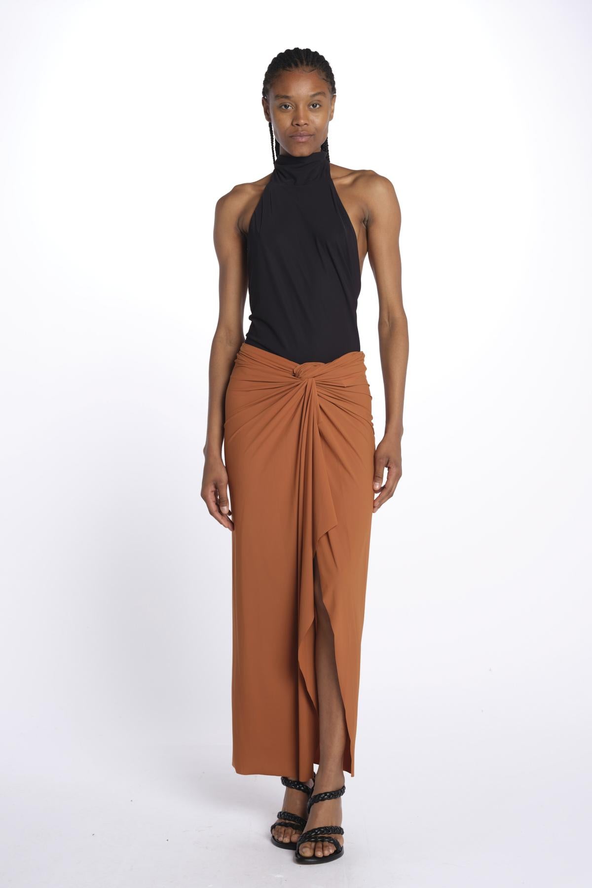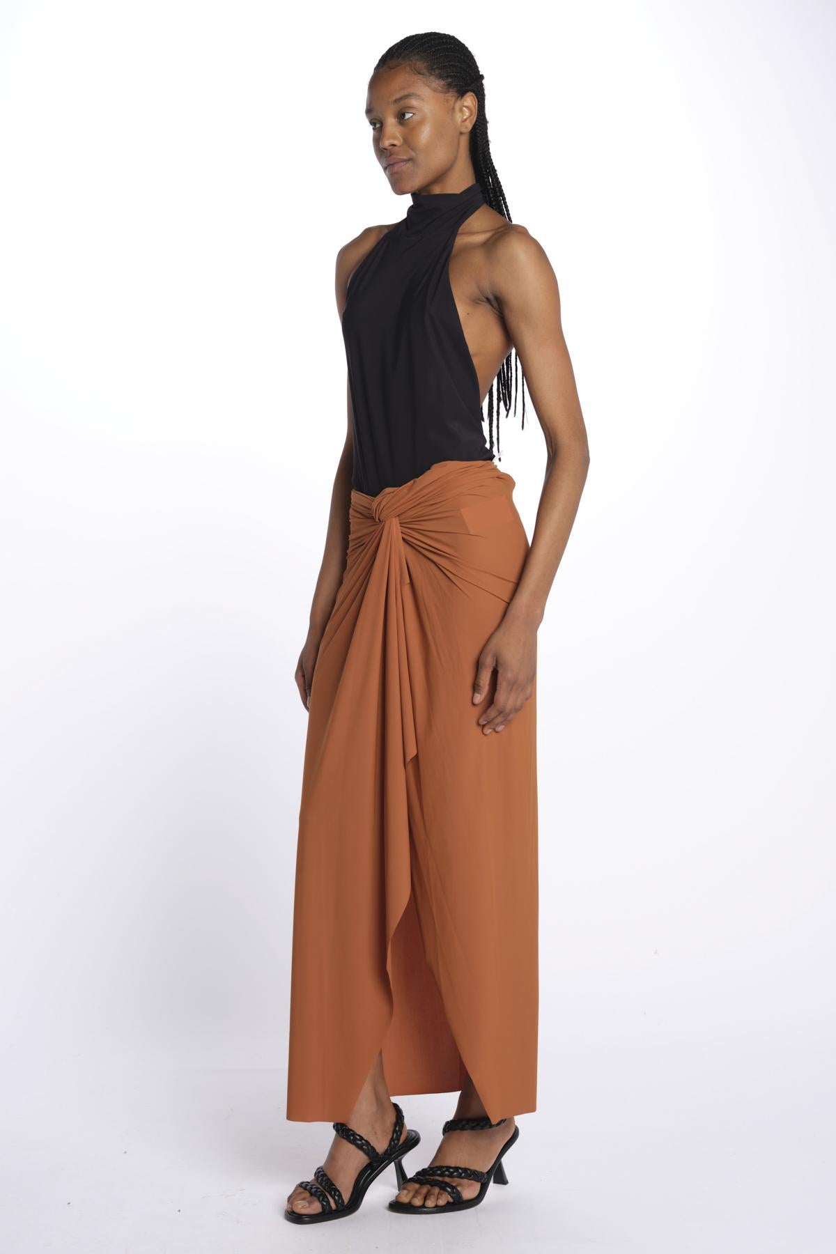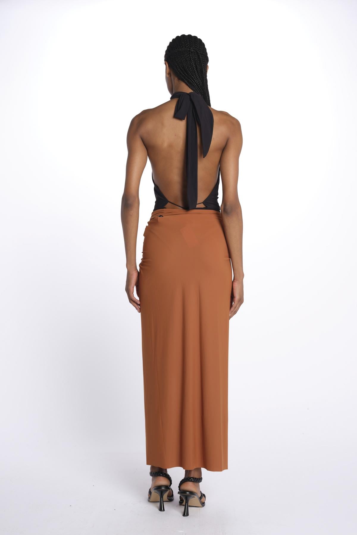 MILLA gonna lunga con spacco profondo by amazuìn. la modella è alta 174 cm e indossa ua taglia unica. Composizione: 100% nylon.