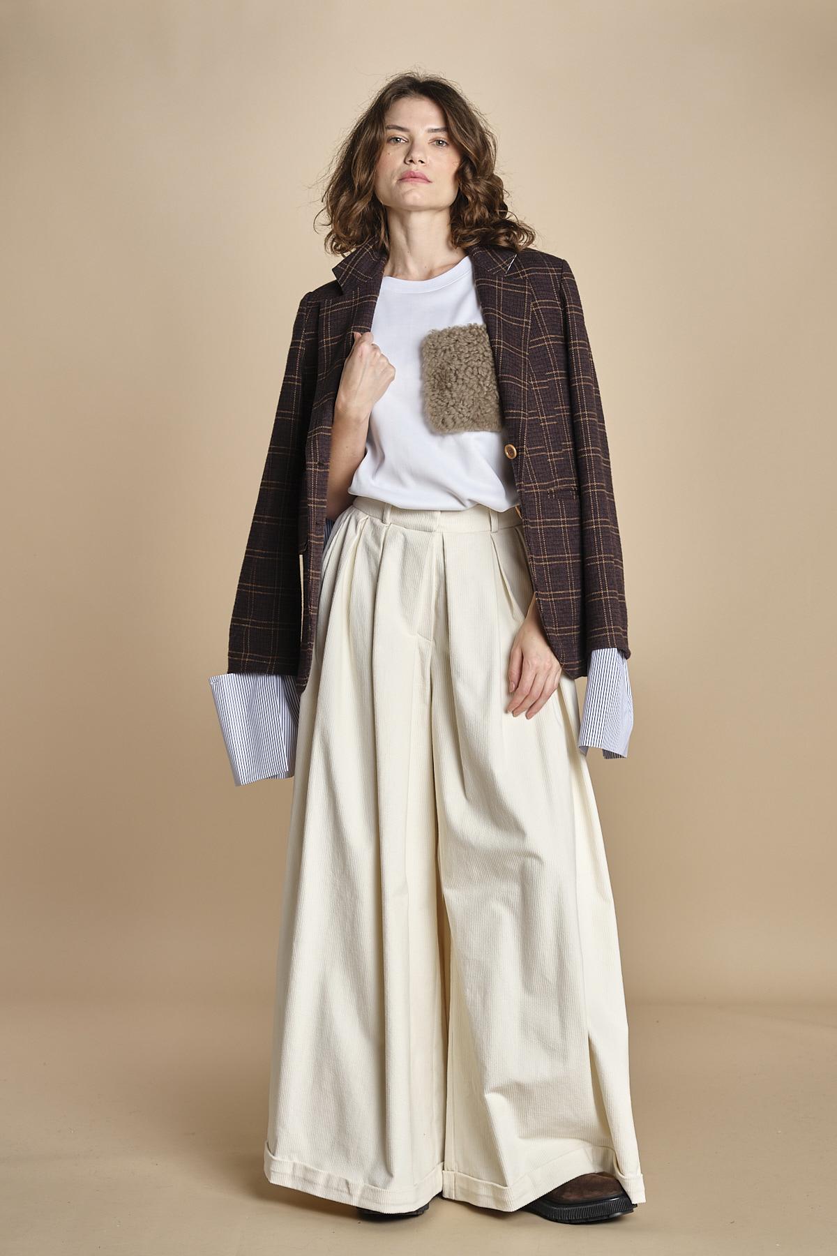 pantalone over in velluto. La modella è alta 176 cm e indossa una taglia S. 99% COTONE 1% ELASTAN