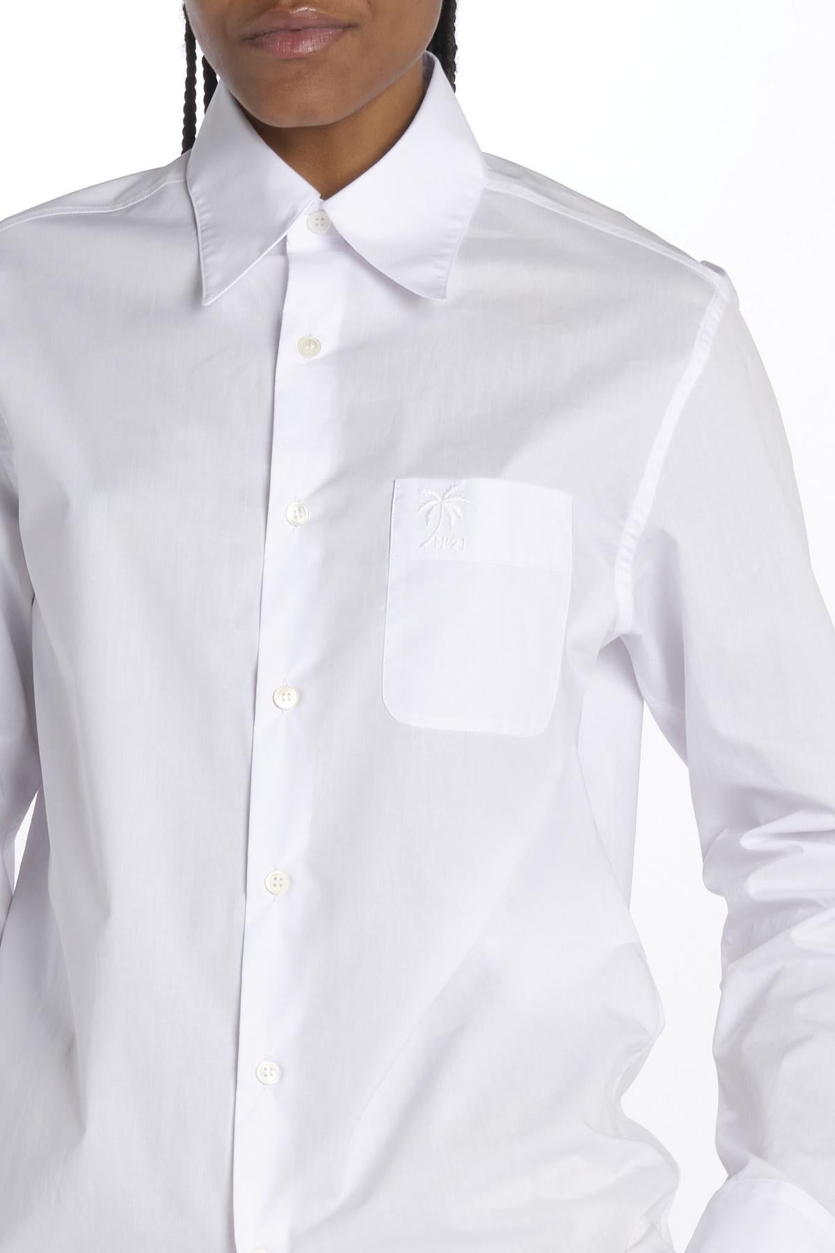 Camicia con palma by N21. La modella è alta 174 cm e indossa una XS. Composizione: 100% cotone.