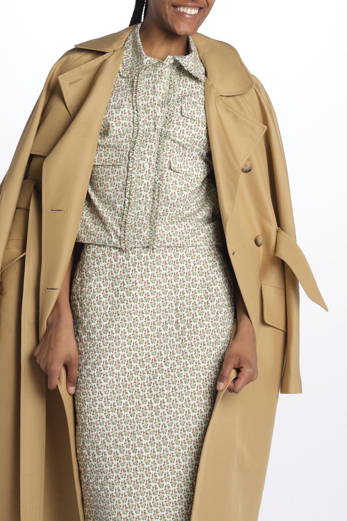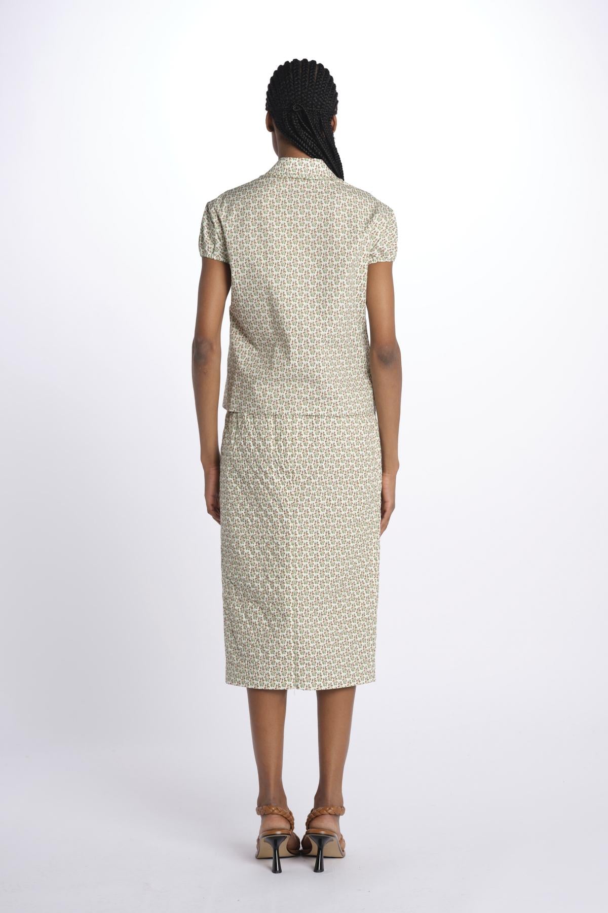 Camicia m/c colletto stampa liberty by N21. La modella è alta 174 cm e indossa una 40. Composizione: 55% cotone, 45% viscosa.
