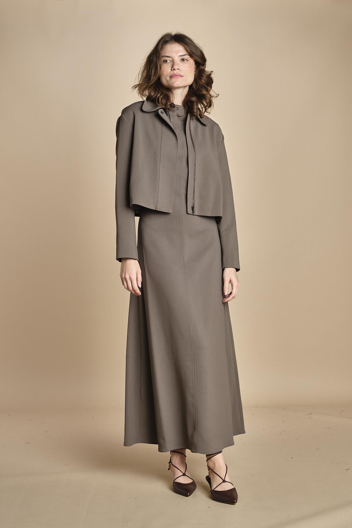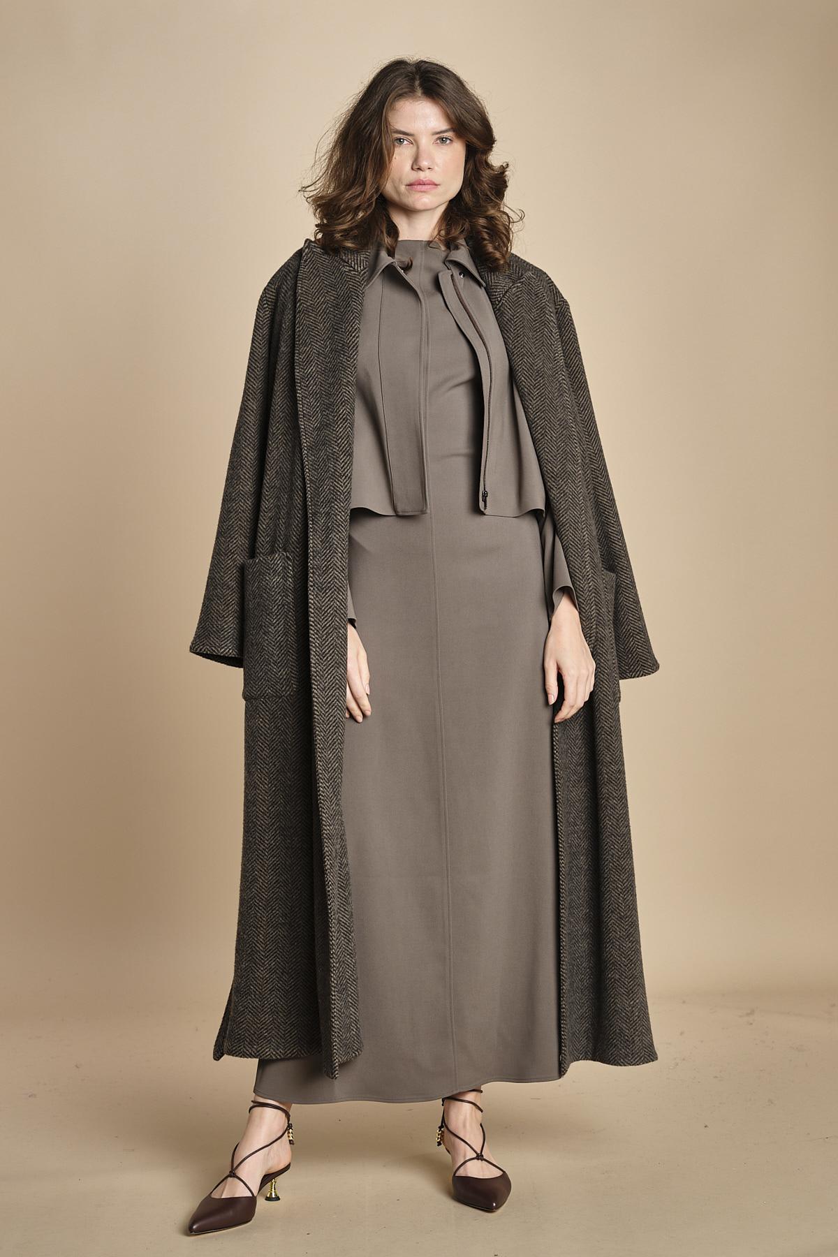 abito lungo in cadyLa modella è alta 176 cm e indossa una taglia S.76% VISCOSA 20% ACETATO 4% ELASTANE