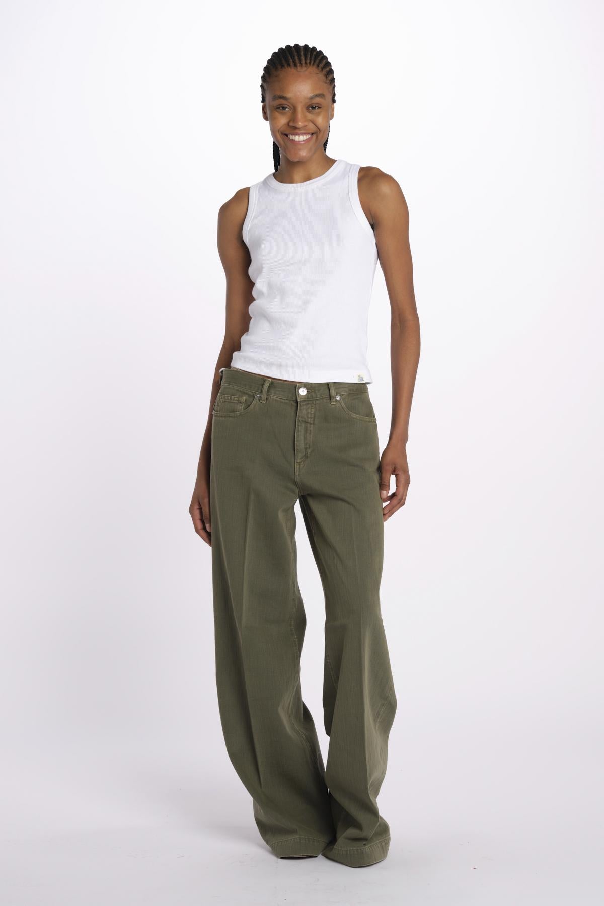 Denim NADIA colorato by nine in the morning. La modella è alta 174 cm e indossa una taglia 25 (IT 40). Composizione: 100% cotone.
