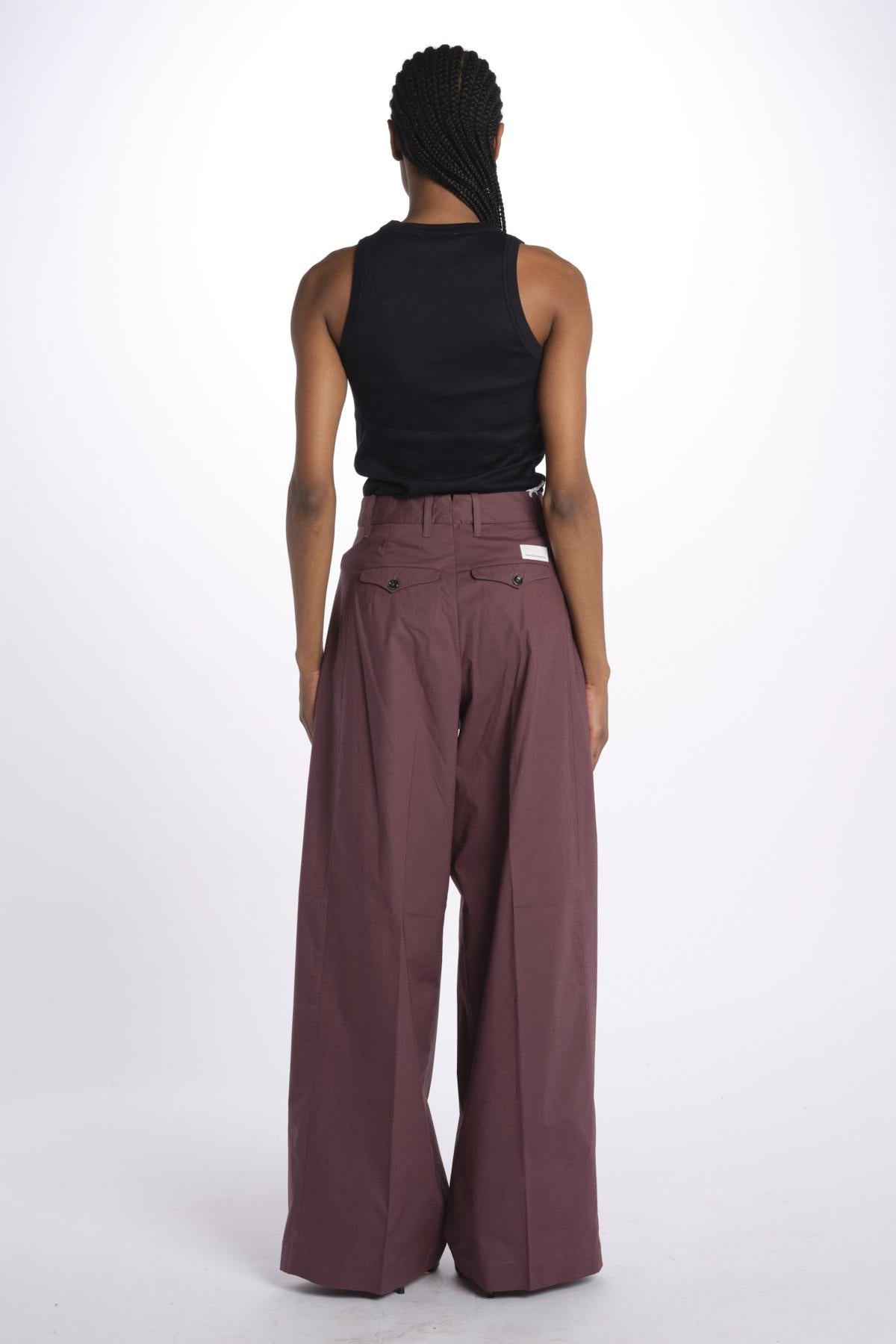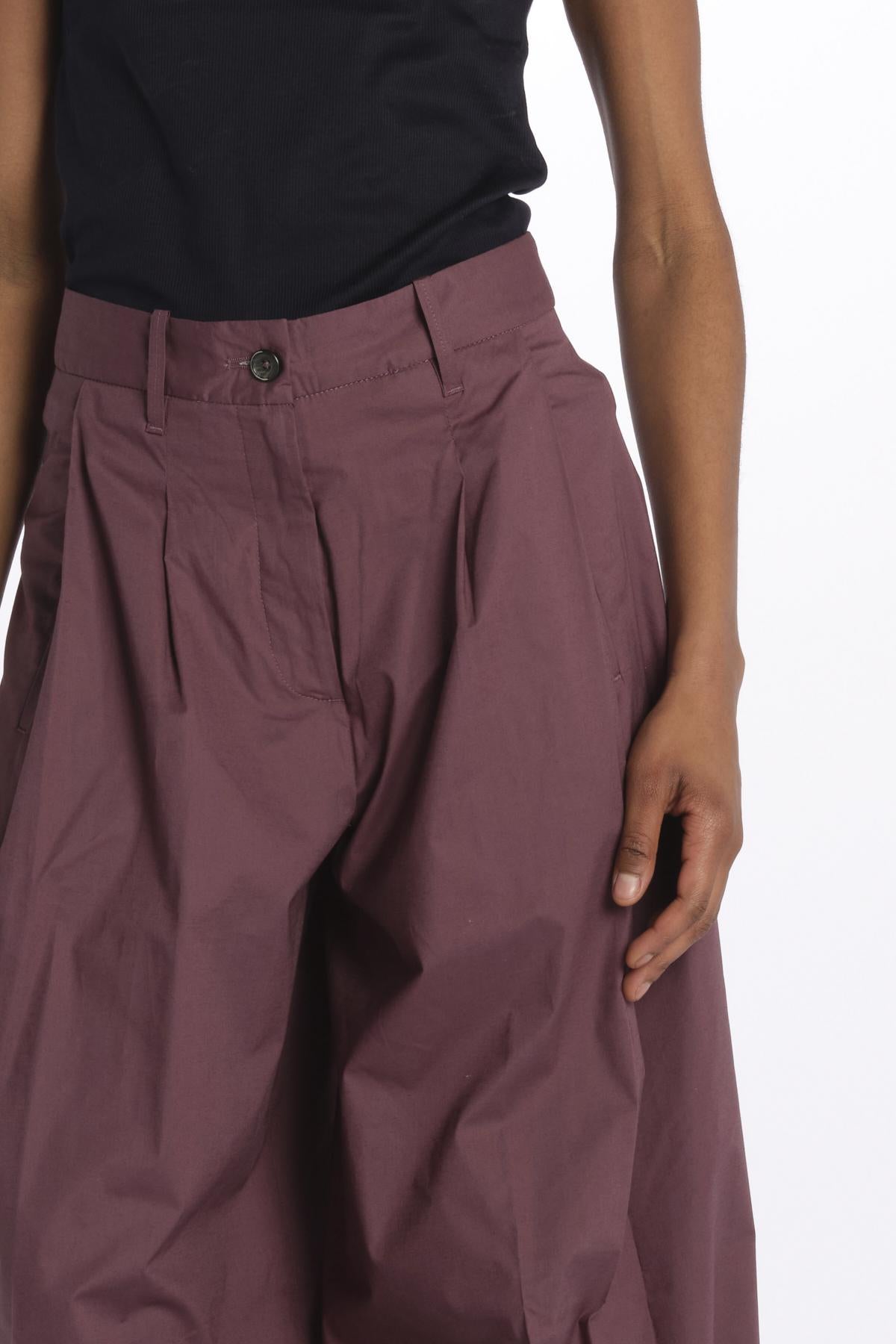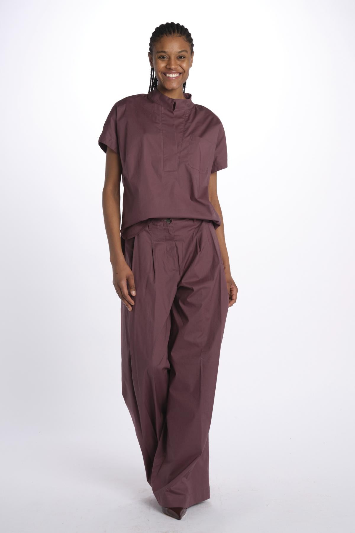 Pant PETRA 2 pinces popeline by nine in the morning. La modella è alta 174 cm e indossa una taglia 25. Composizione: 92% cotone, 5% elastane, 3% seta.