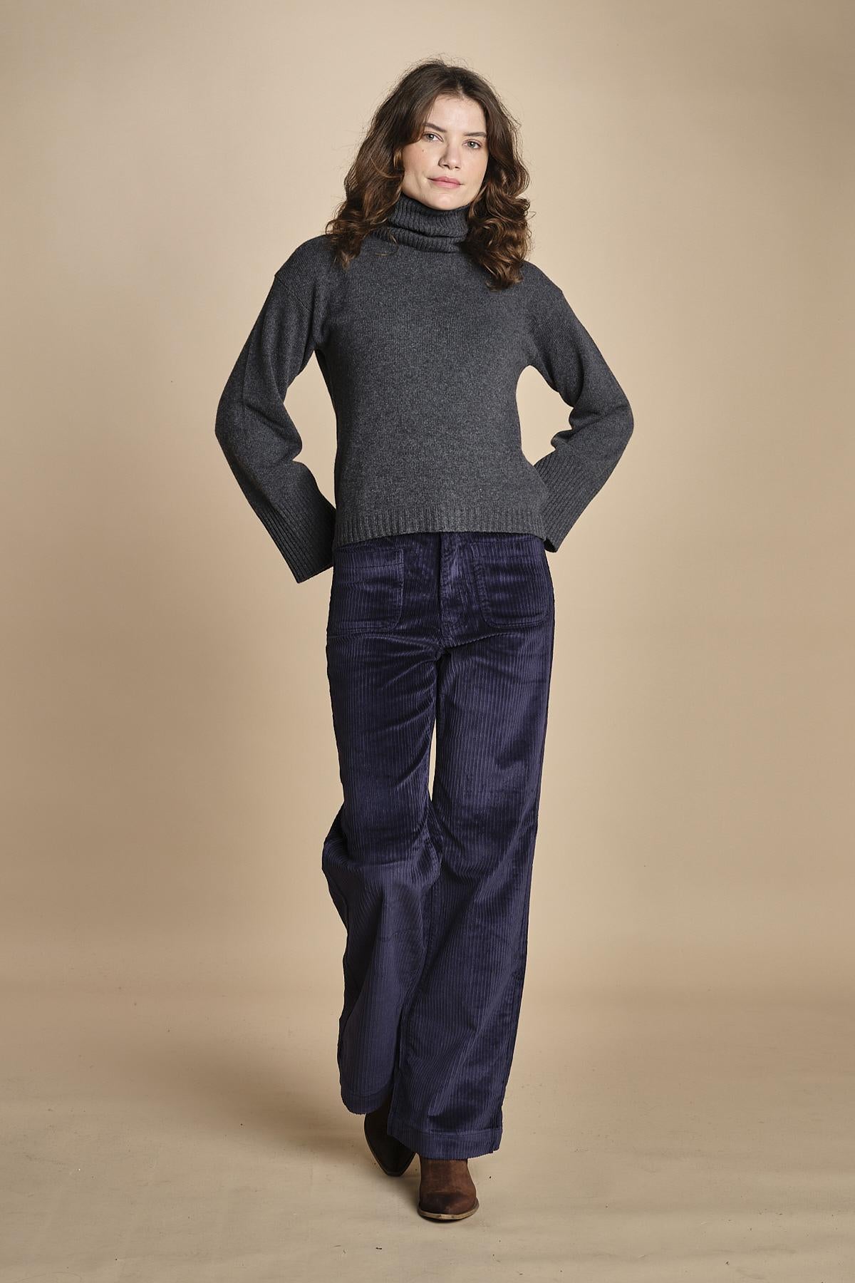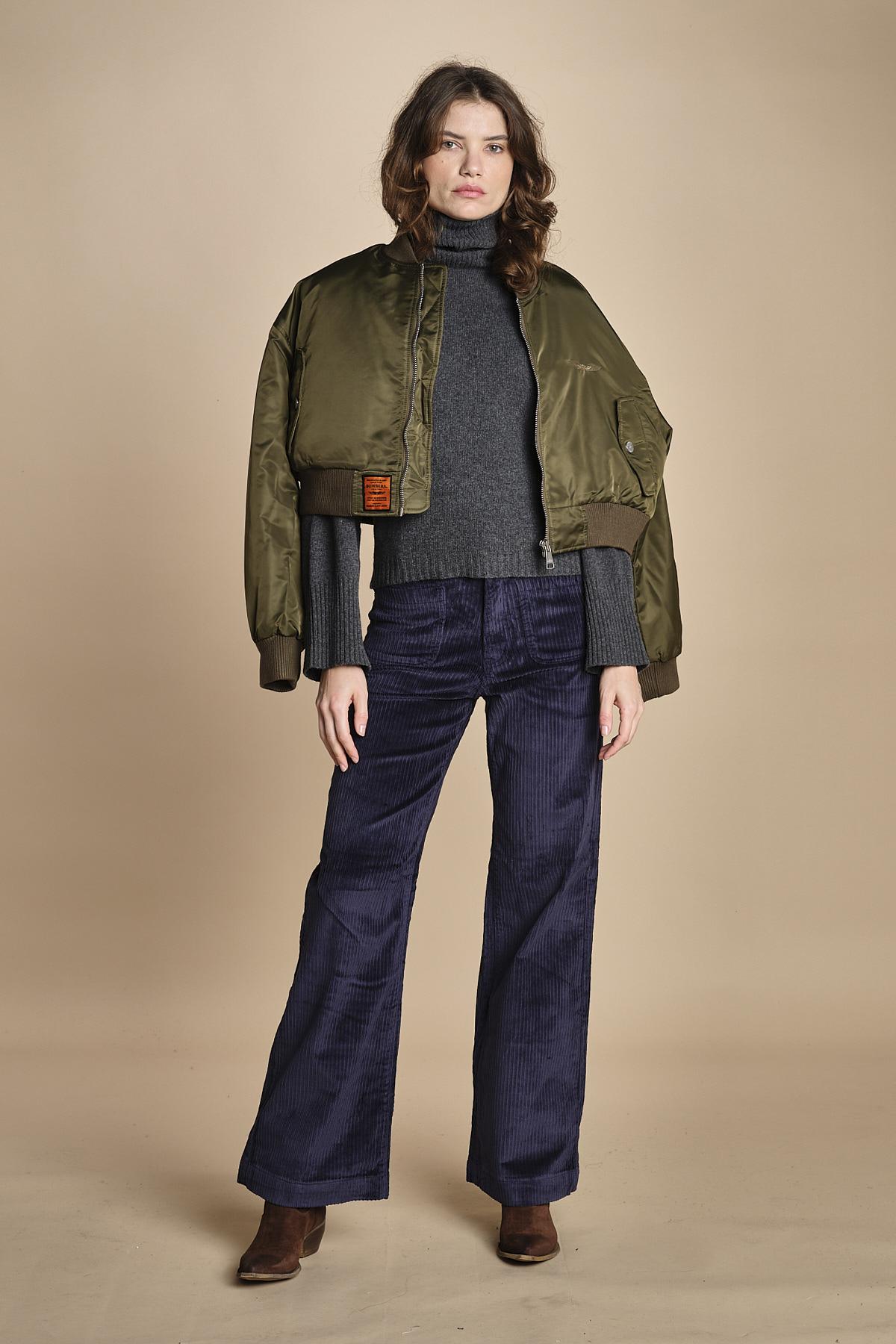 pantalone a zampa con taschine La modella è alta 176 cm e indossa una taglia S. 98% cotone 2% poliesere