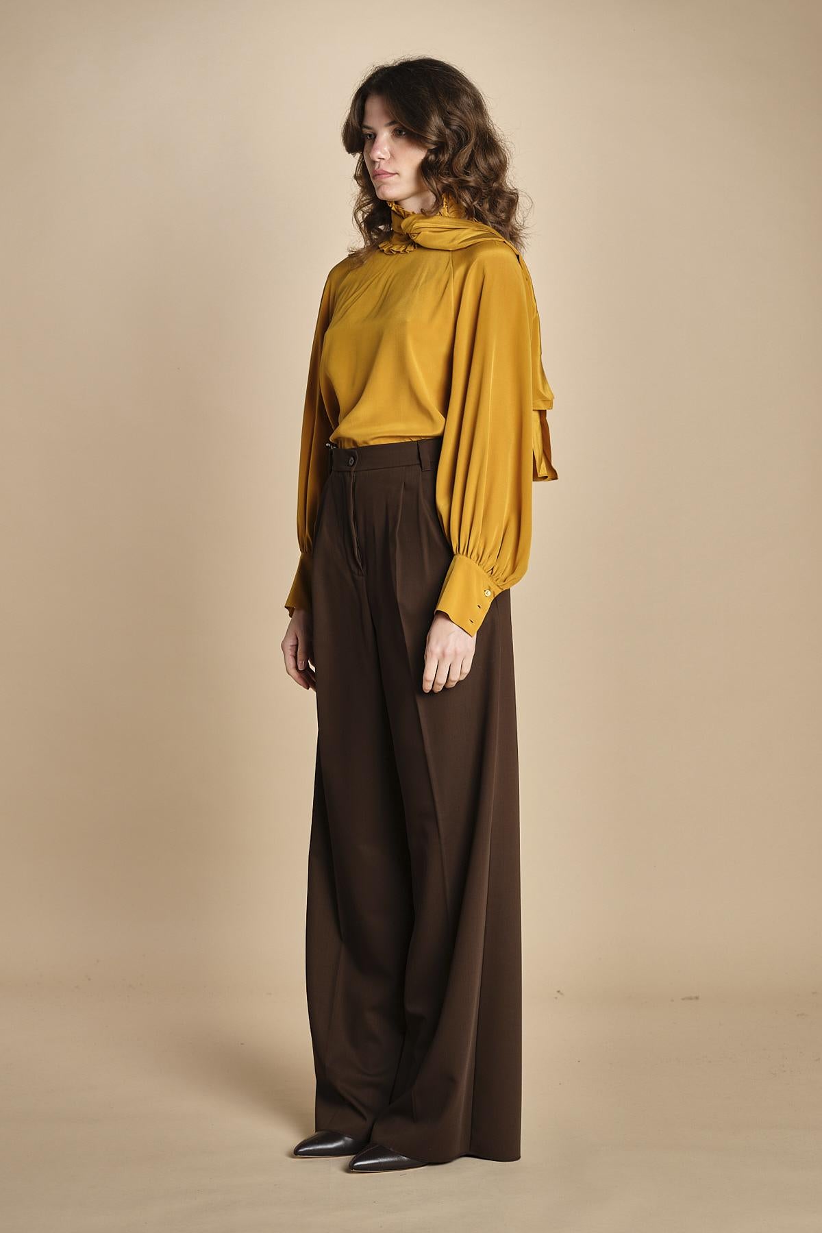pantalone con pinces levantina. La modella è alta 176 cm e indossa una taglia 38. 100% lana