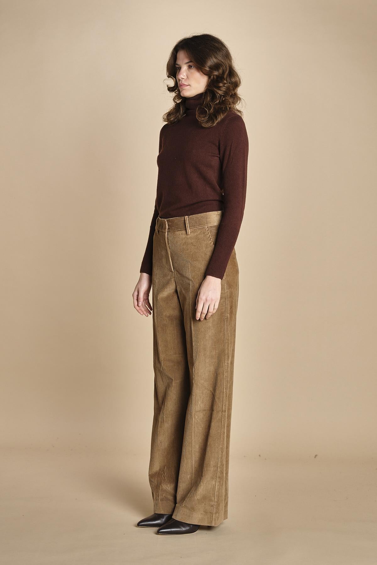pantalone diritto in velluto rocciatore. La modella è alta 176 cm e indossa una taglia 40. 100% cotone