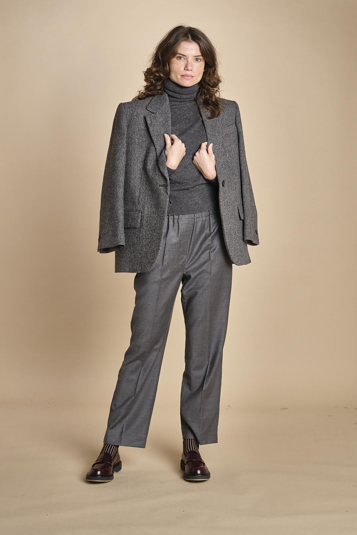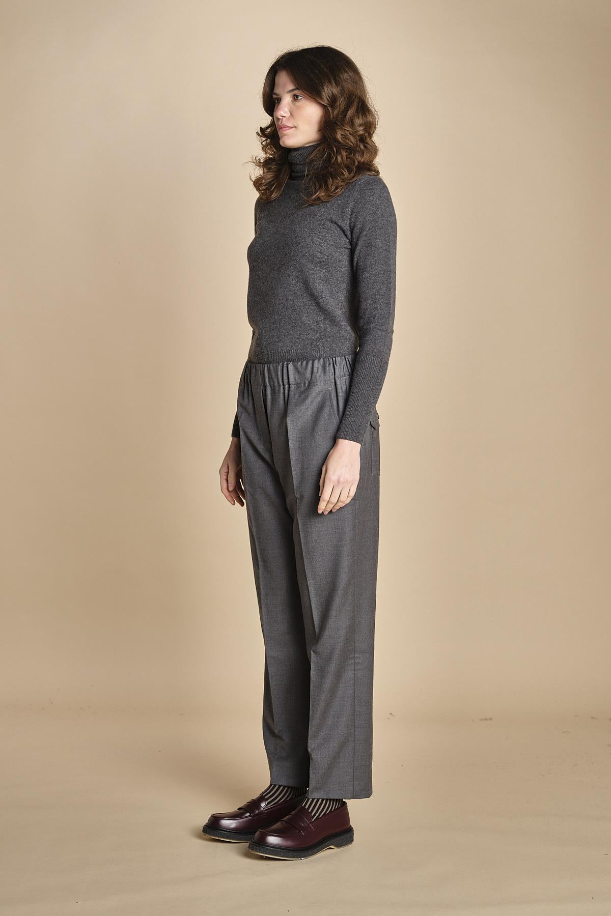 pantalone stretto con elastico. La modella è alta 176 cm e indossa una taglia 40. 99% lana 1% elastane