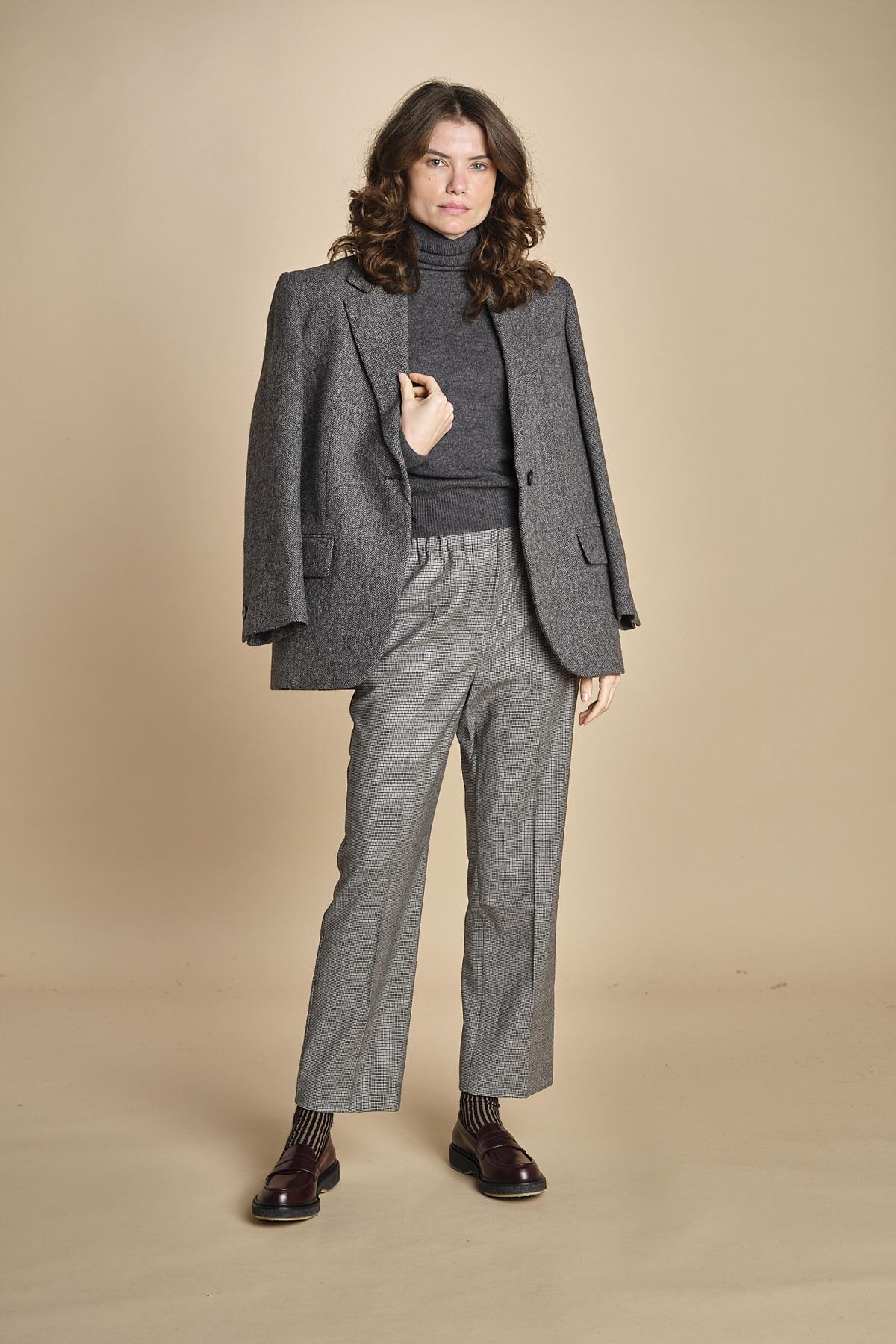 pantalone stretto con elastico. La modella è alta 176 cm e indossa una taglia 40. 99% lana 1% elastane