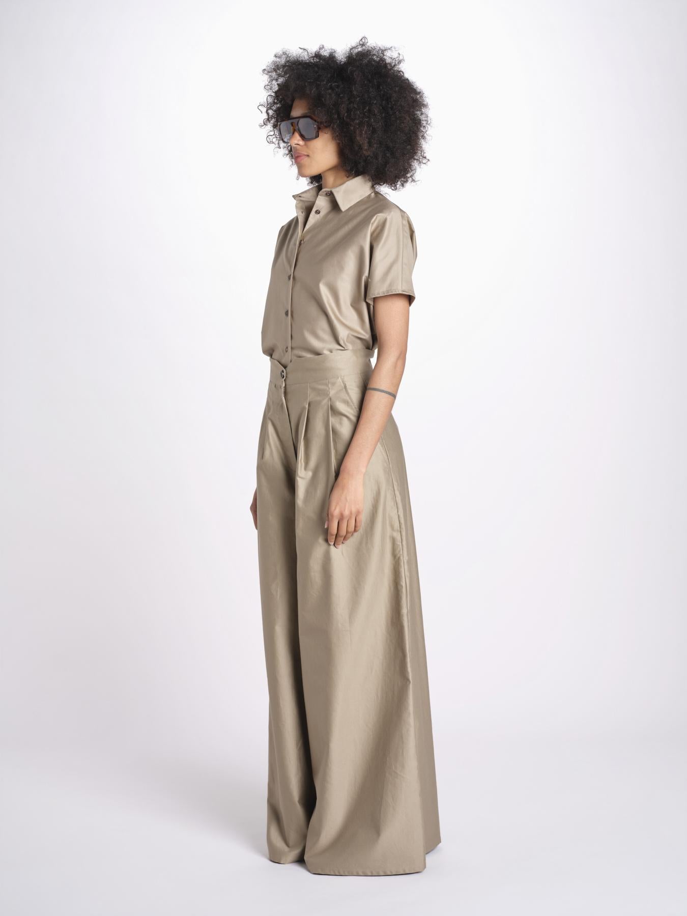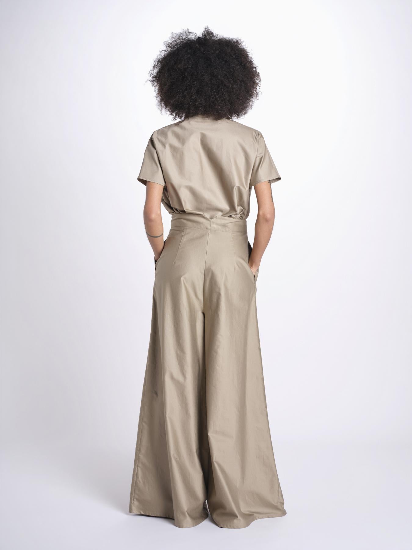 Pantalone rasatello. La modella è alta 1.70cm e indossa una taglia 40. Composizione: 100% cotone.