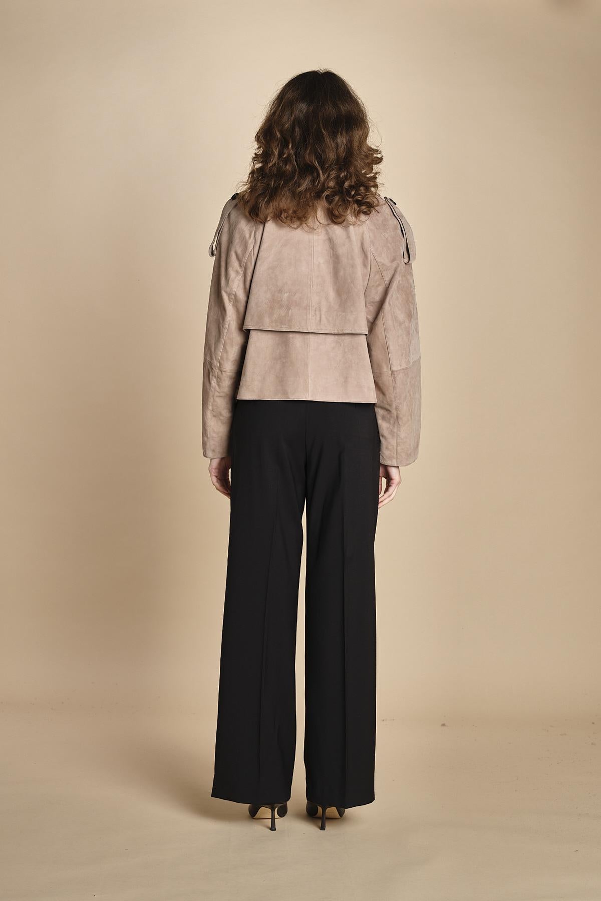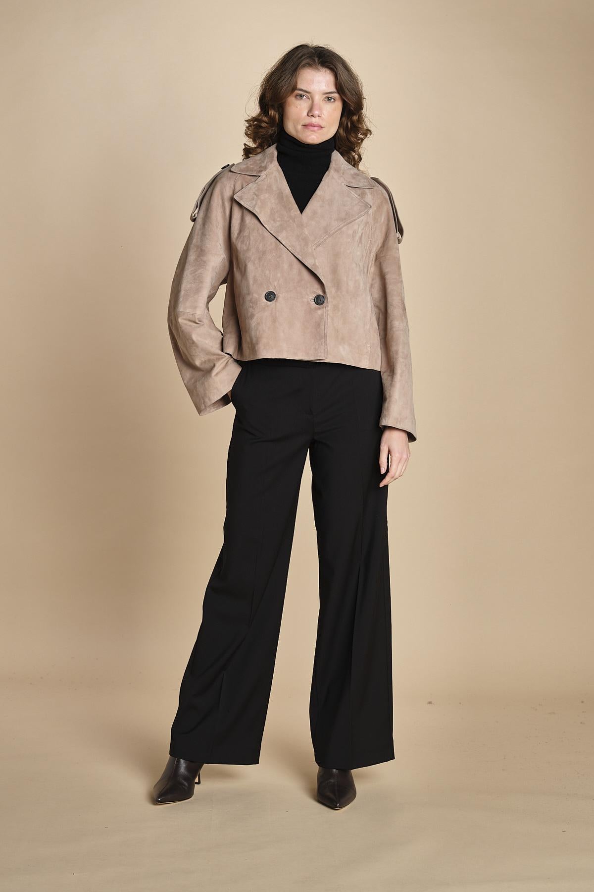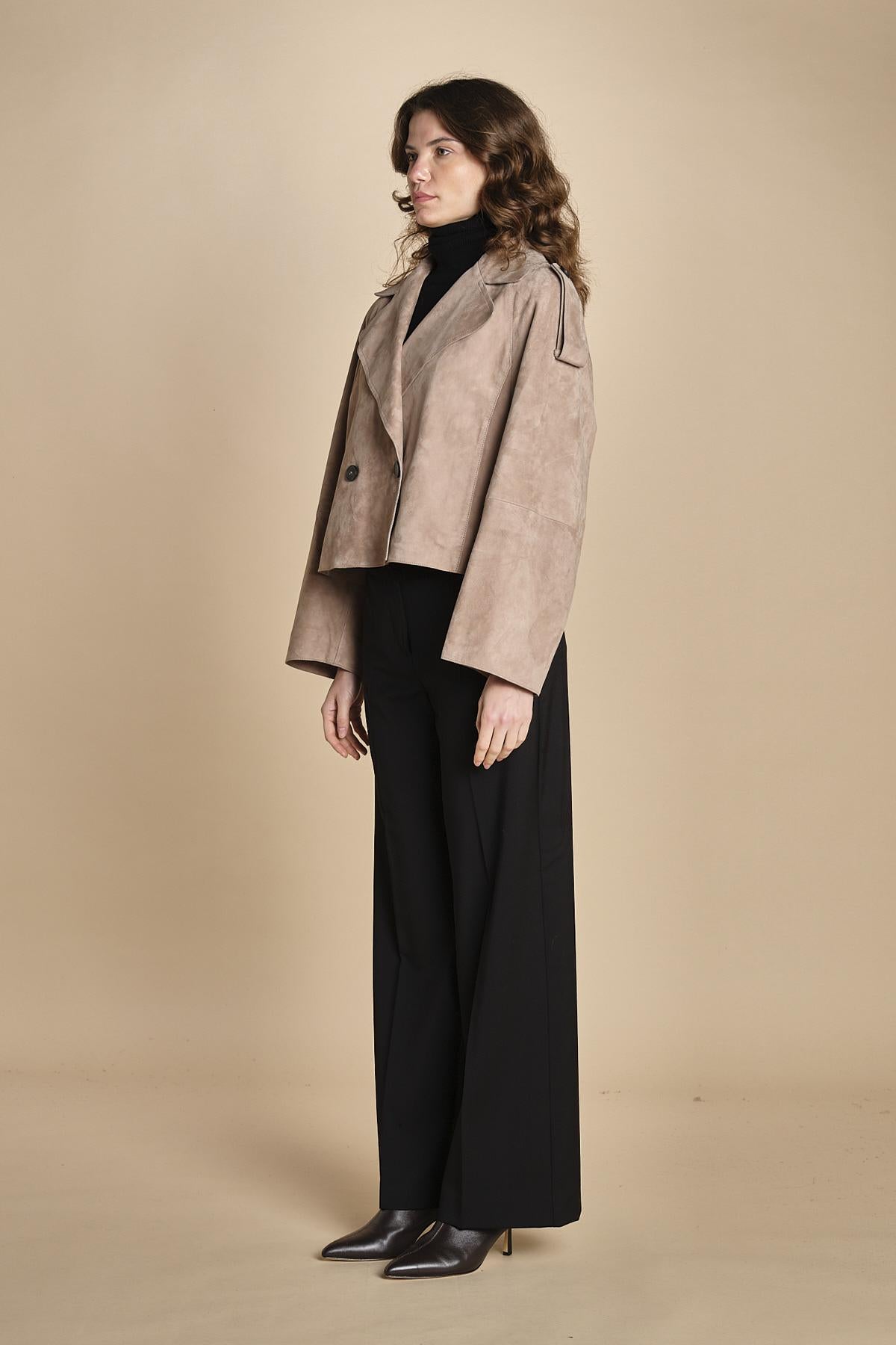 peacoat camoscio. La modella è alta 176 cm e indossa una taglia 42. 100% pelle