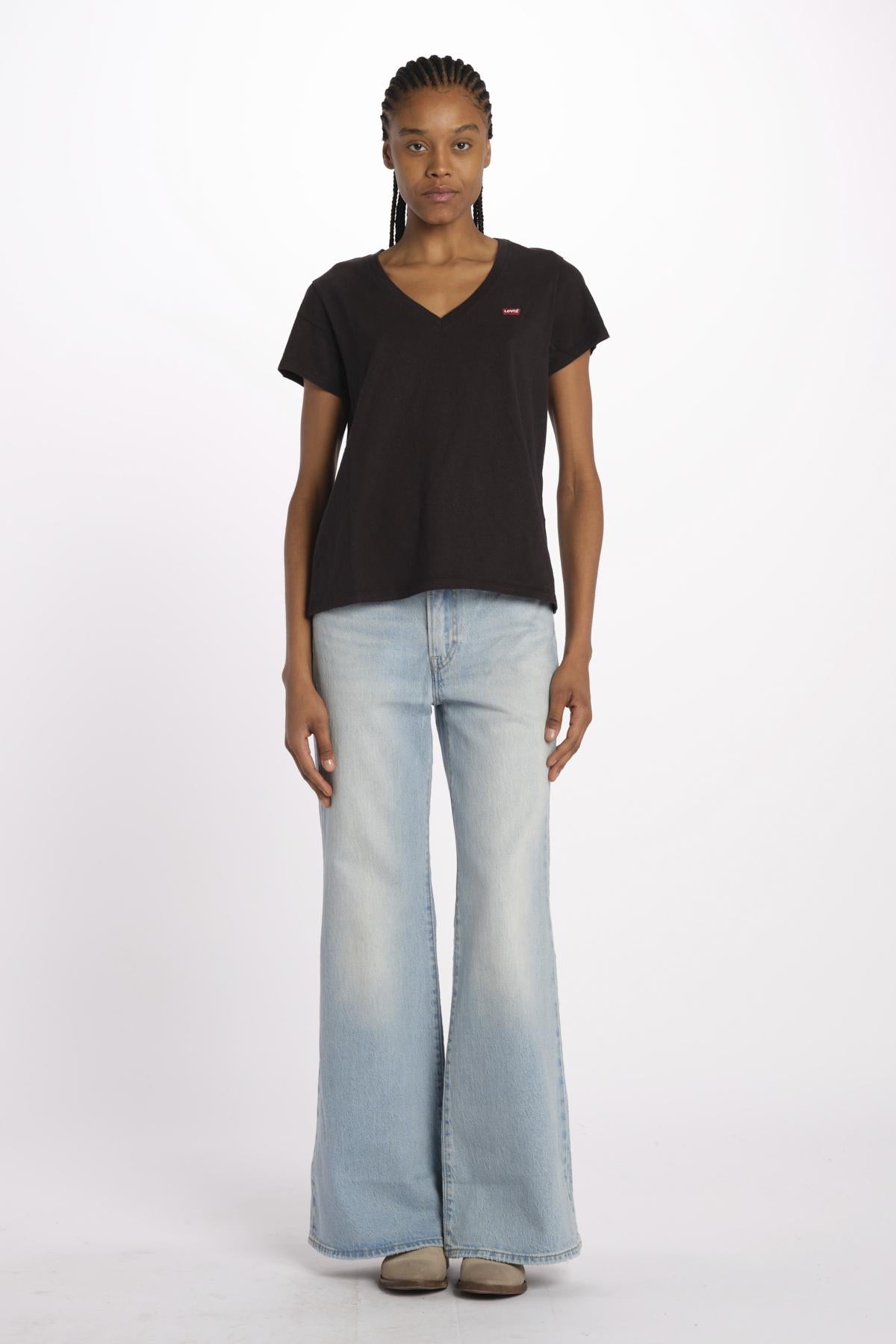 PERFECT SLUB VNECK by levi's. La modella è alta 174 cm e indossa una S. Composizione: 100% cotone.