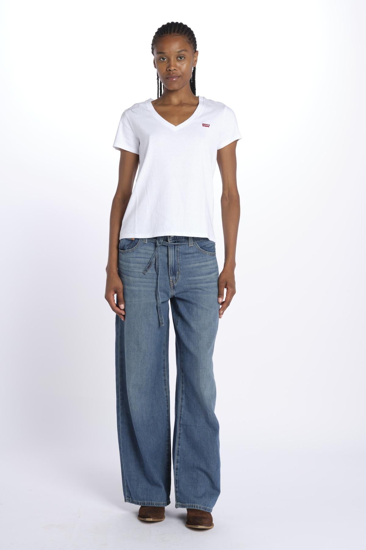 PERFECT SLUB VNECK by levi's. La modella è alta 174 cm e indossa una taglia XS. Composizione: 100% cotone.