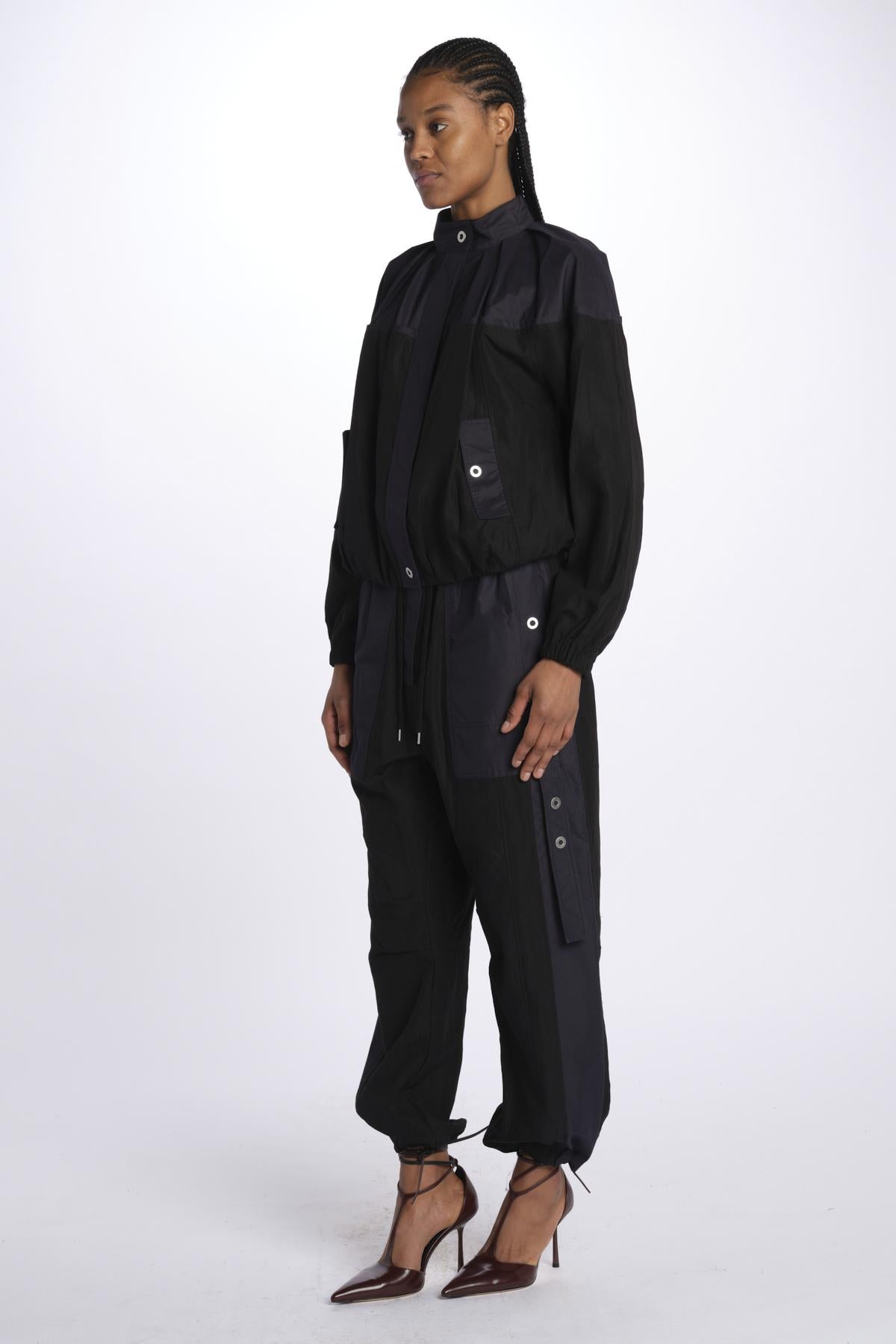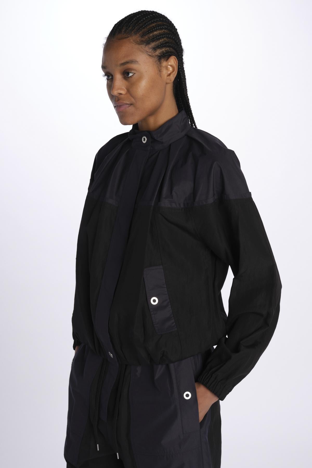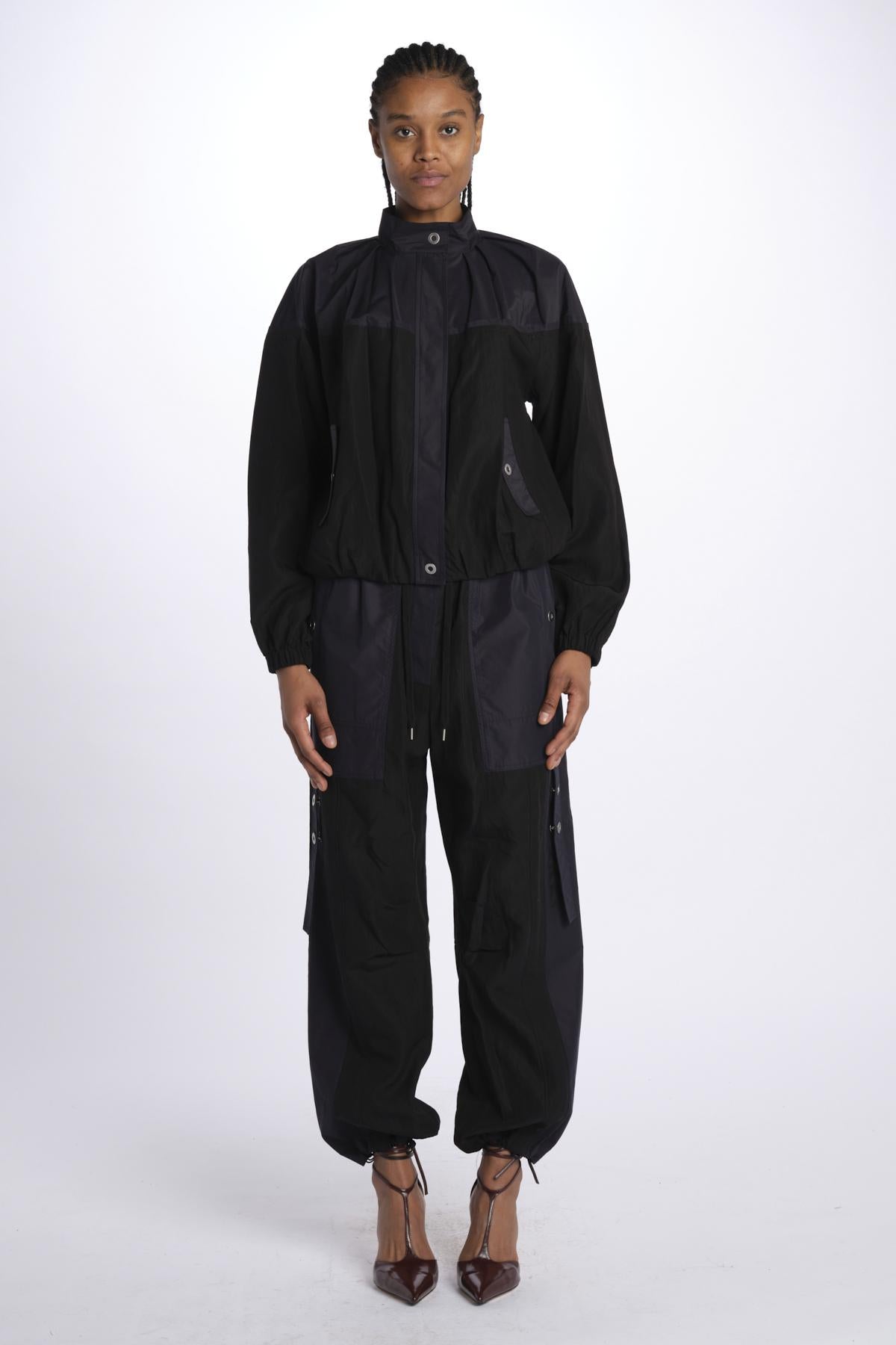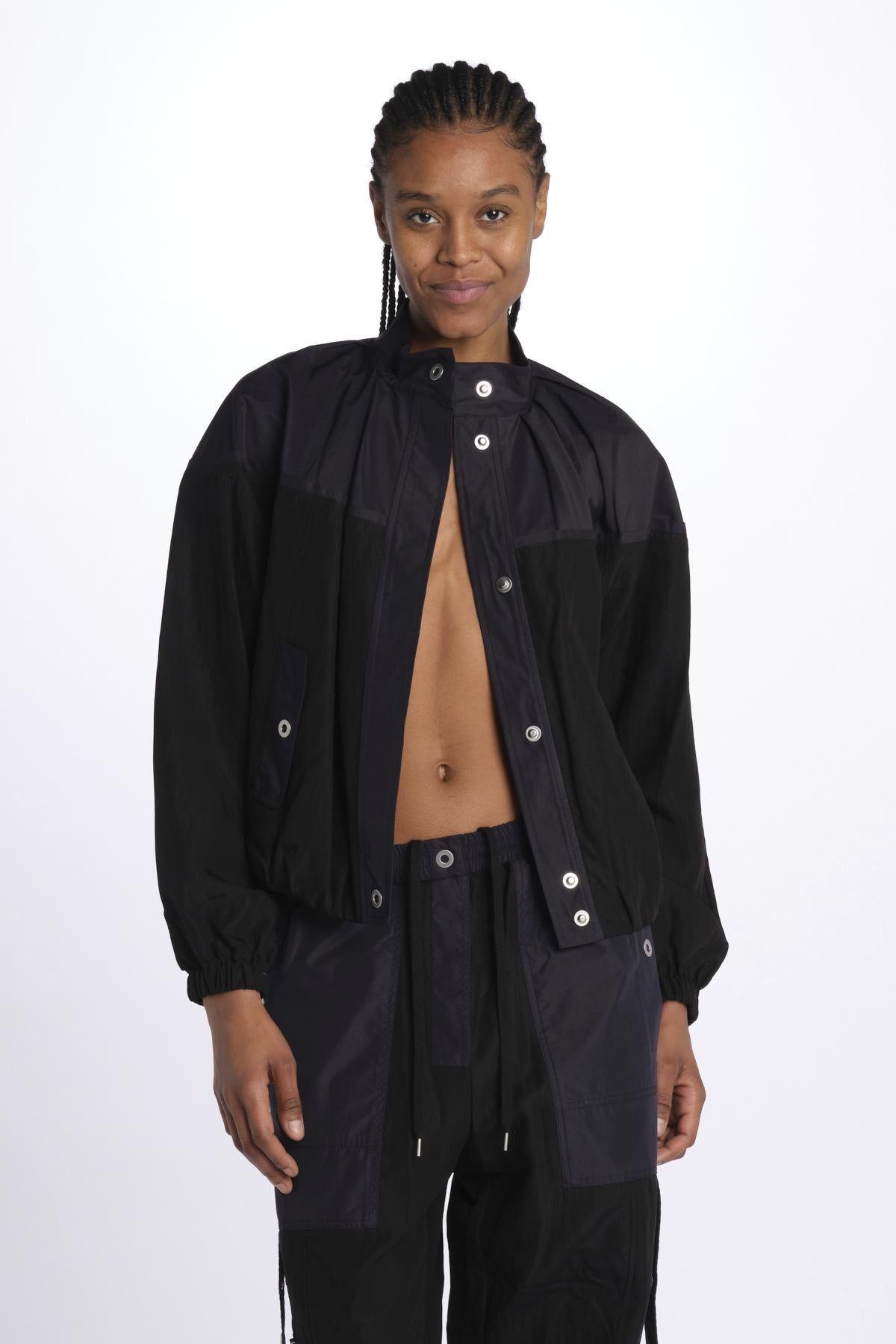 Bomber UTILITY bicolore by phillip lim. La modella è alta 174 cm e indossa una S. Composizione: 91% lyocell, 9% nylon.