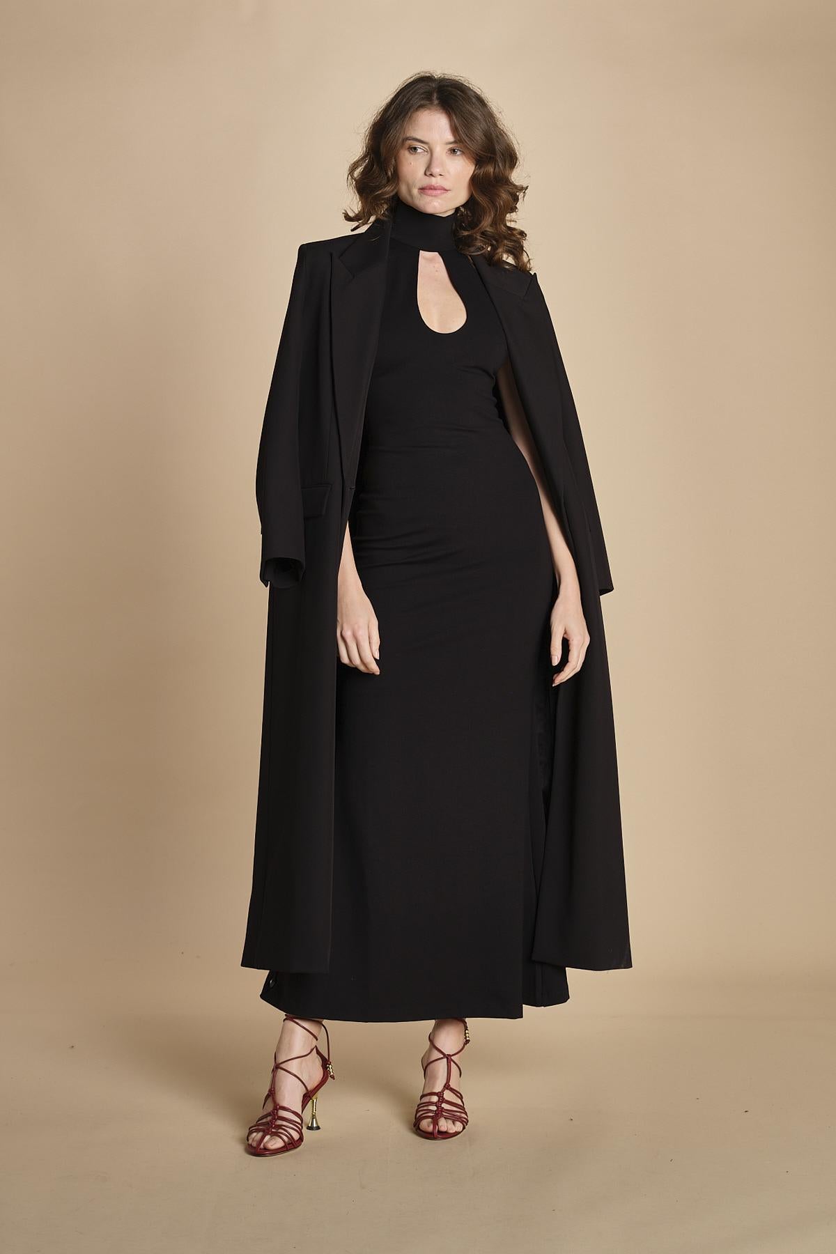 abito lungo con scollo americana by undresscode. La modella è alta 176 cm e indossa una taglia s.70% viscosa 25% poliammide 5% elastane