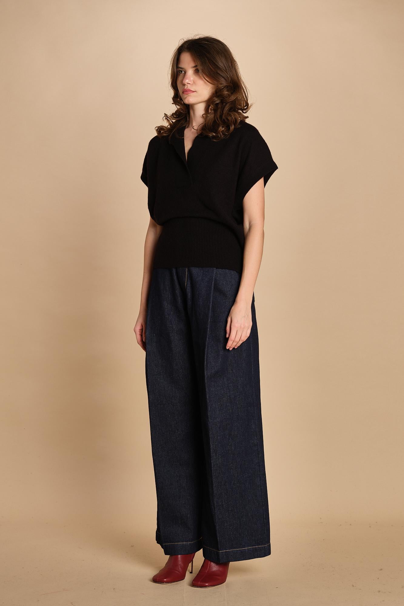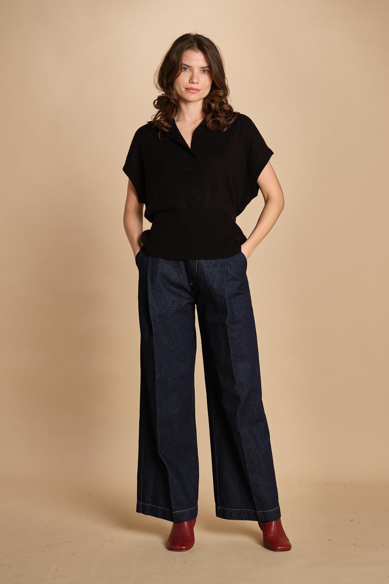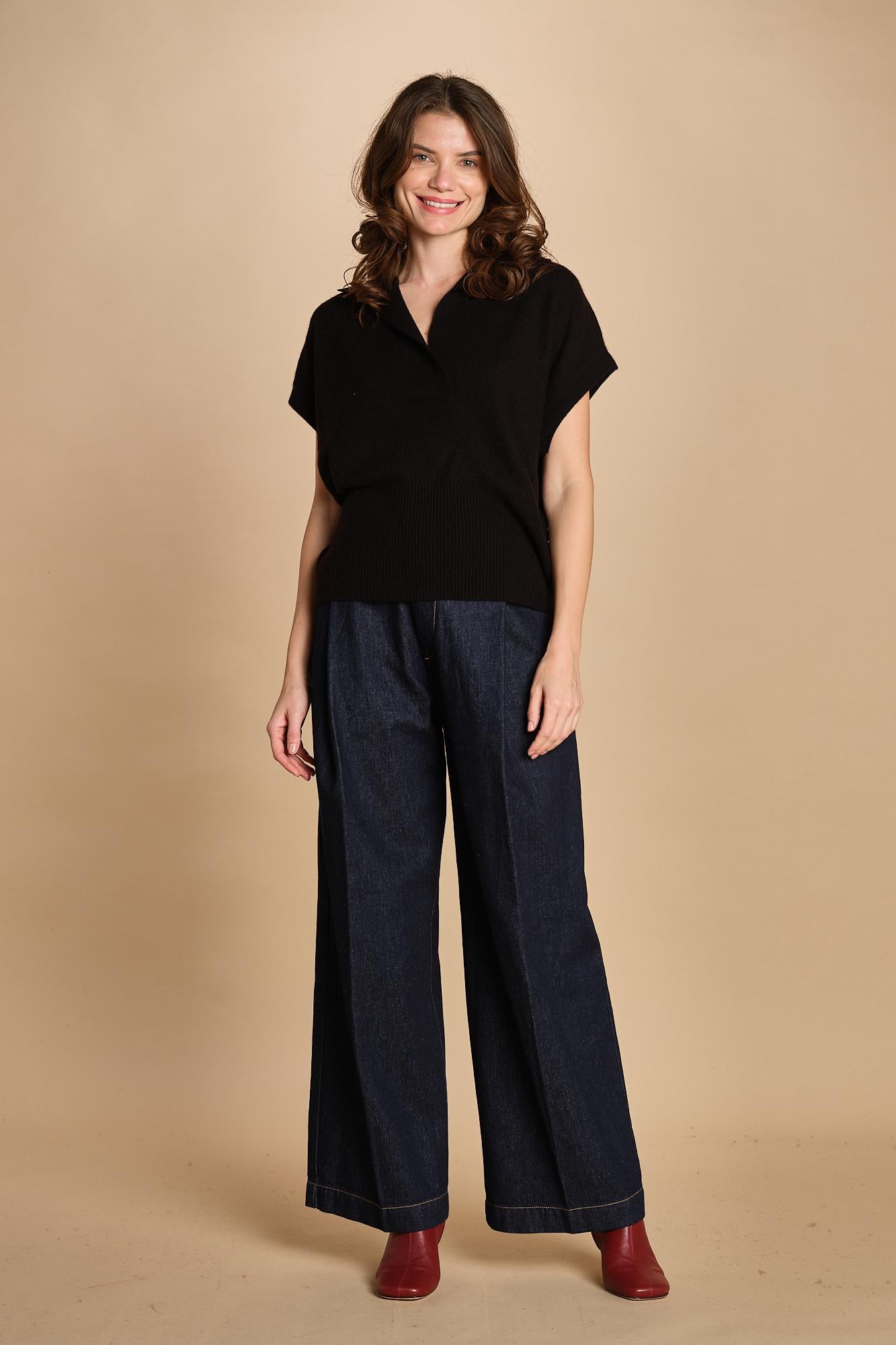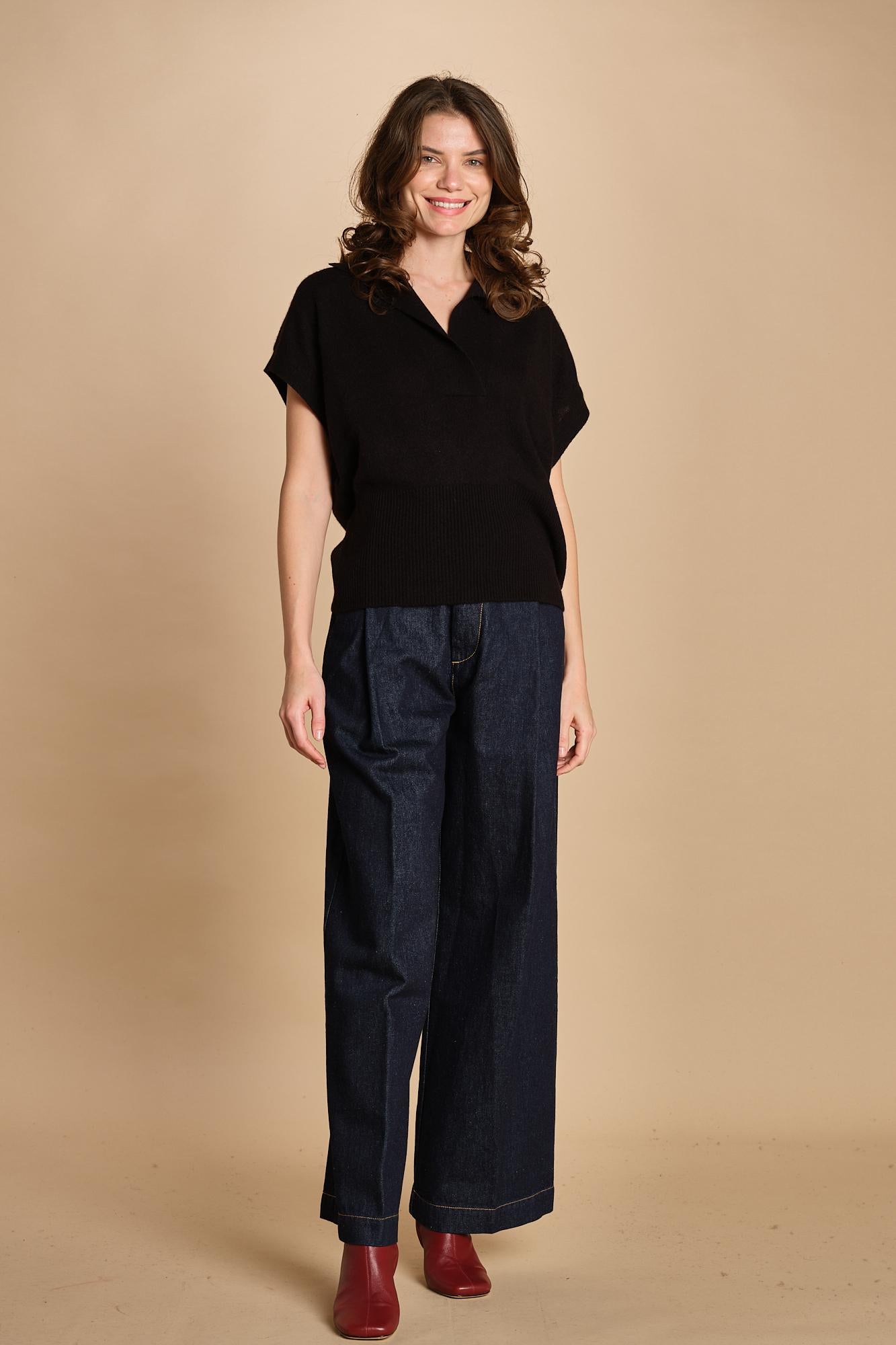 Polo gilet. La modella è alta 174 cm e indossa una taglia S. 100% cachemire